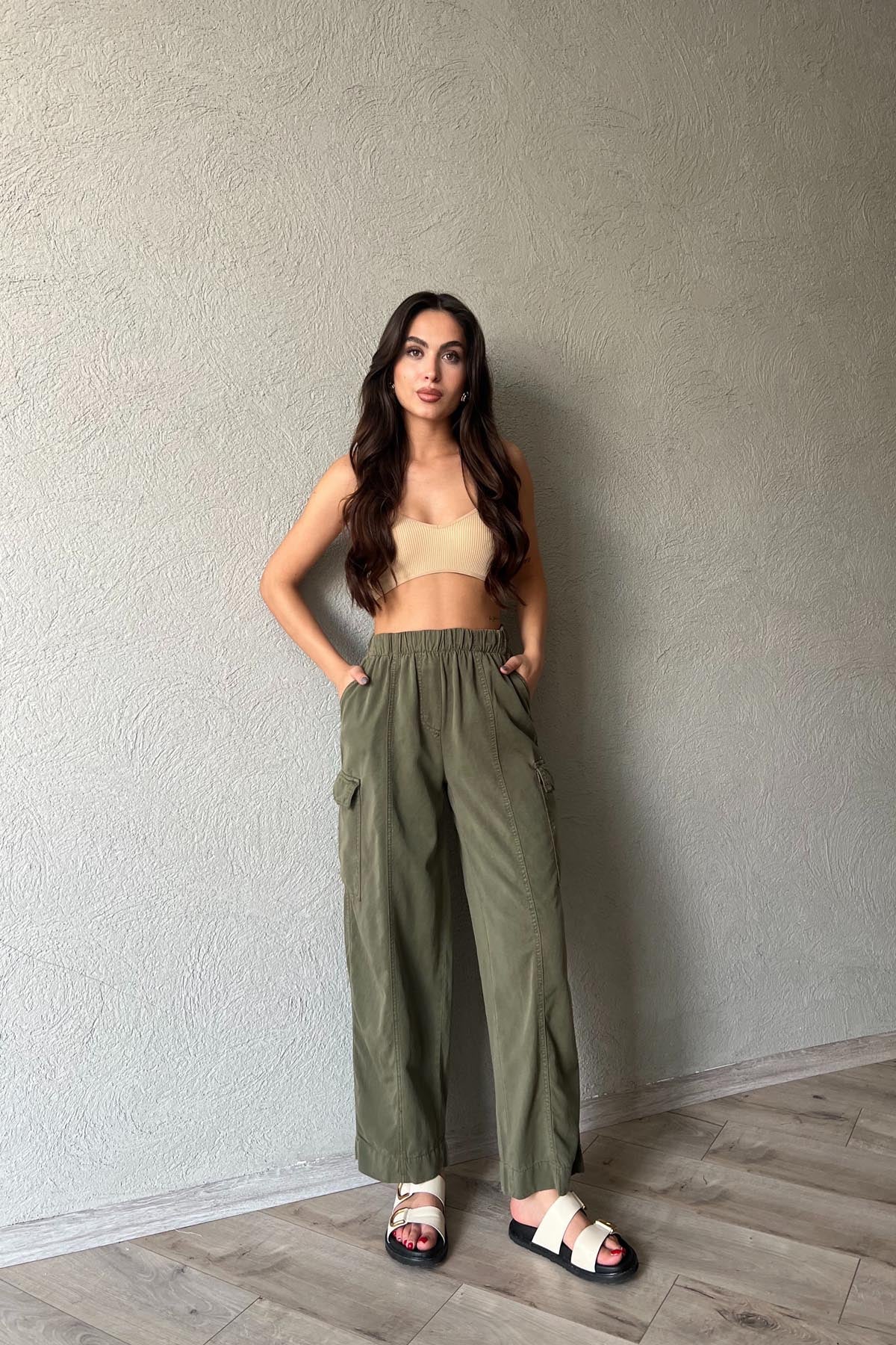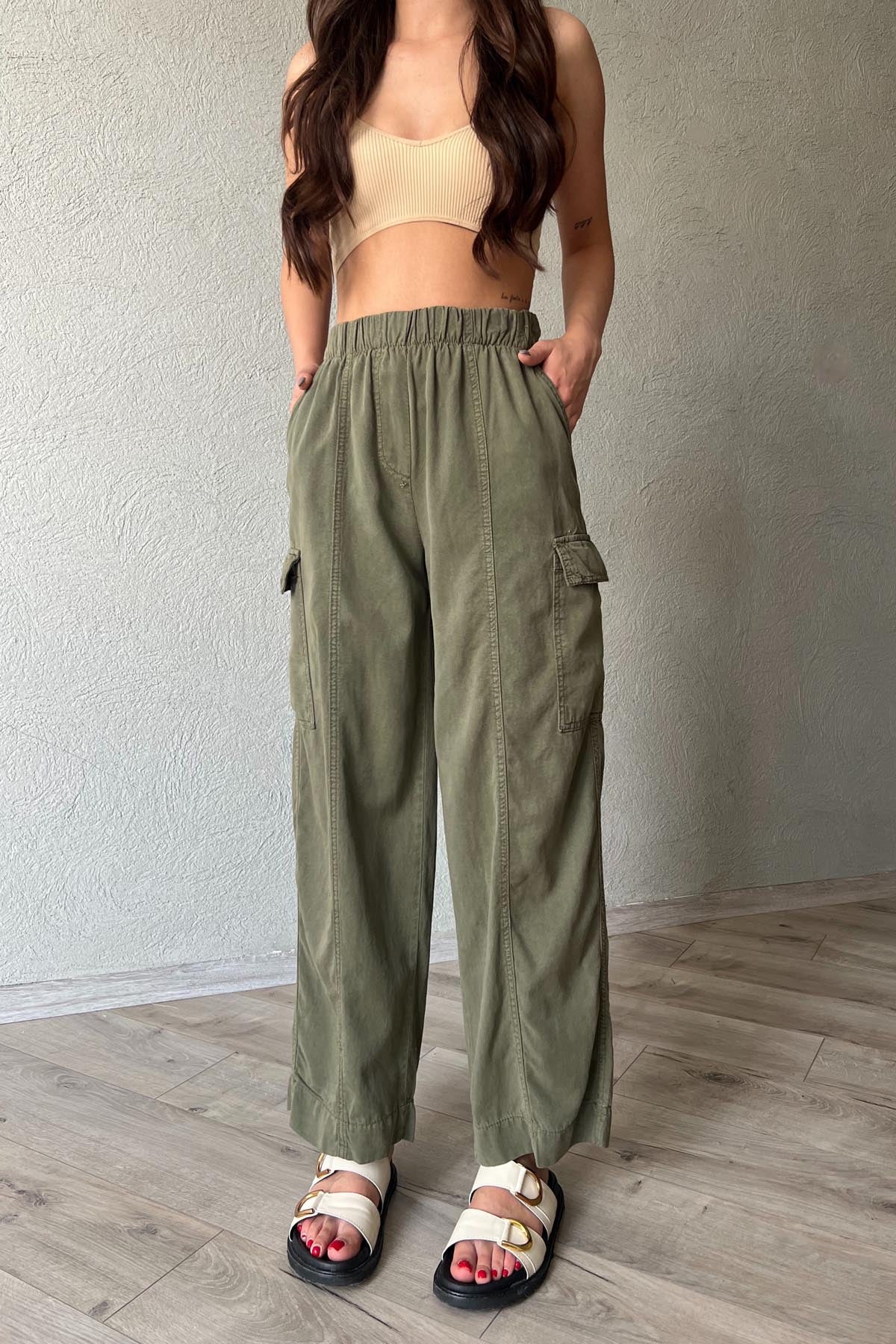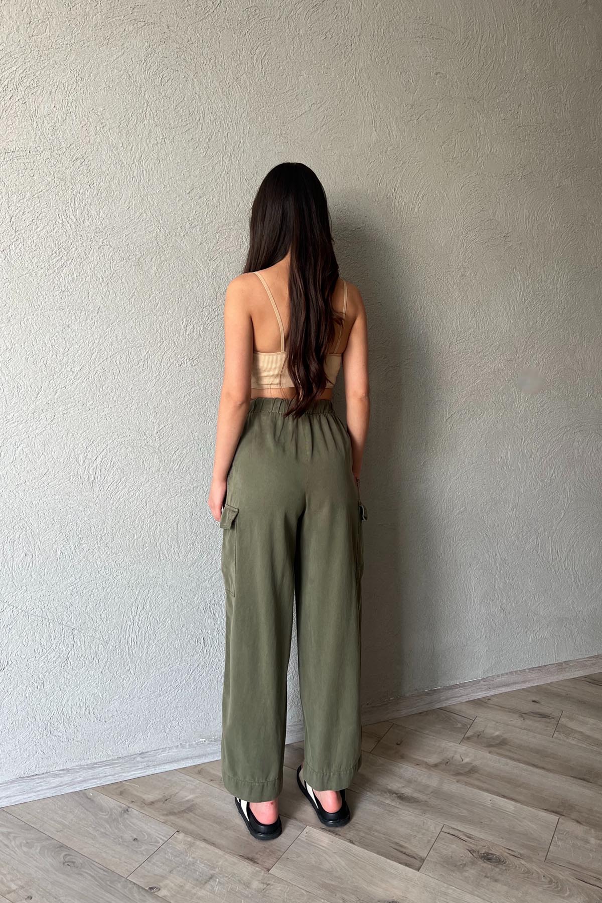 Haki Dikiş Detaylı Kargo Cepli Beli Lastikli Pantolon SY-1863-Haki