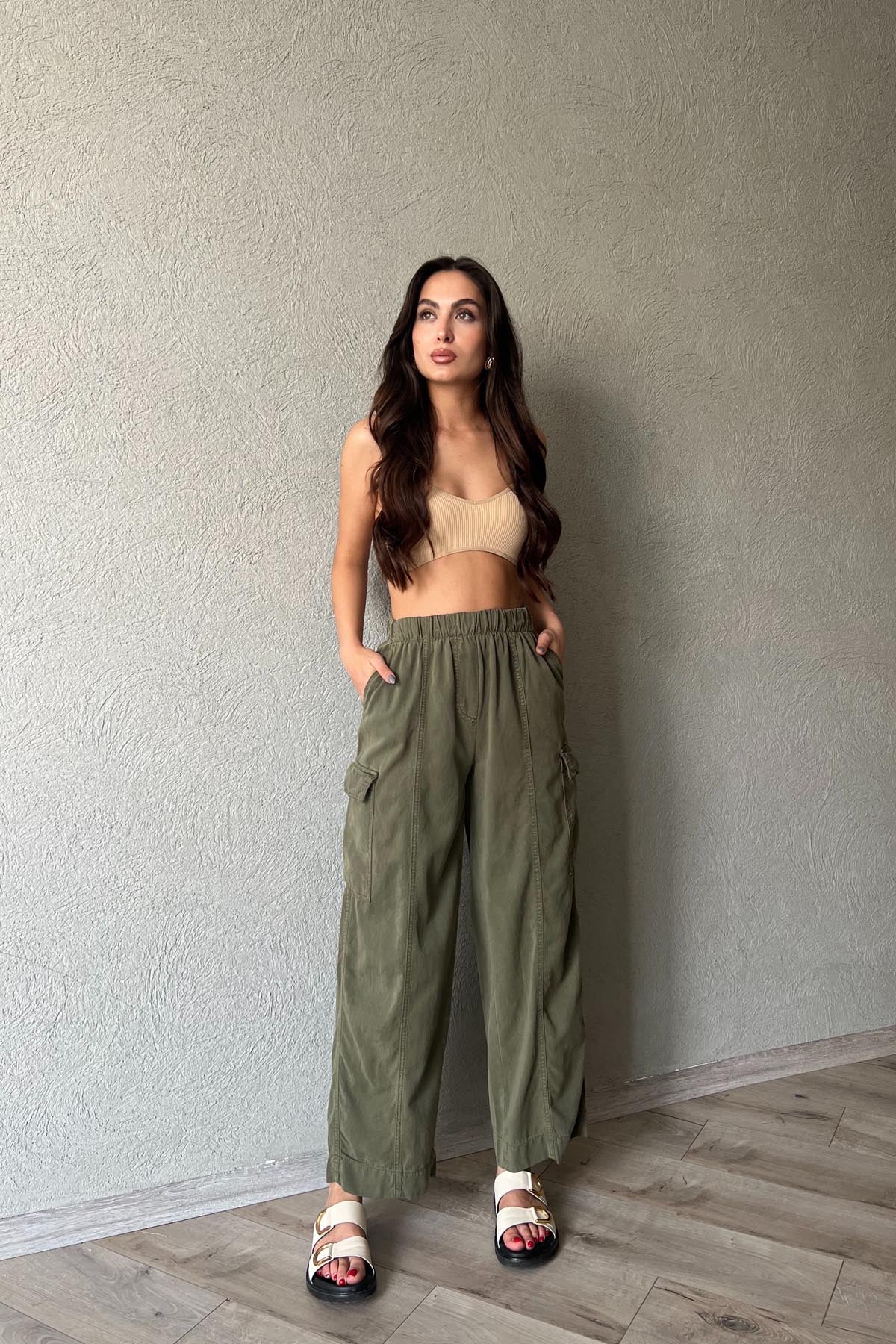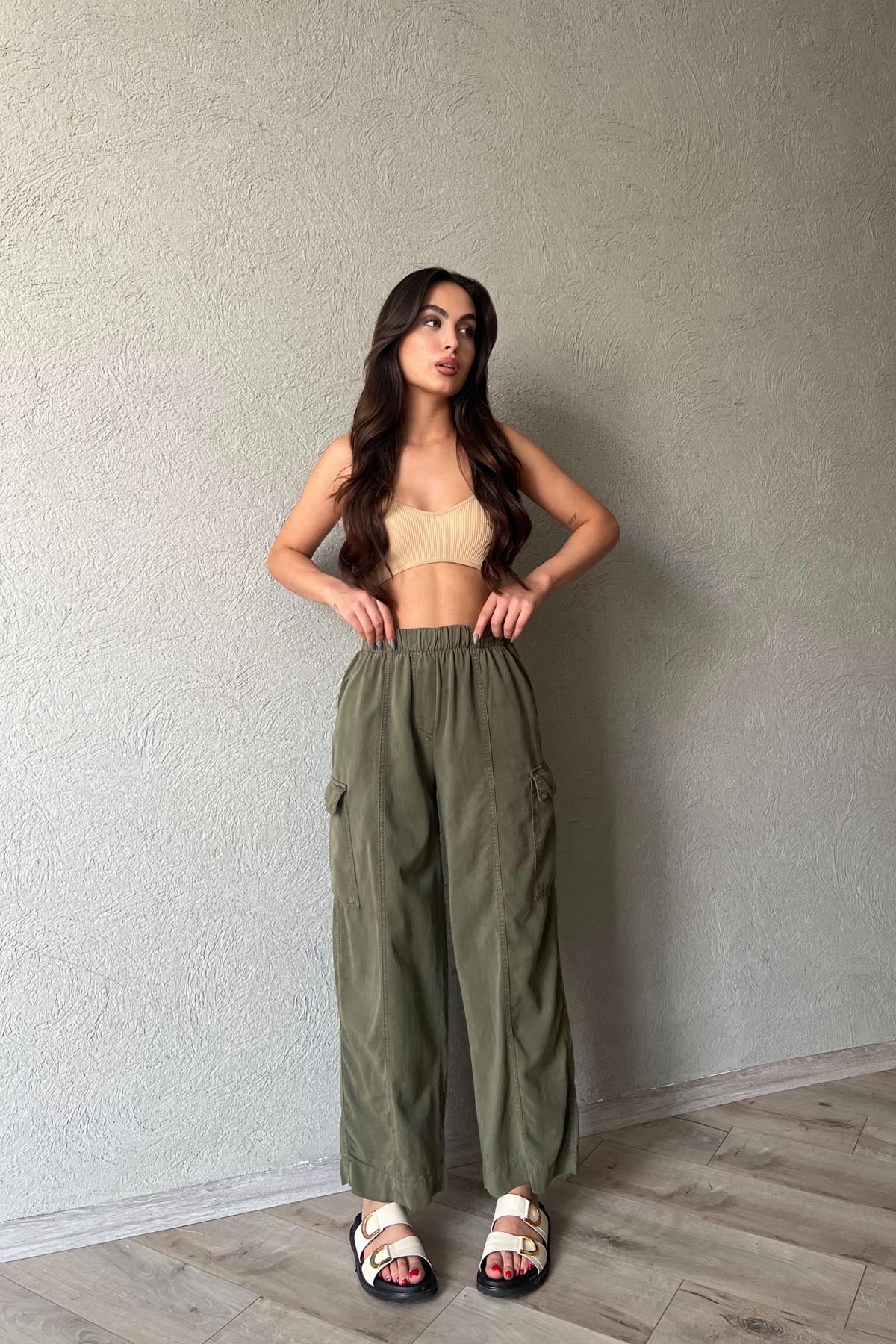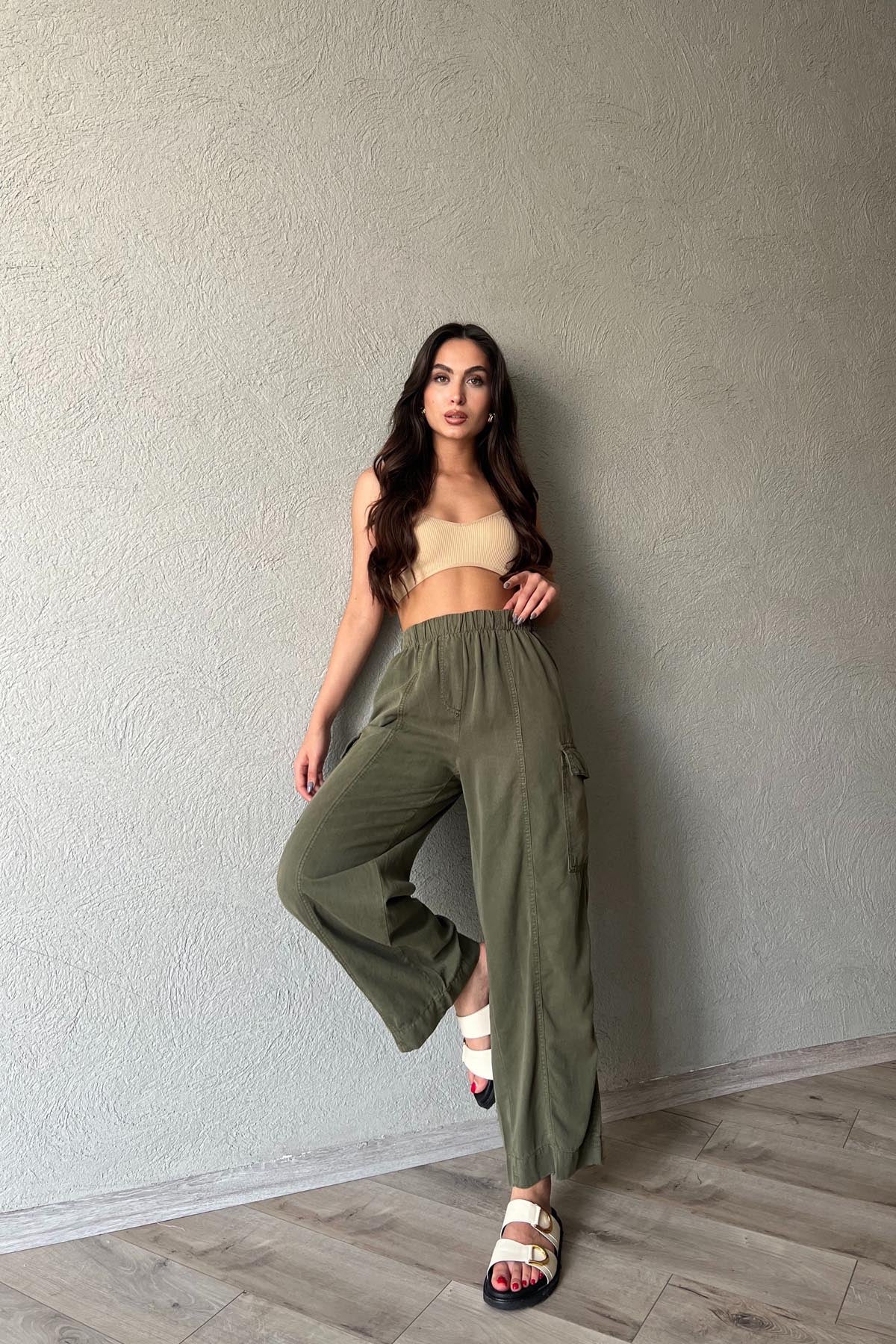 Haki Dikiş Detaylı Kargo Cepli Beli Lastikli Pantolon SY-1863-Haki