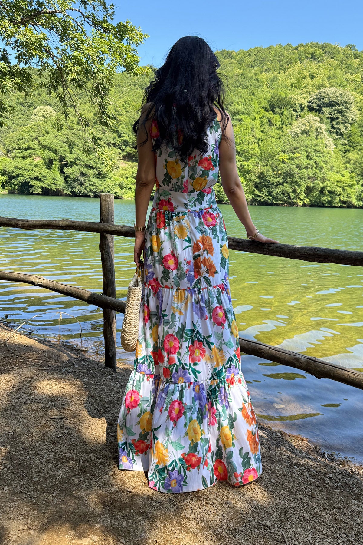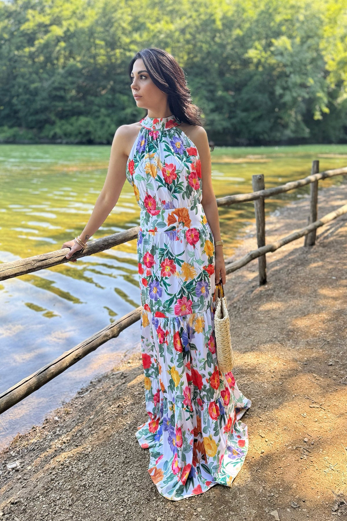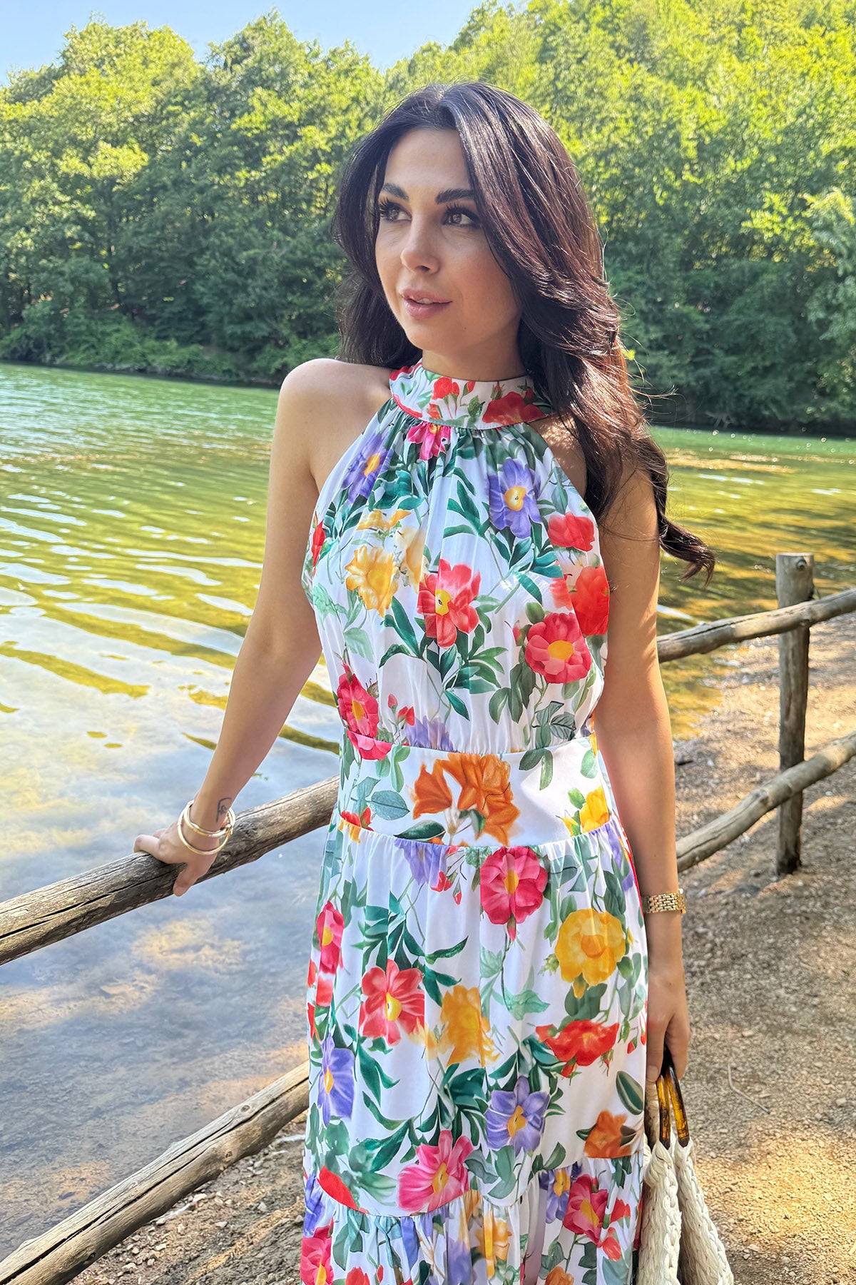 Halter Yaka Çok Renkli Çiçekli Elbise SY-3232-Renkli