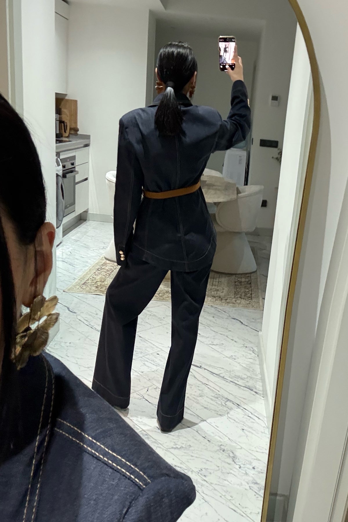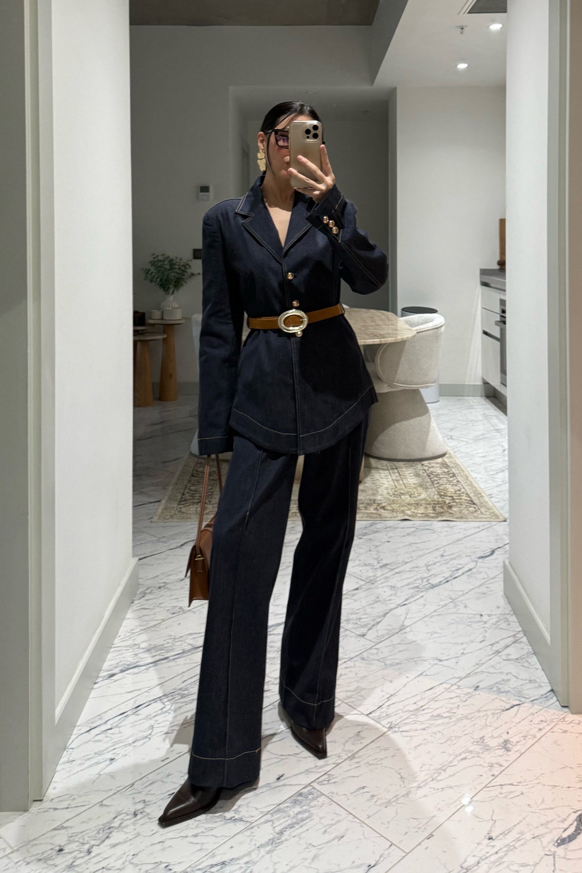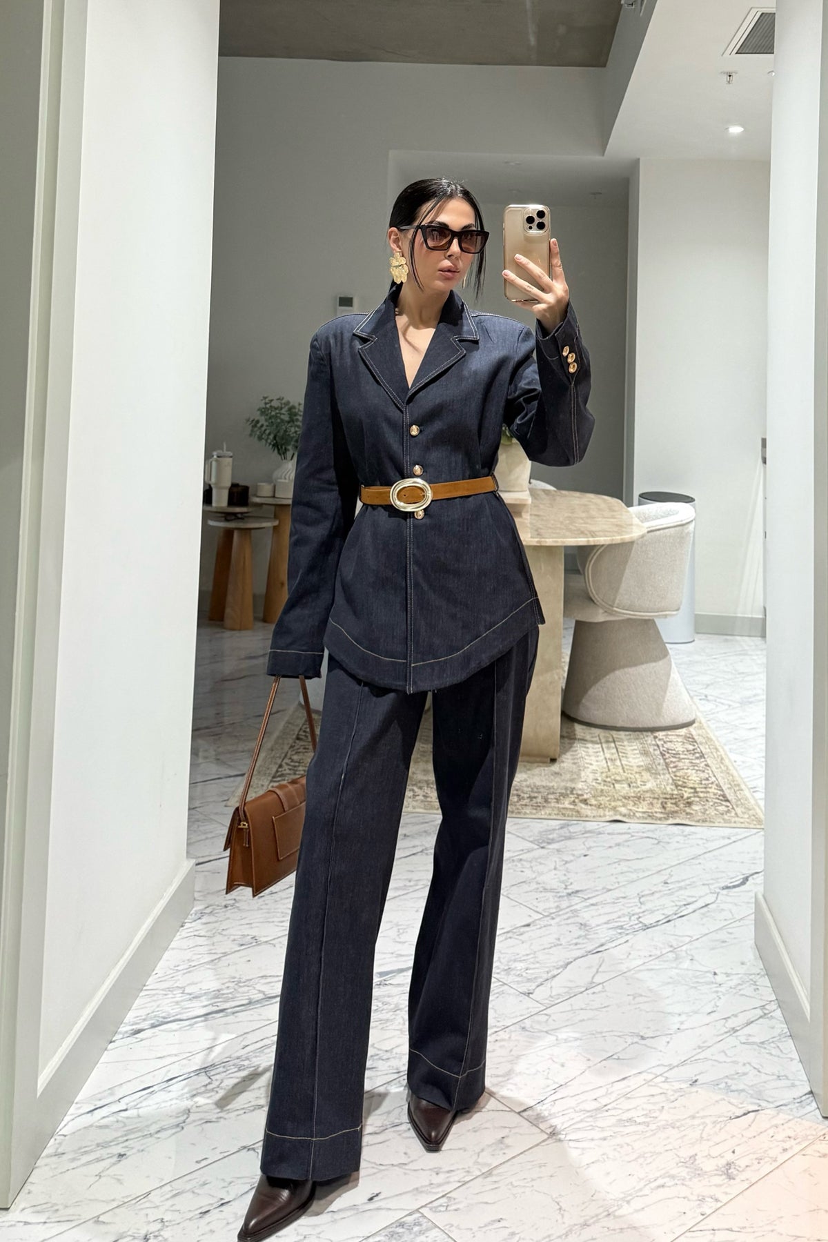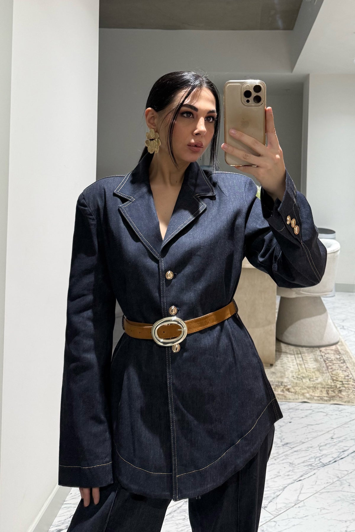 Ürün Detayları:Kadın Kemerli Fit Denim Ceket ve Pantolon Takım