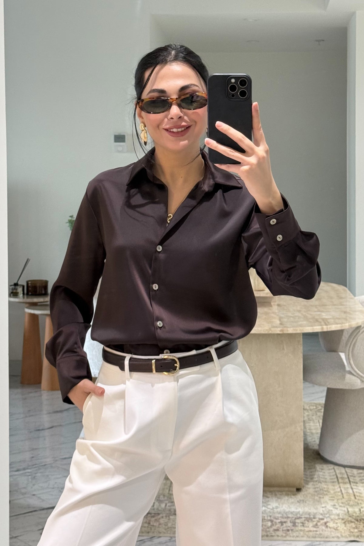 Ürün Detayları:Kahve Basic Premium Saten Gömlek
