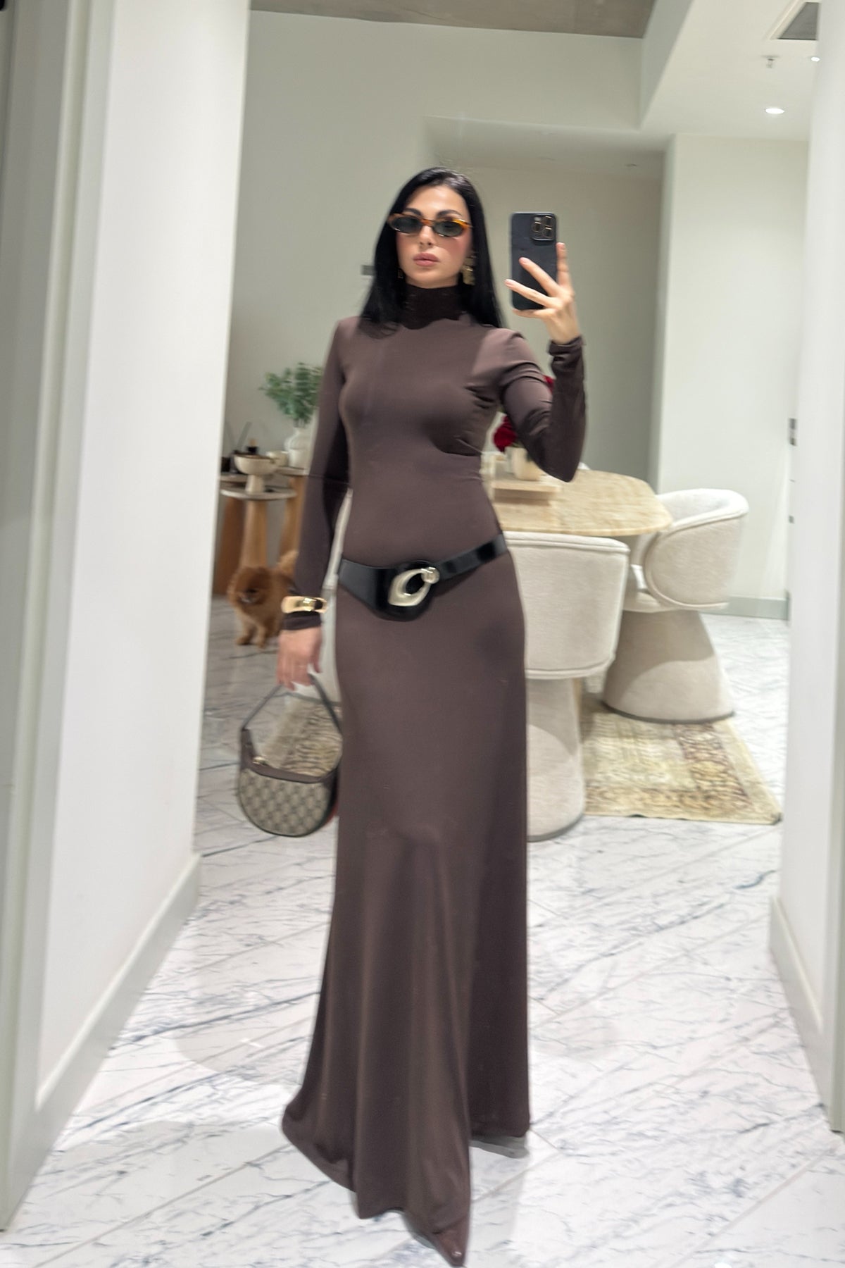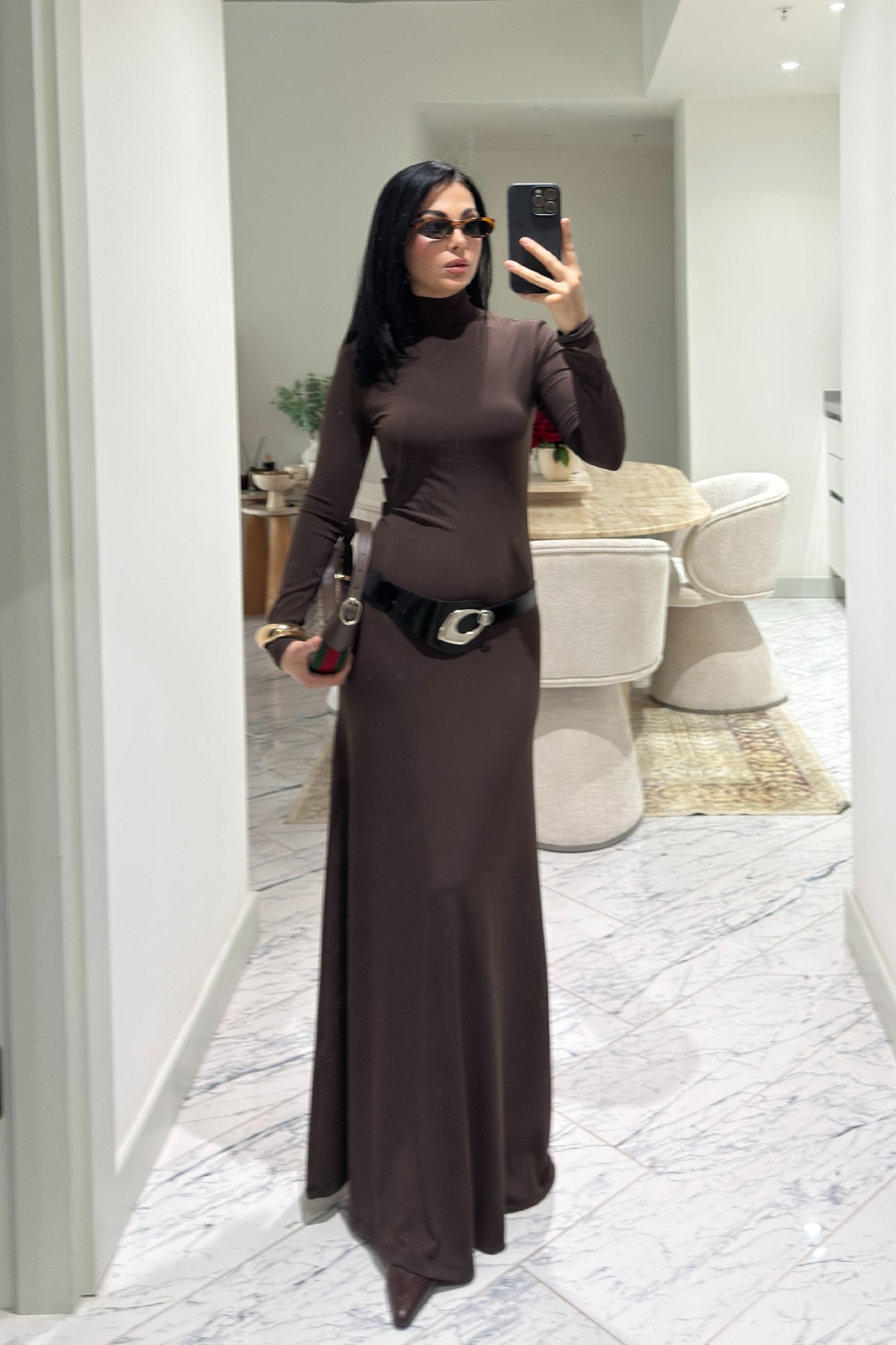 Ürün Detayları:Kahverengi Kemer Detaylı Maxi Basic Elbise-Kemer elbiseye dahildir-likralıdır
