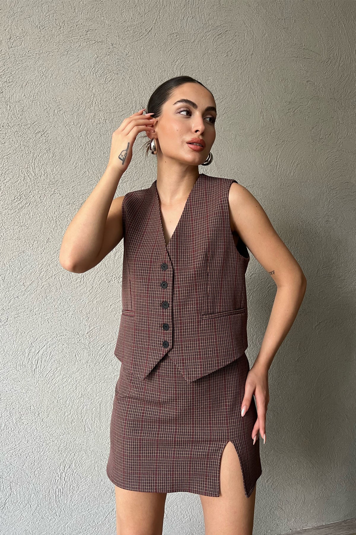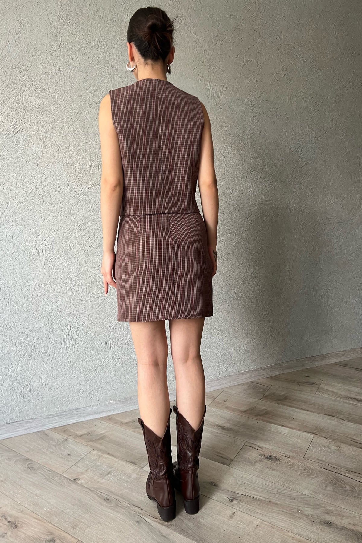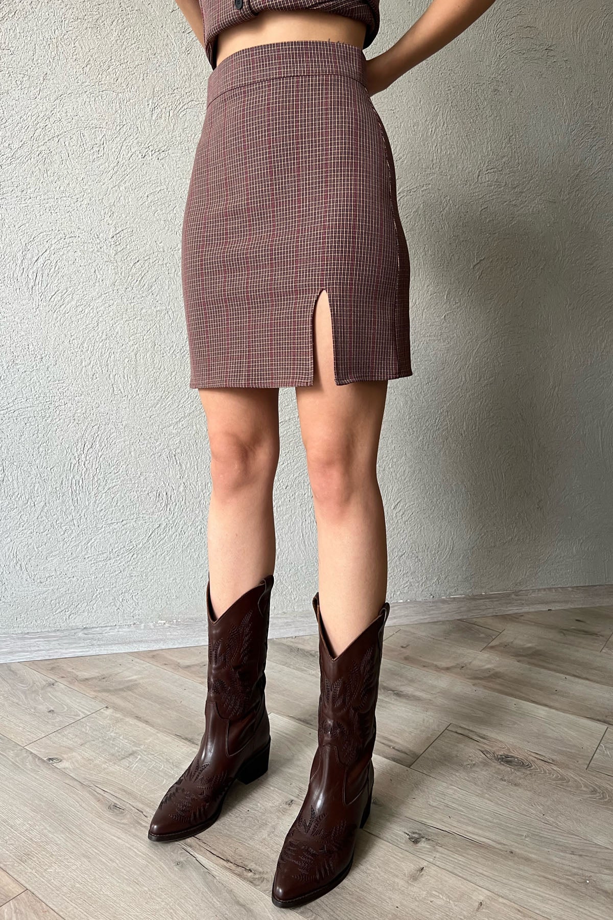 Kahverengi Önden Yırtmaçlı Etek SY-1270-Kahverengi
