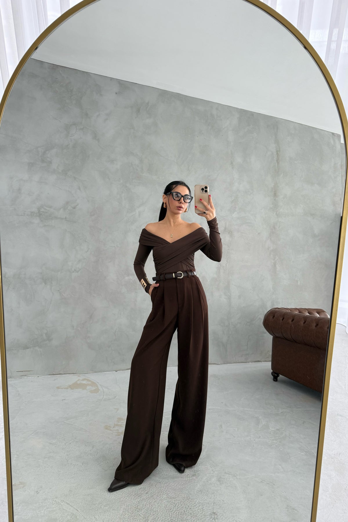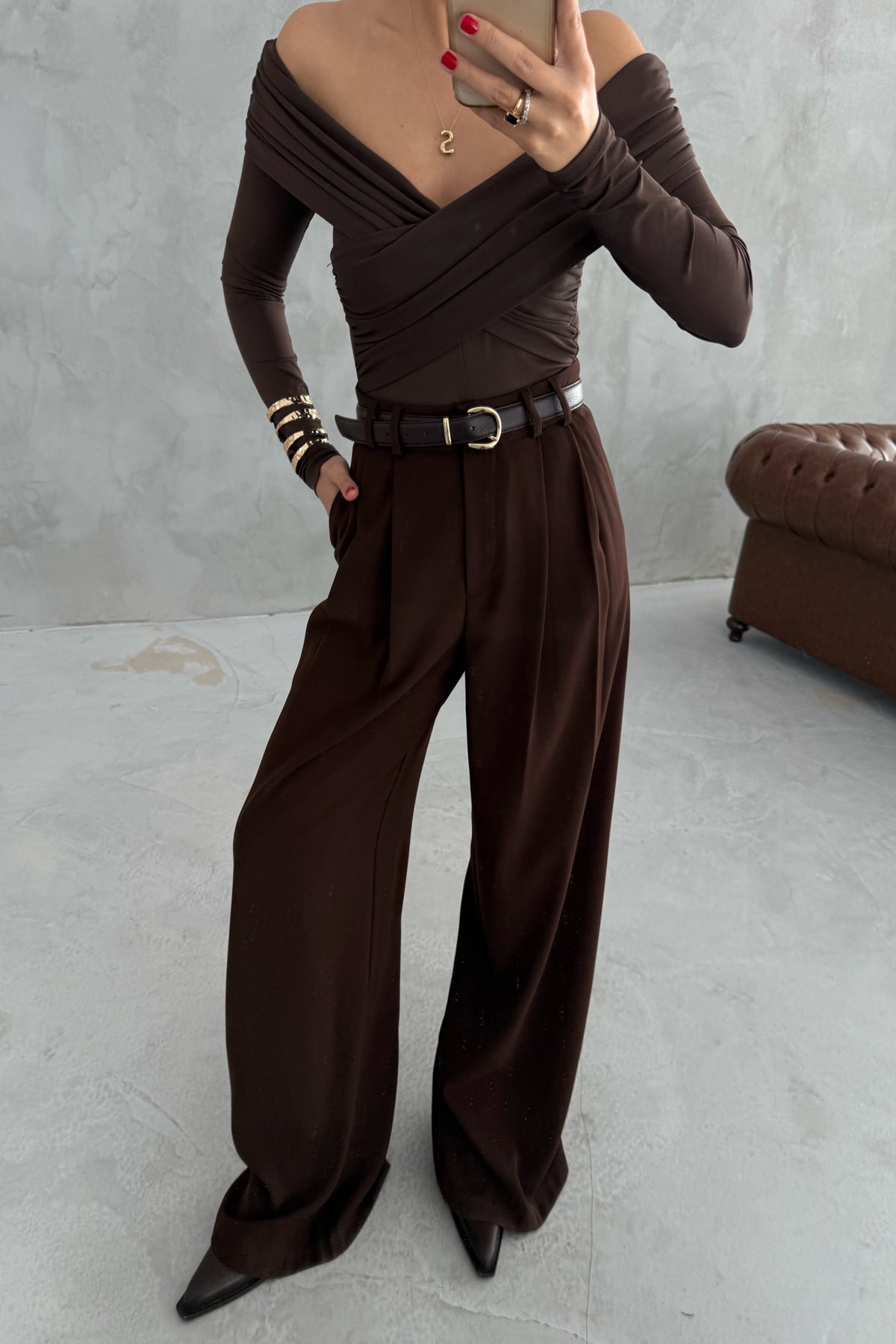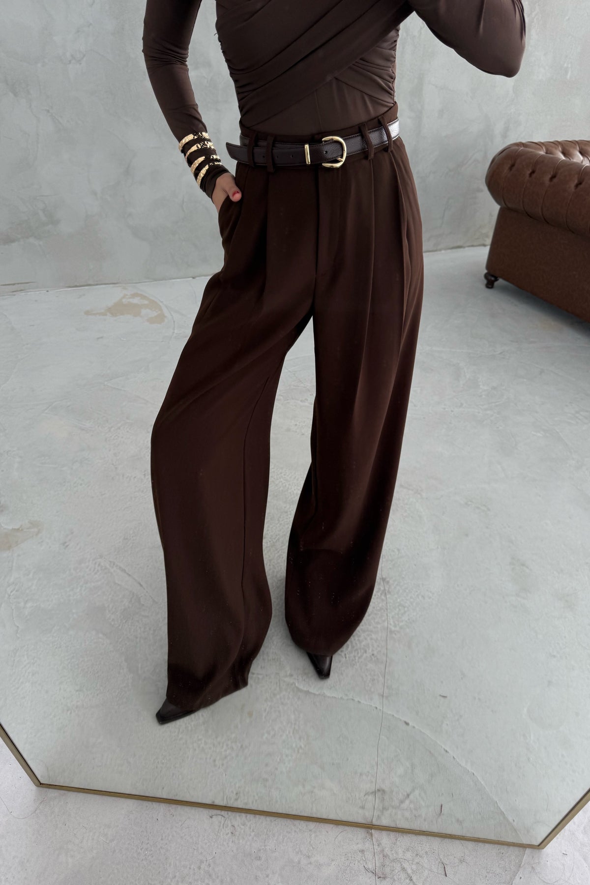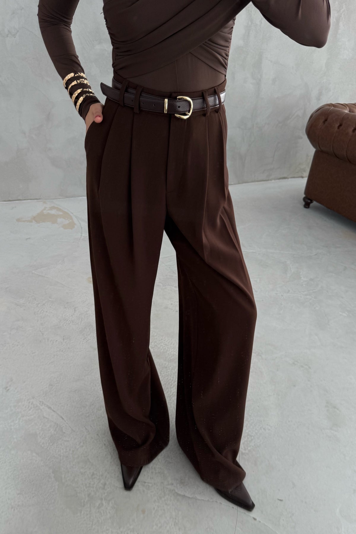 Ürün Detayları;Kahverengi Pens Detaylı Palazzo Pantolon