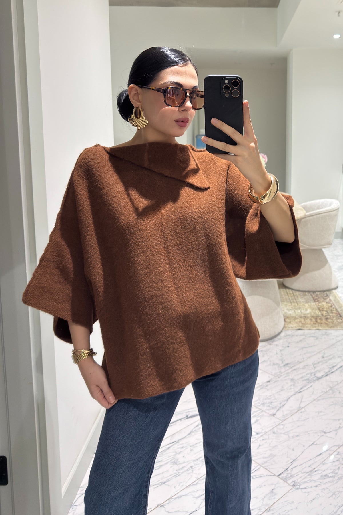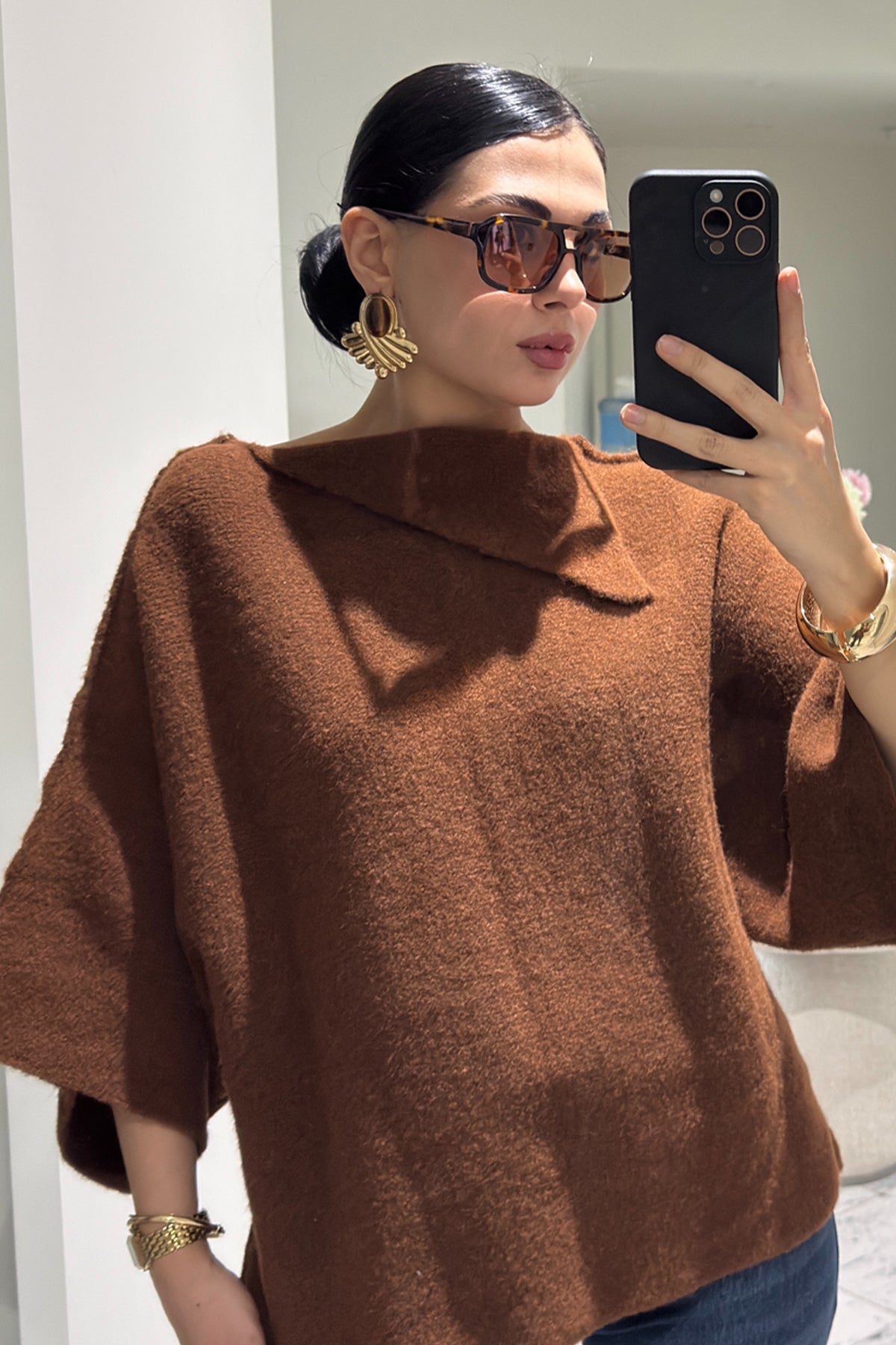Ürün Detayları:Kahverengi Yaka Detaylı Triko-Kazak