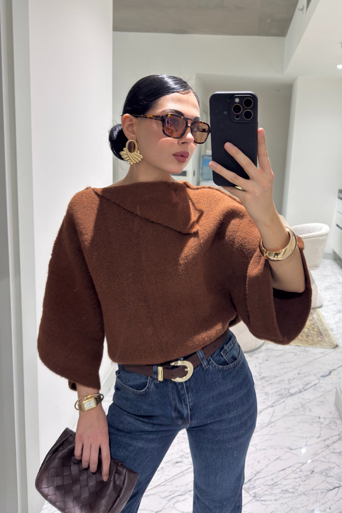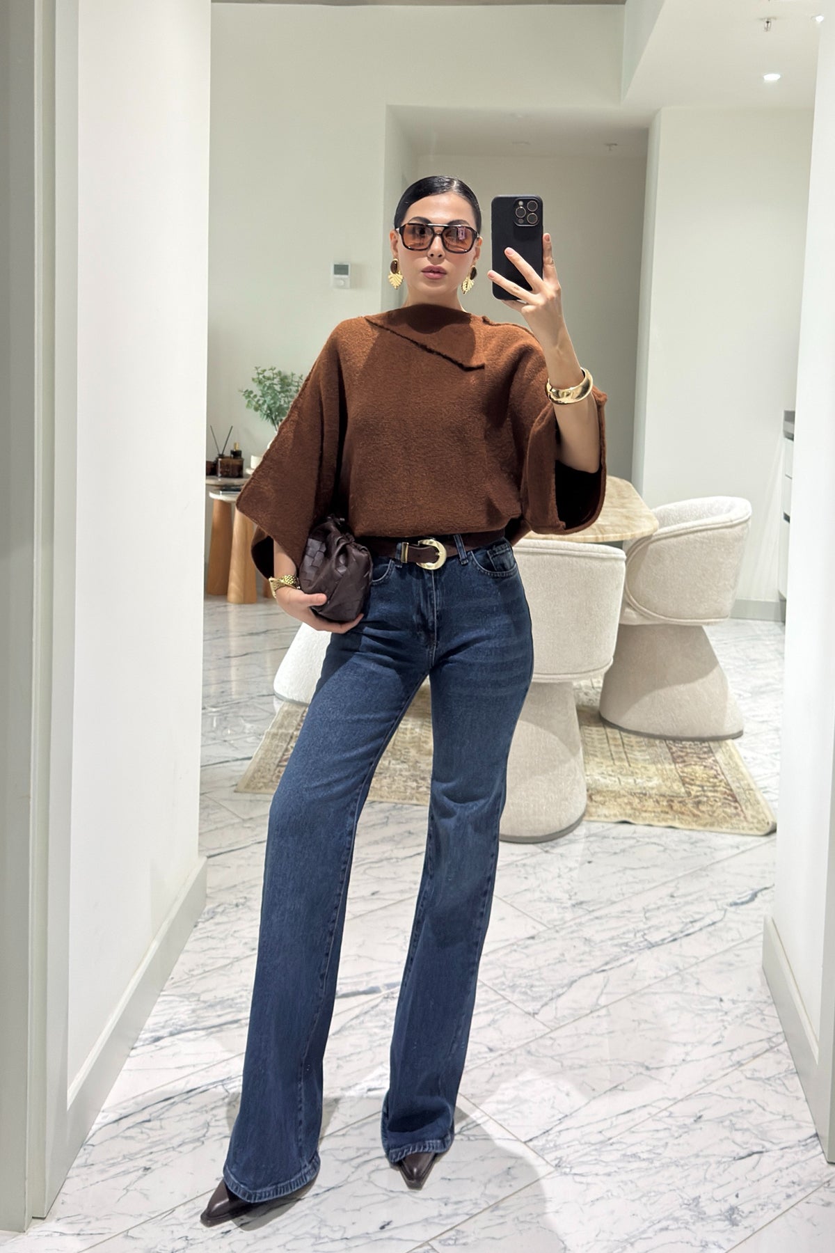 Kahverengi Yaka Detaylı Triko-Kazak SY-3613-Kahverengi