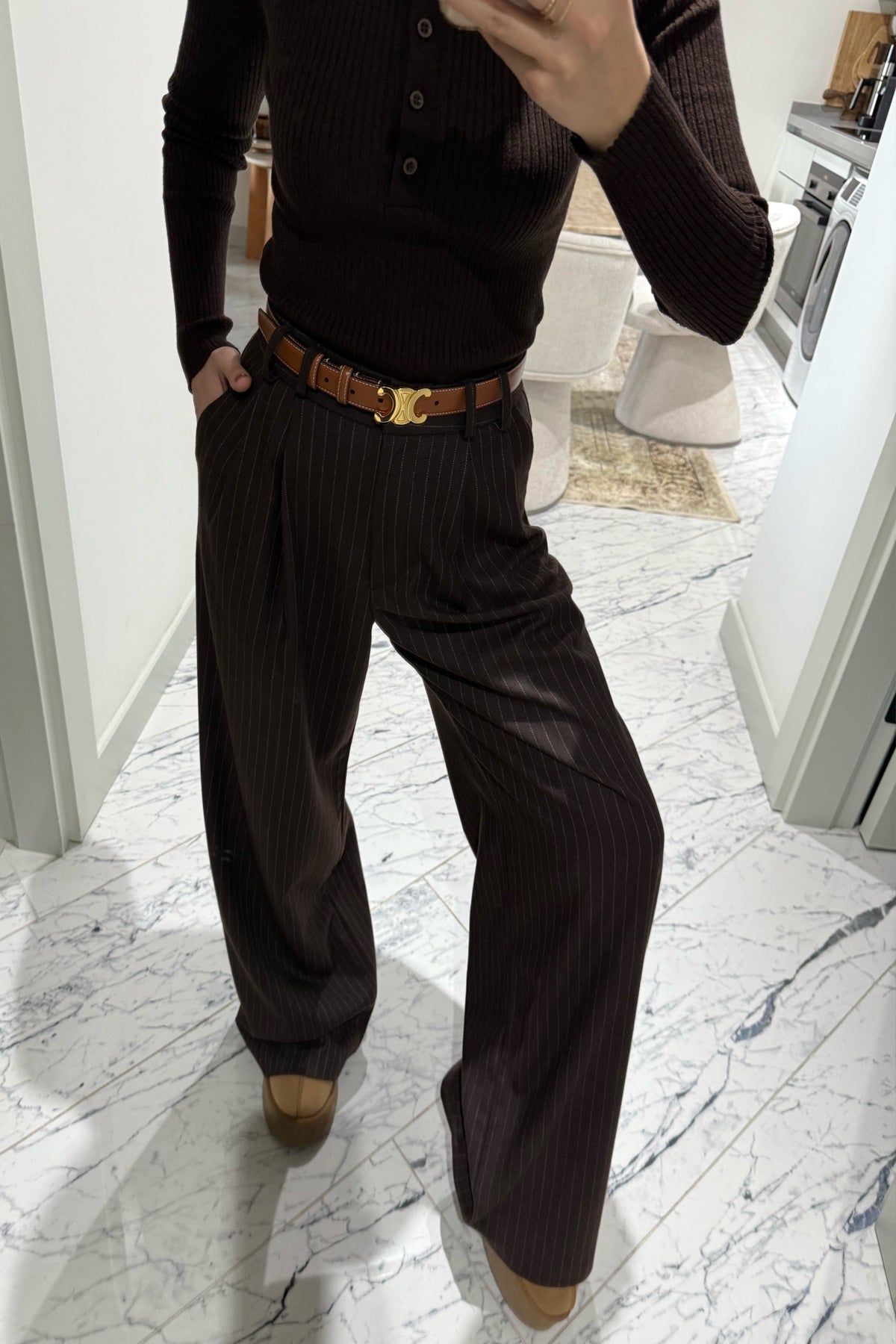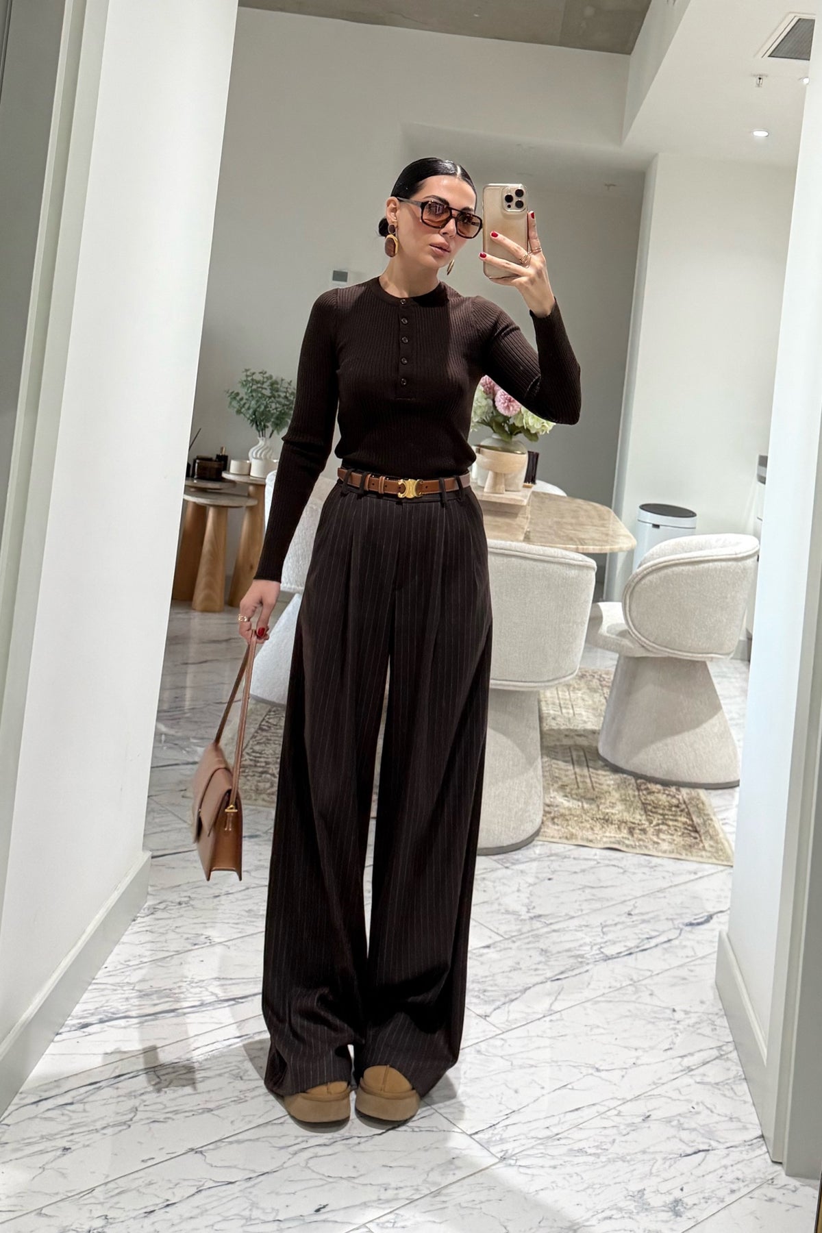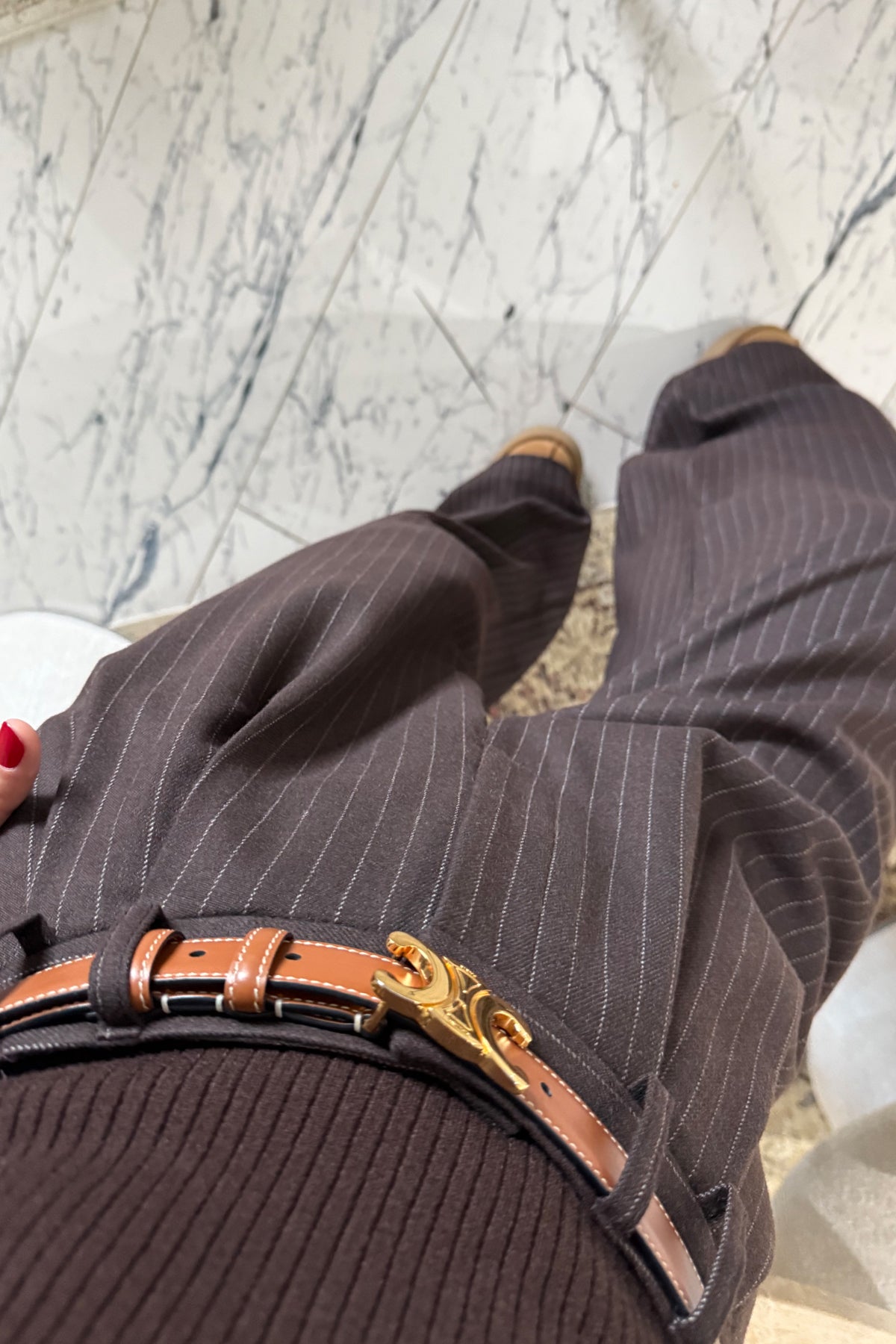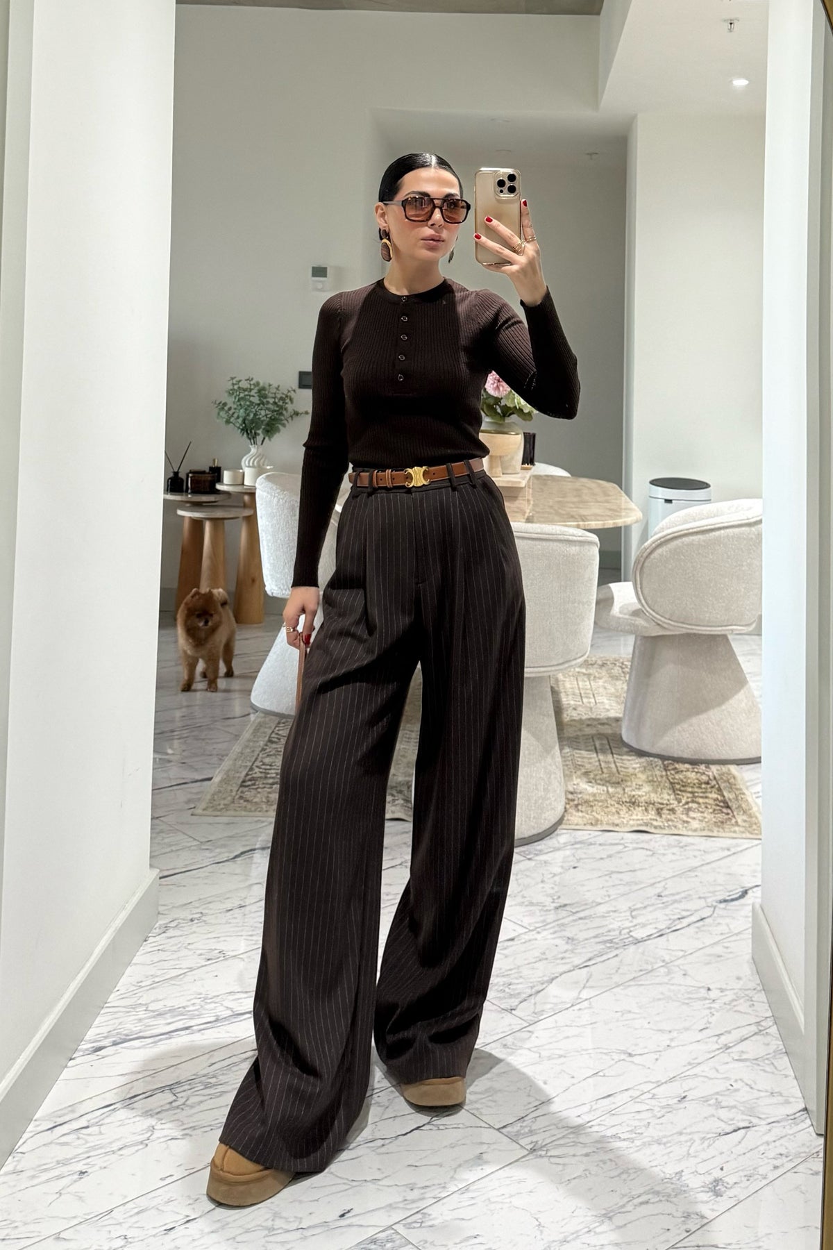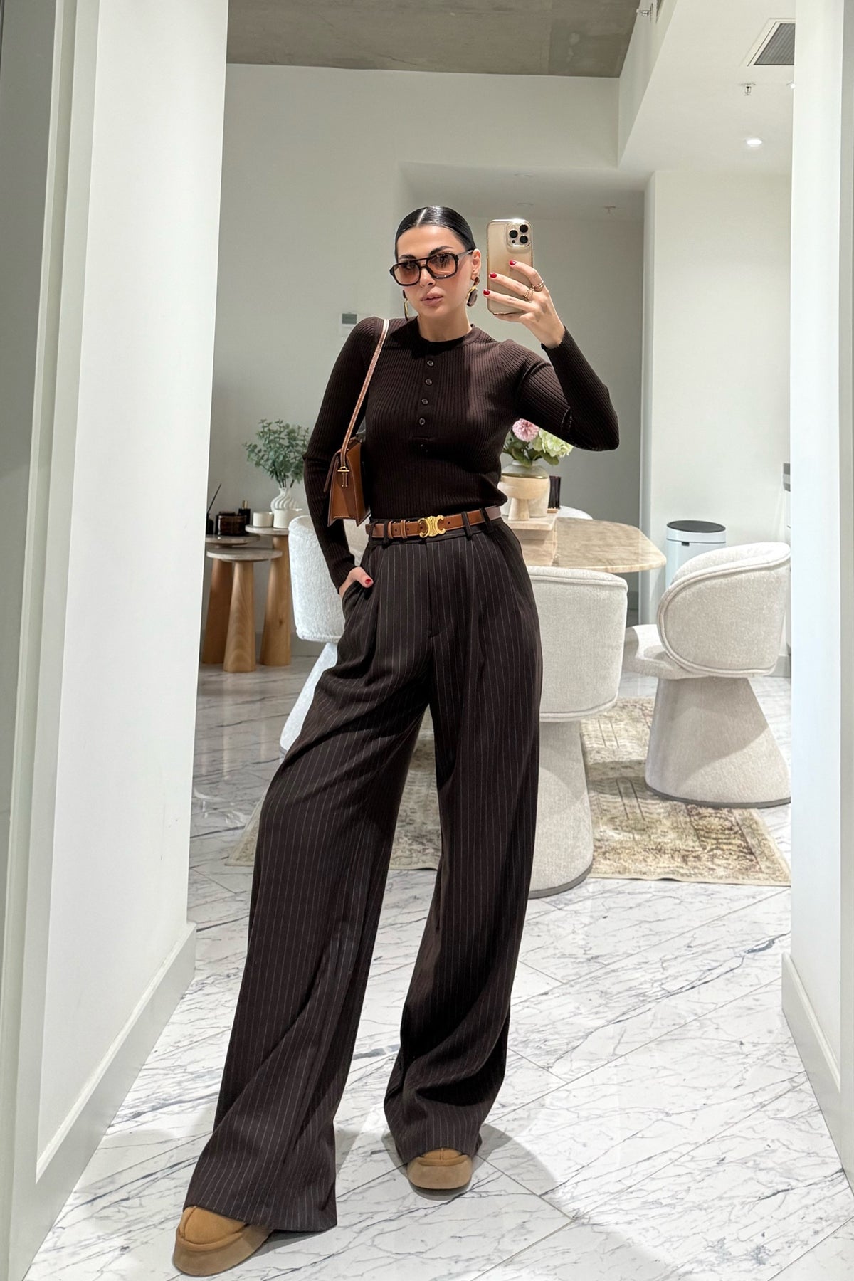 Kahverengi Yüksek Bel Çizgili Palazzo Pantolon SY-3524-Kahverengi