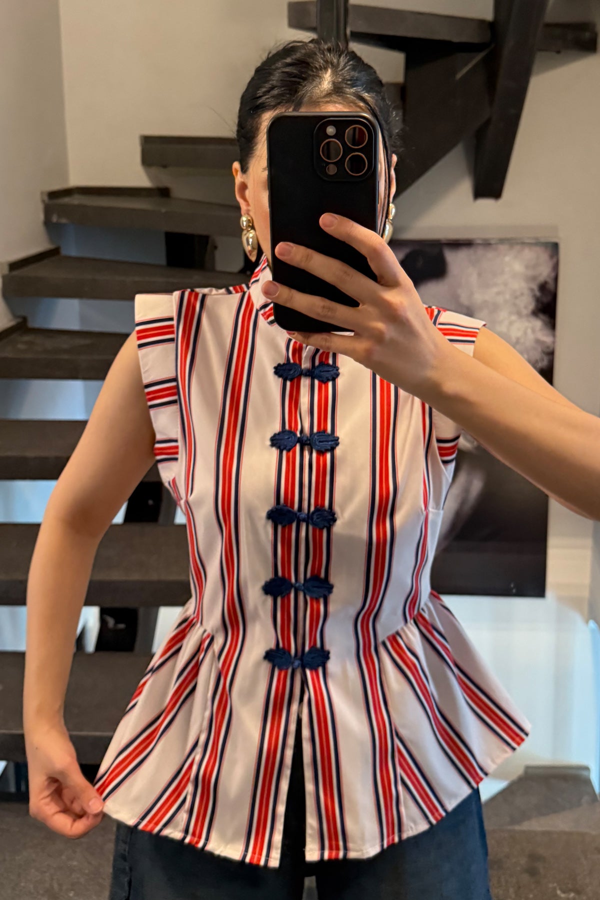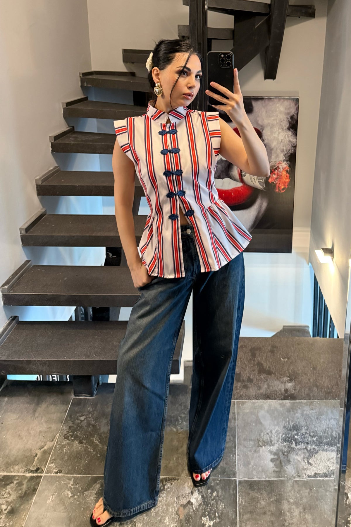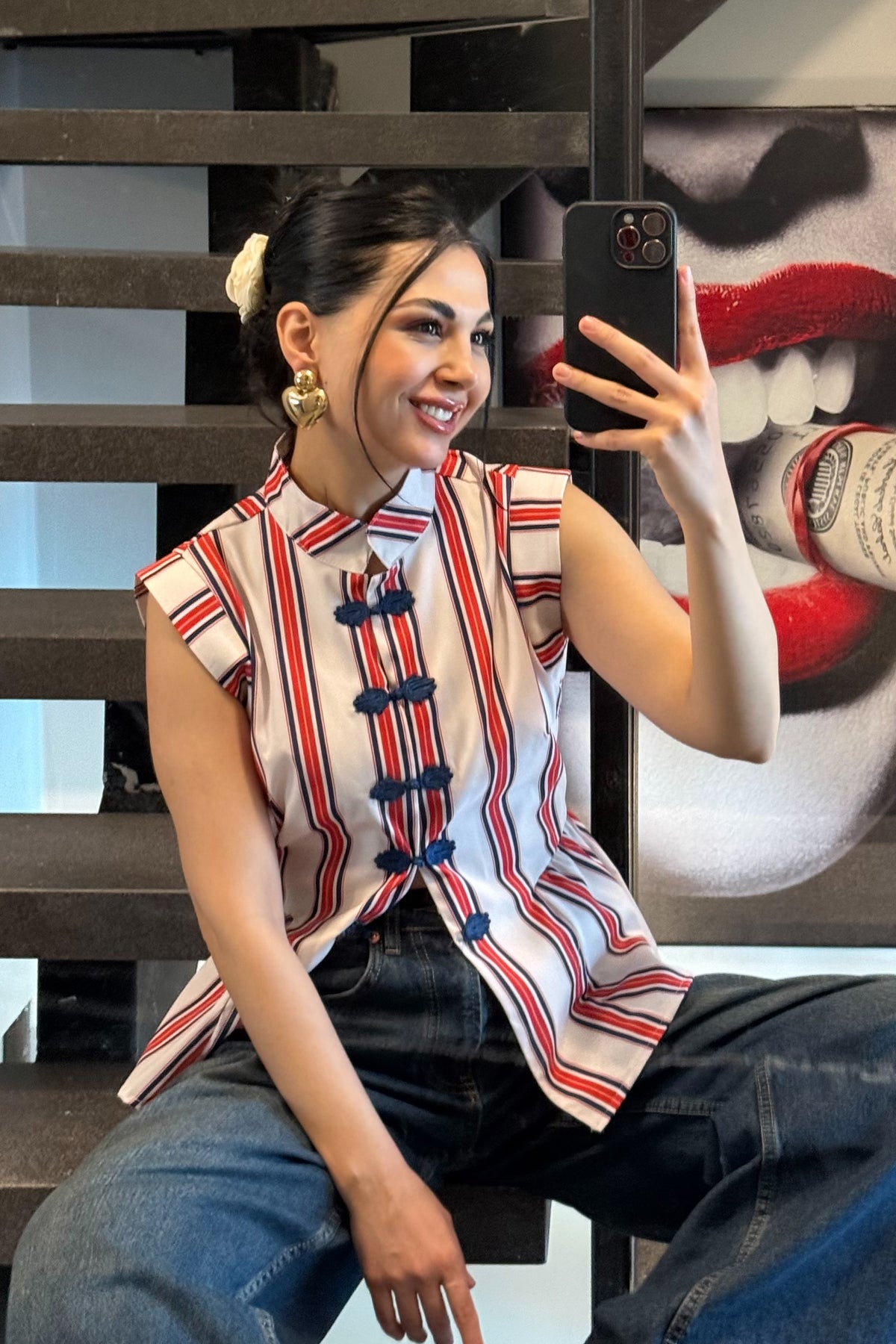 Ürün Detayları:Kırmızı Çizgili Napolyon Bluz