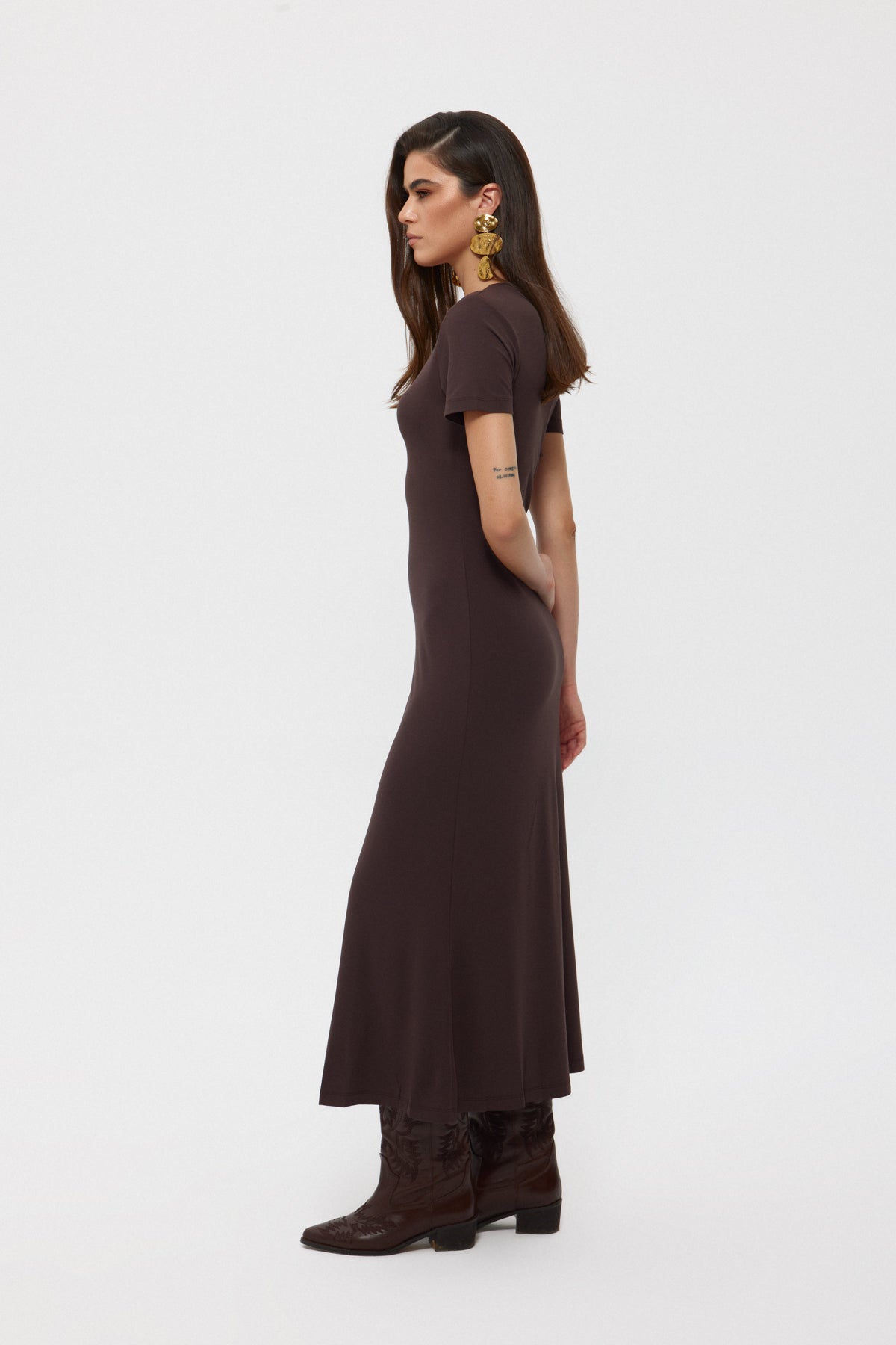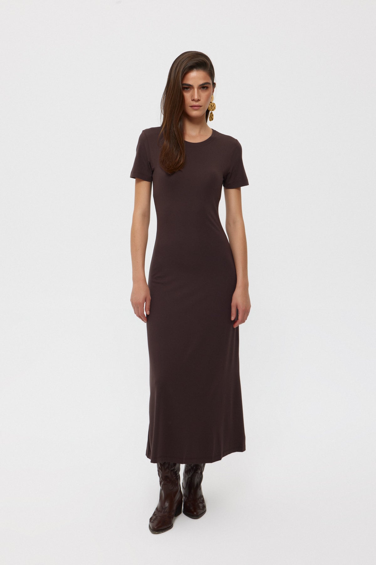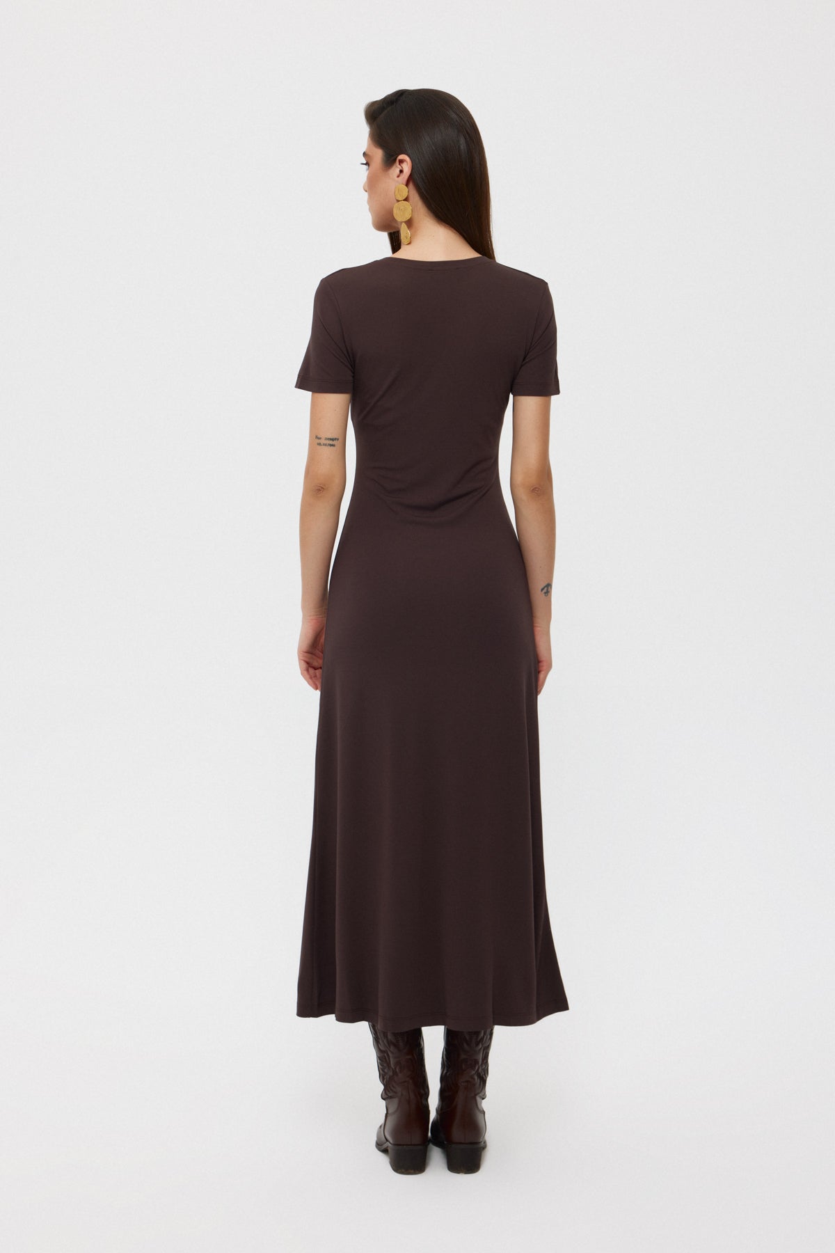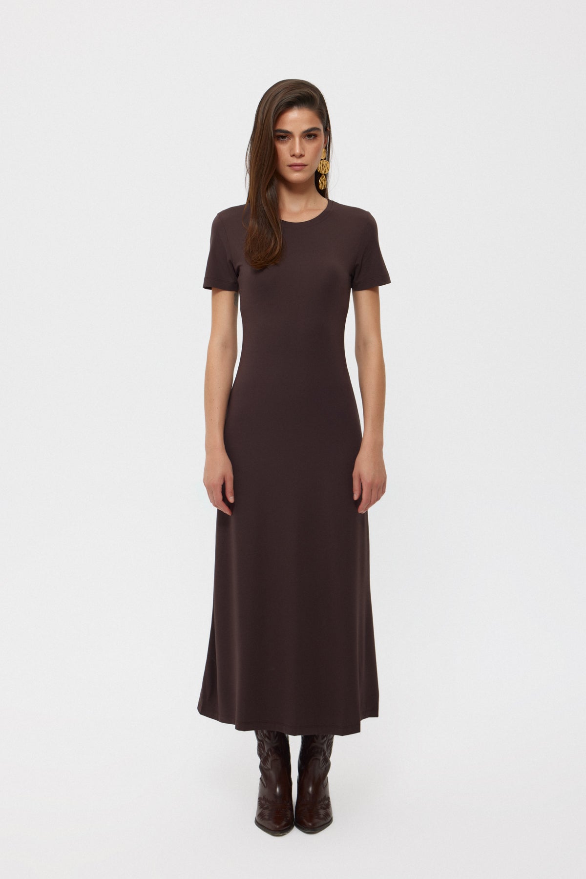 Ürün Özellikleri:Koyu Kahve Basıc Uzun Elbise