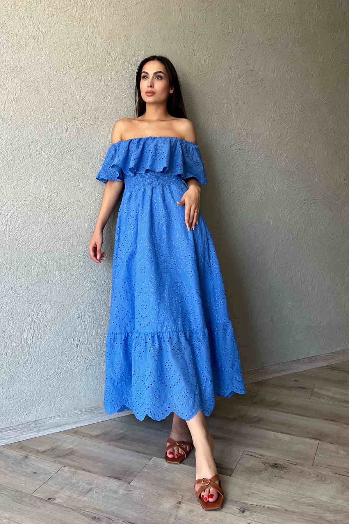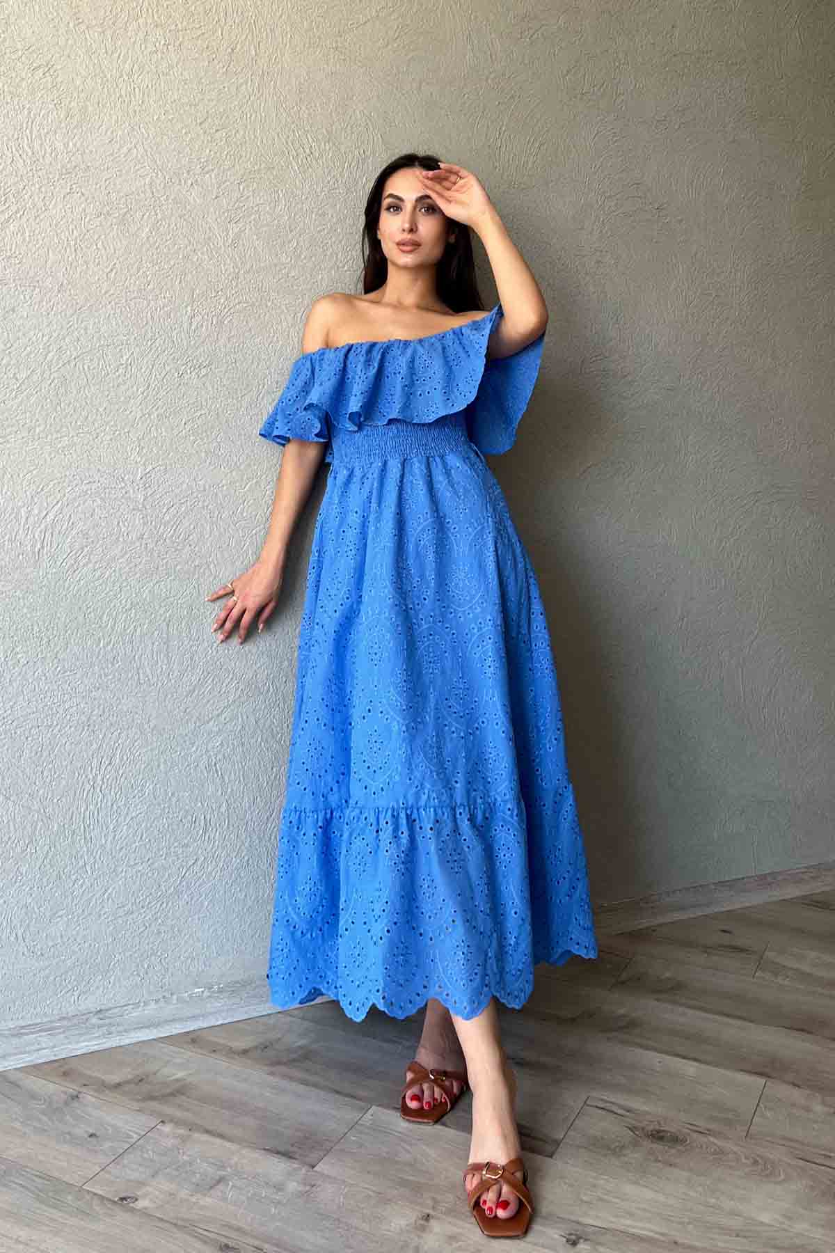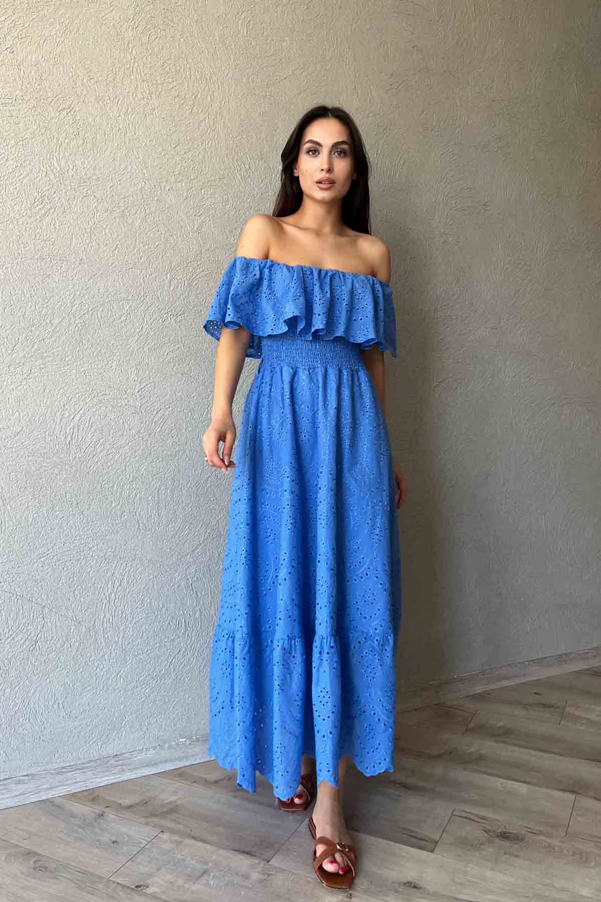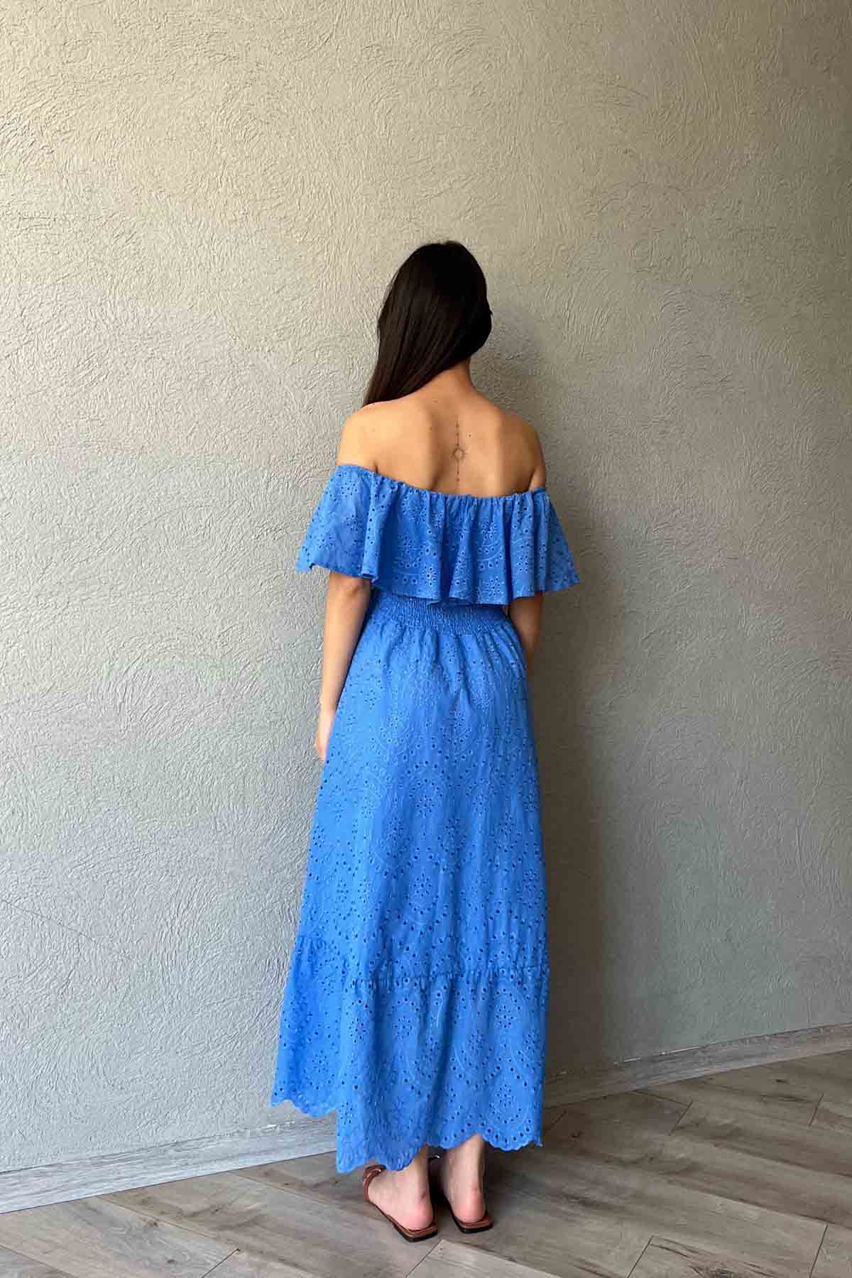 Mavi Madonna Yaka Kemer Detaylı Fisto Elbise SY-1964-Mavi