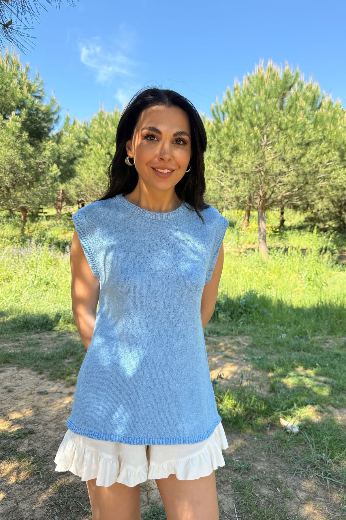 Mavi Sıfır Kol Triko Bluz SY-3127-Mavi