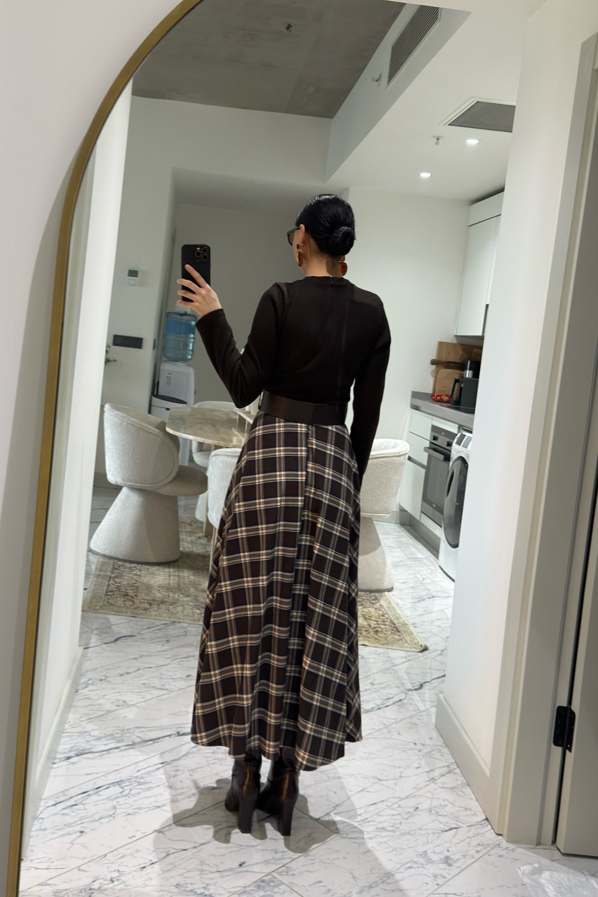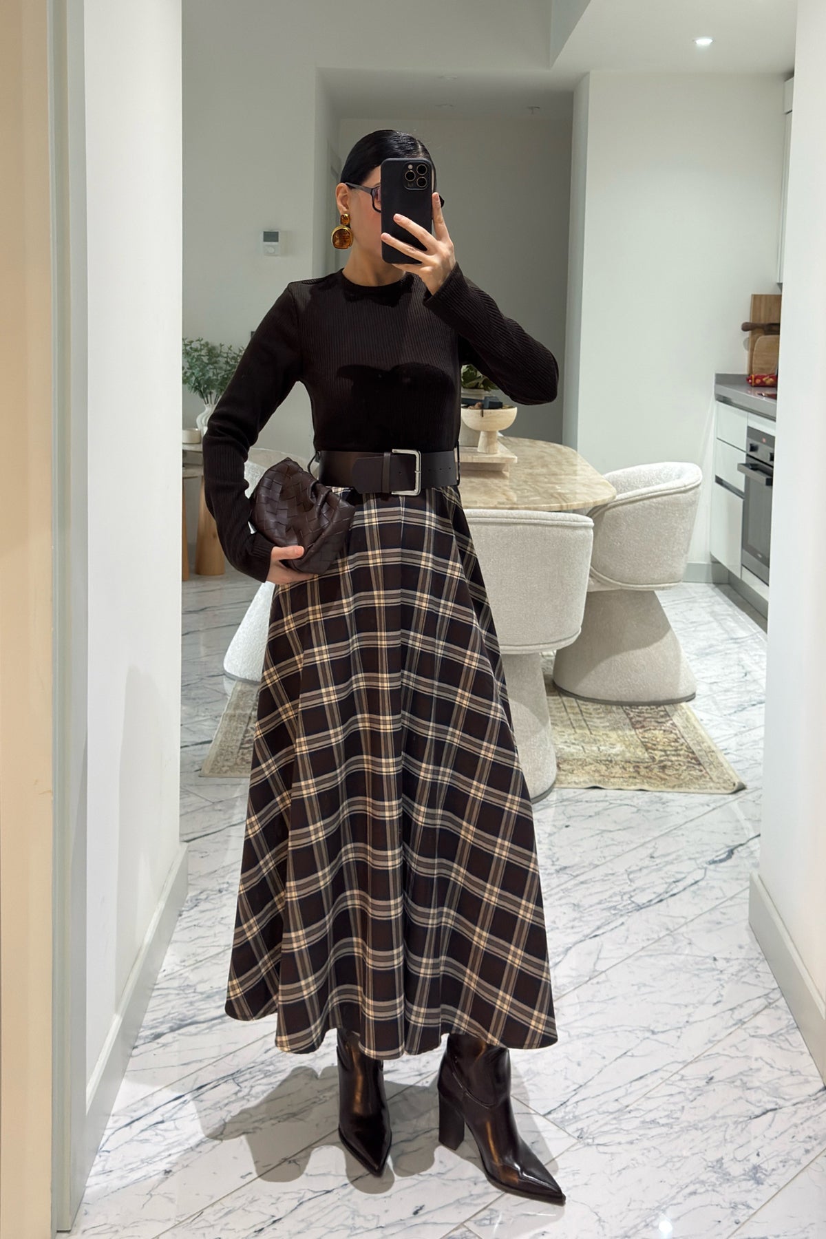 Ürün Detayları:Örme Ekose Detaylı Kemerli Elbise-Kemer Elbiseye dahildir-Üst triko esnek alt kısmı kumaş-Tam kalıp tam beden önerilir