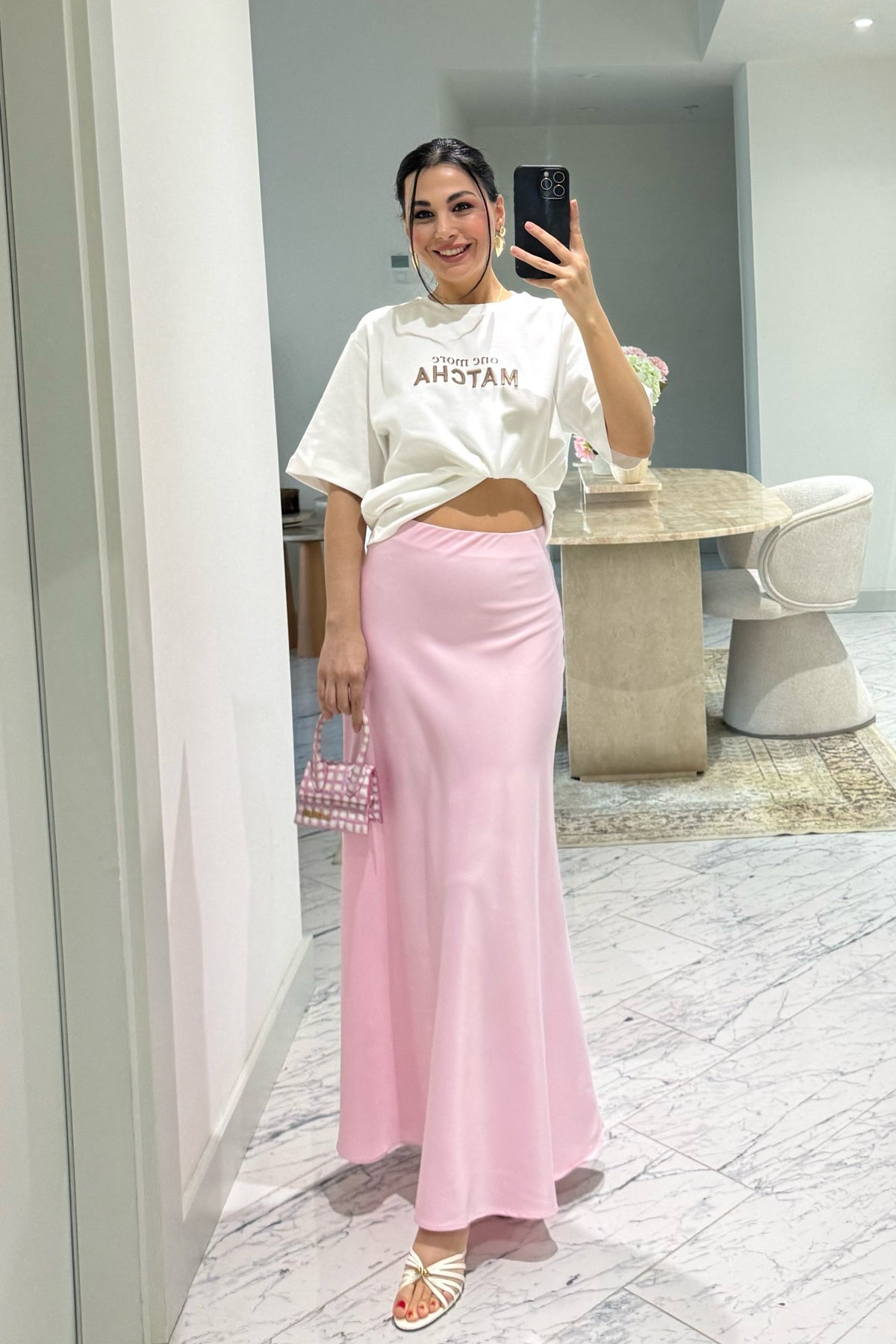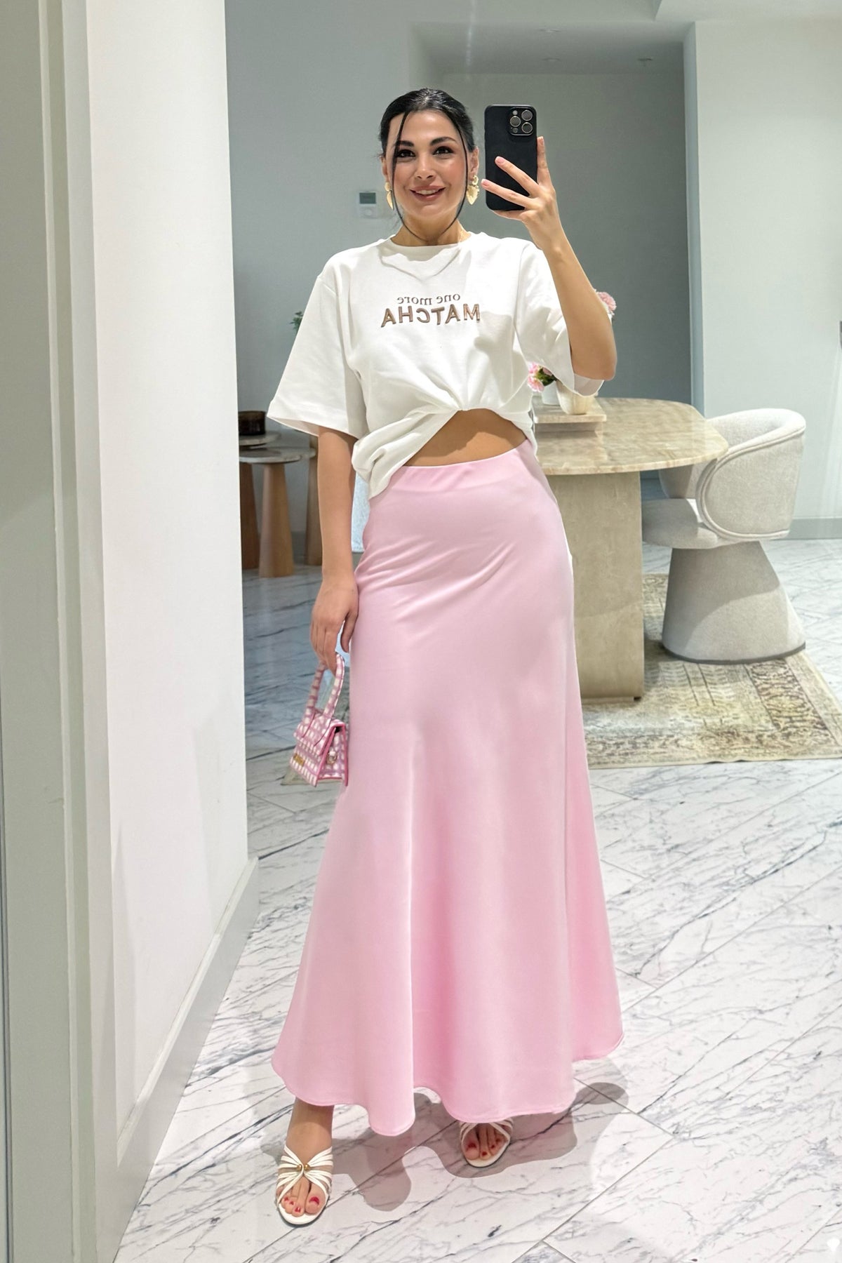 Pembe Premium Uzun Saten Çan Etek SY-3685-Pembe