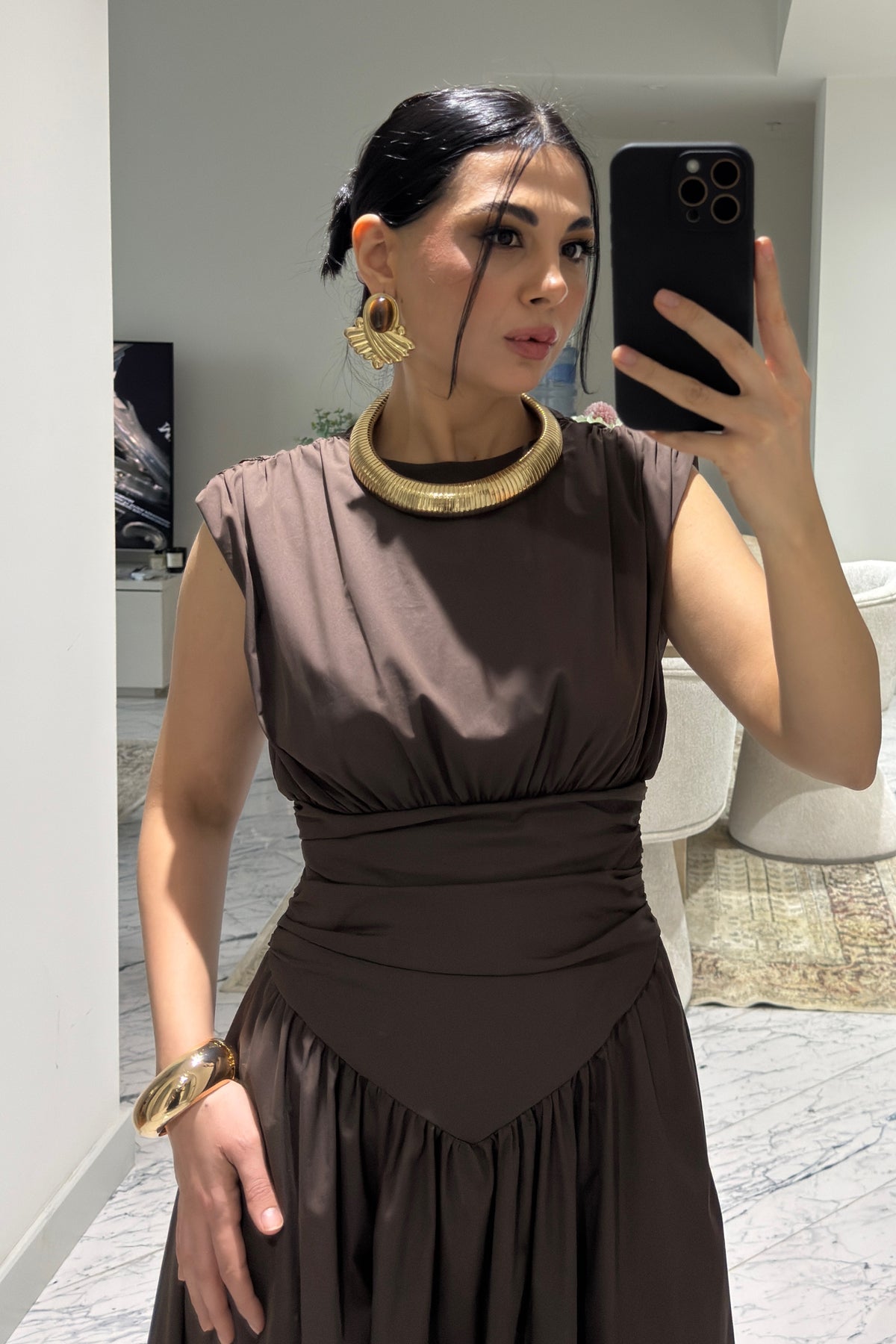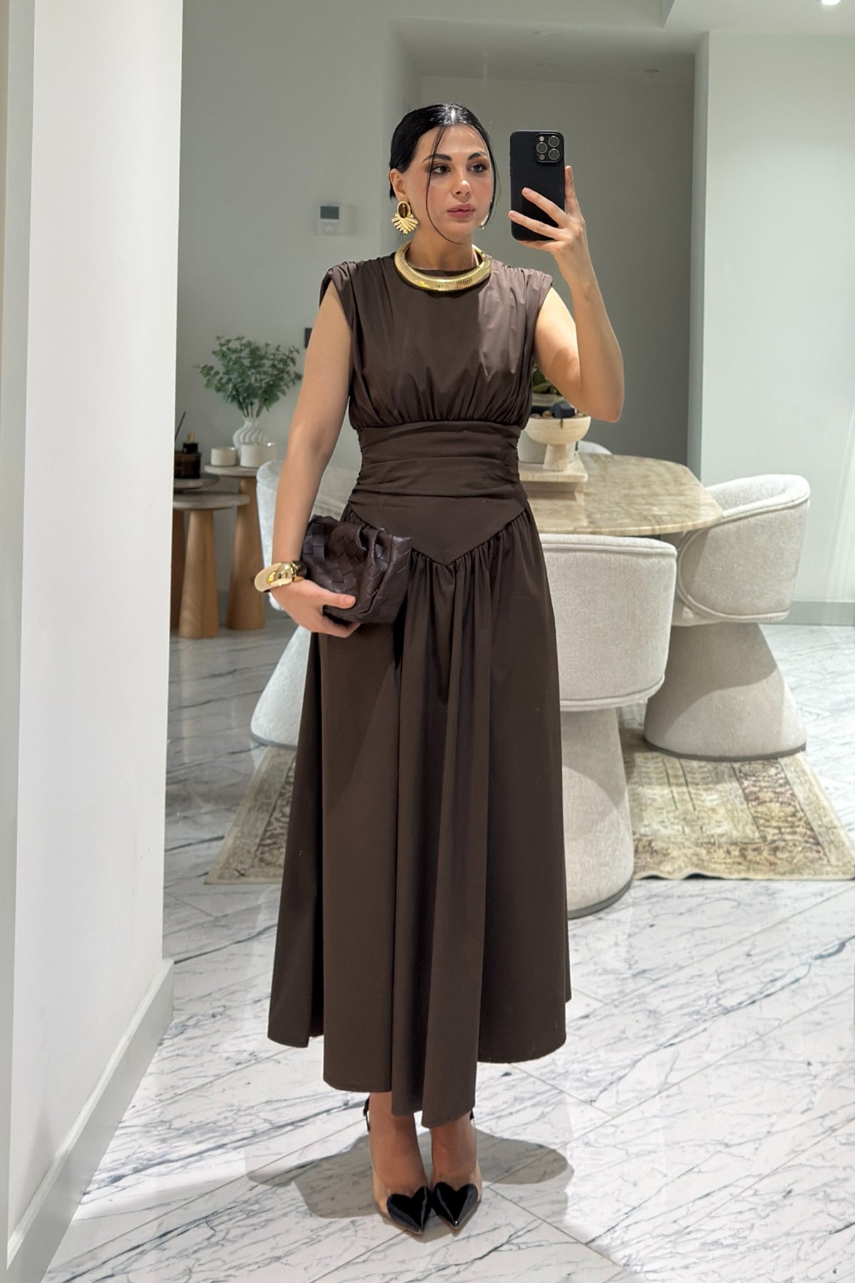 Pinterest Model Beli Drapeli Kahverengi Elbise SY-3610-Kahve