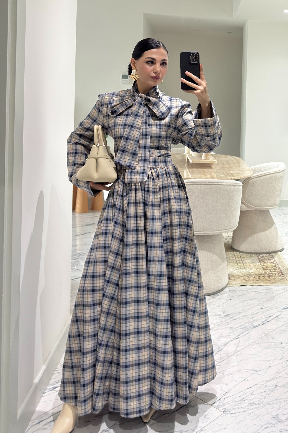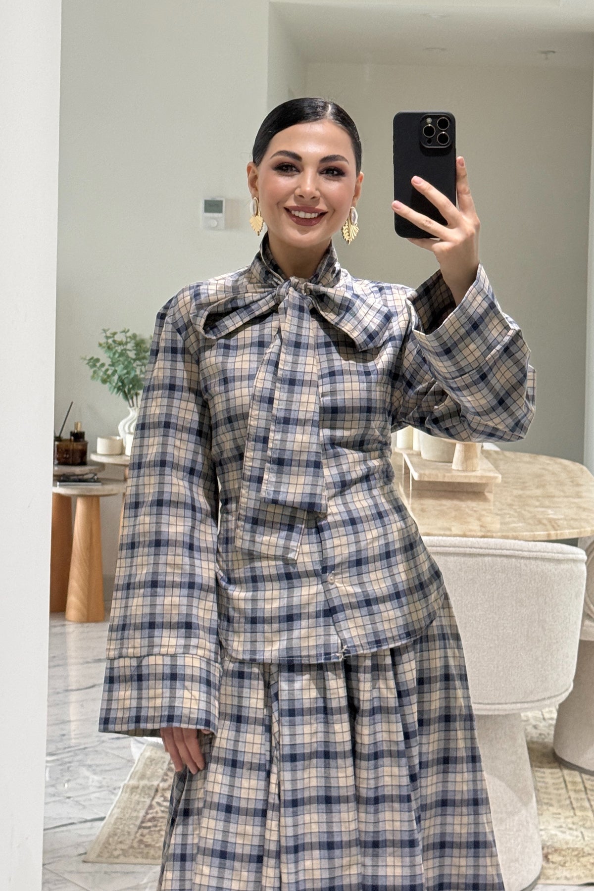Pinterest Viral Ekose Etek Takım Bej SY-3616-Bej