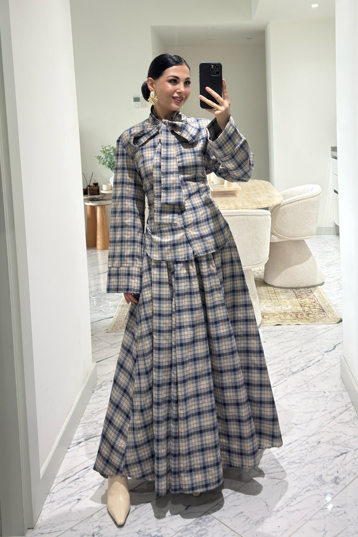 Ürün Detayları:Pinterest Viral Ekose Etek Takım Bej-Etek bel kısmı lastikli rahat kalıp geniş kalıptır