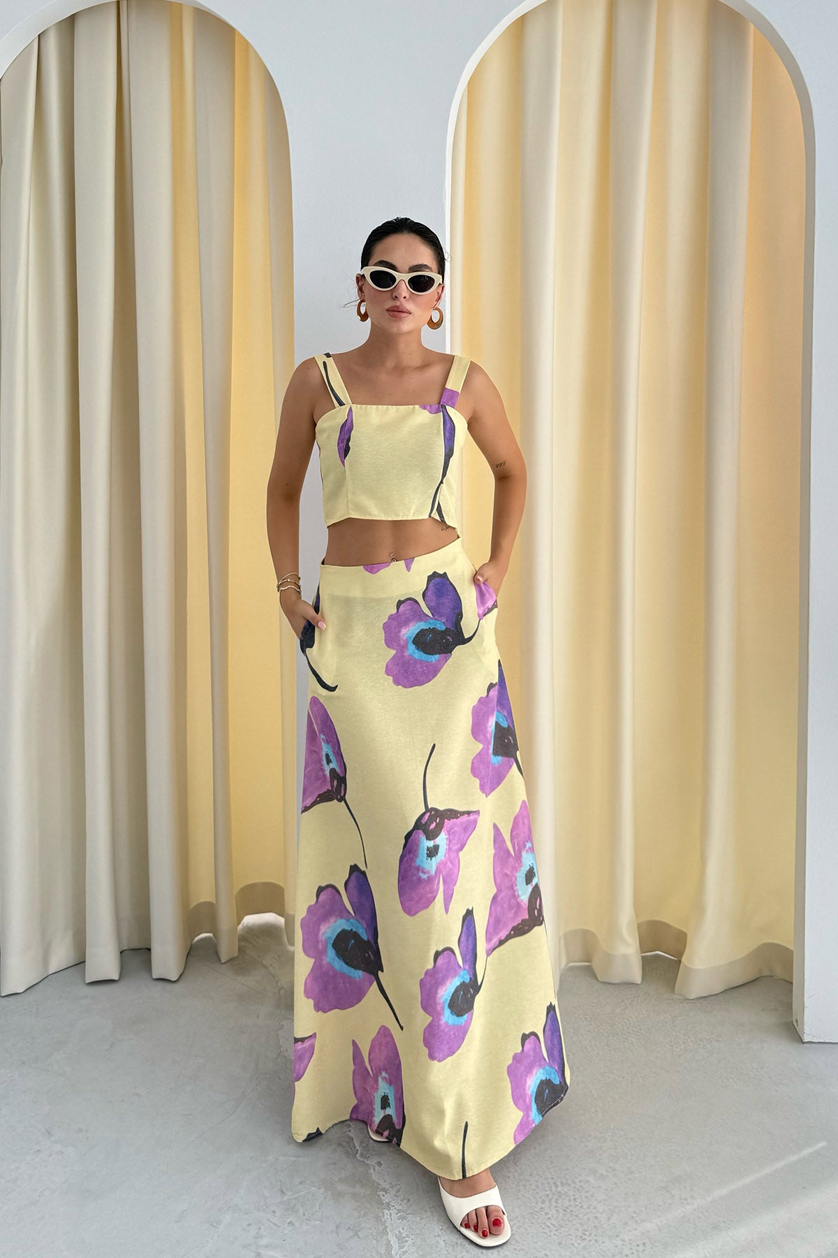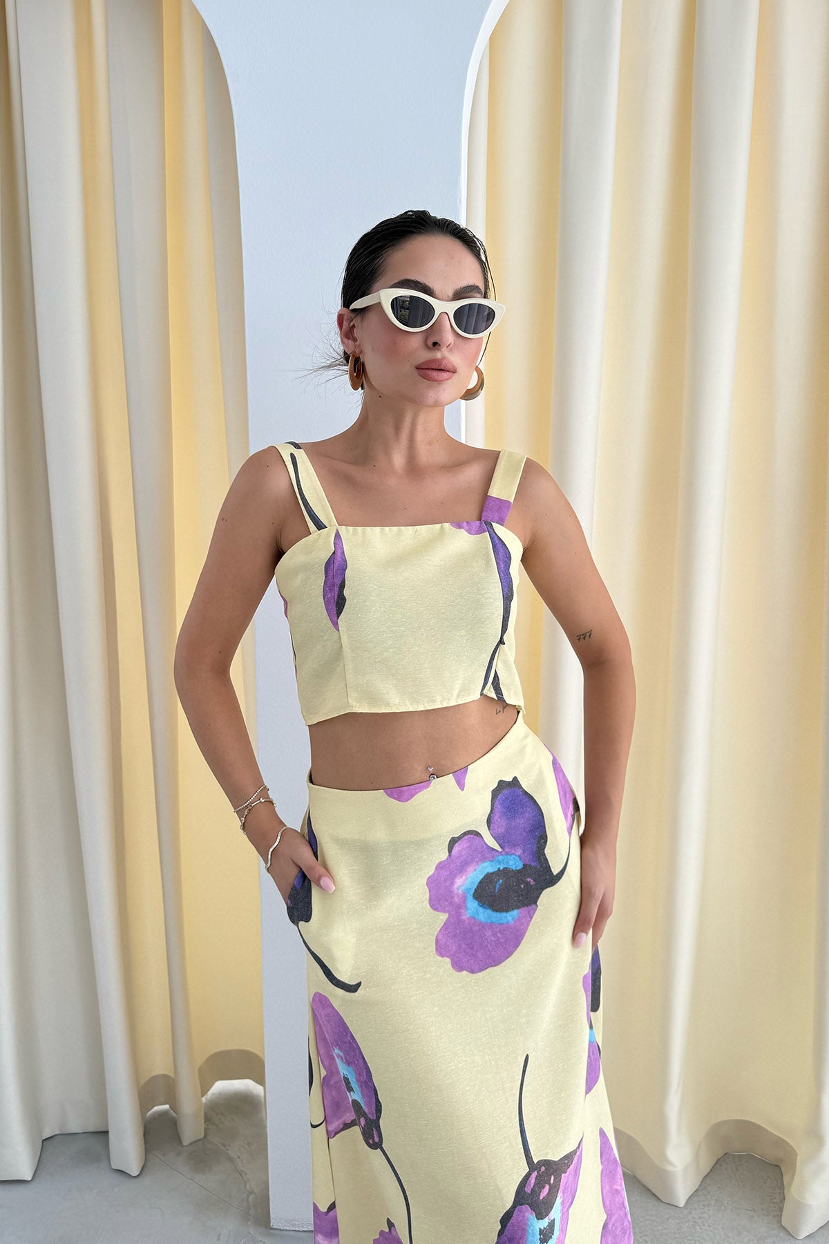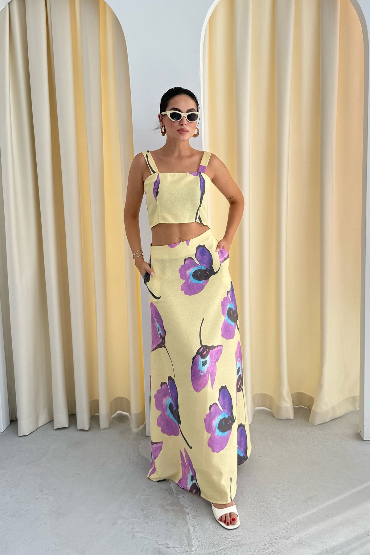 Ürün Detayları ; Sezonun en sevilen Takımları Seda Yalçın Atelier'de sizleri bekliyor. RENKLİ ÇİCEK DESENLİ KETEN CROP ETEK TAKIM kombinlerinizin vazgeçilmezi olacak