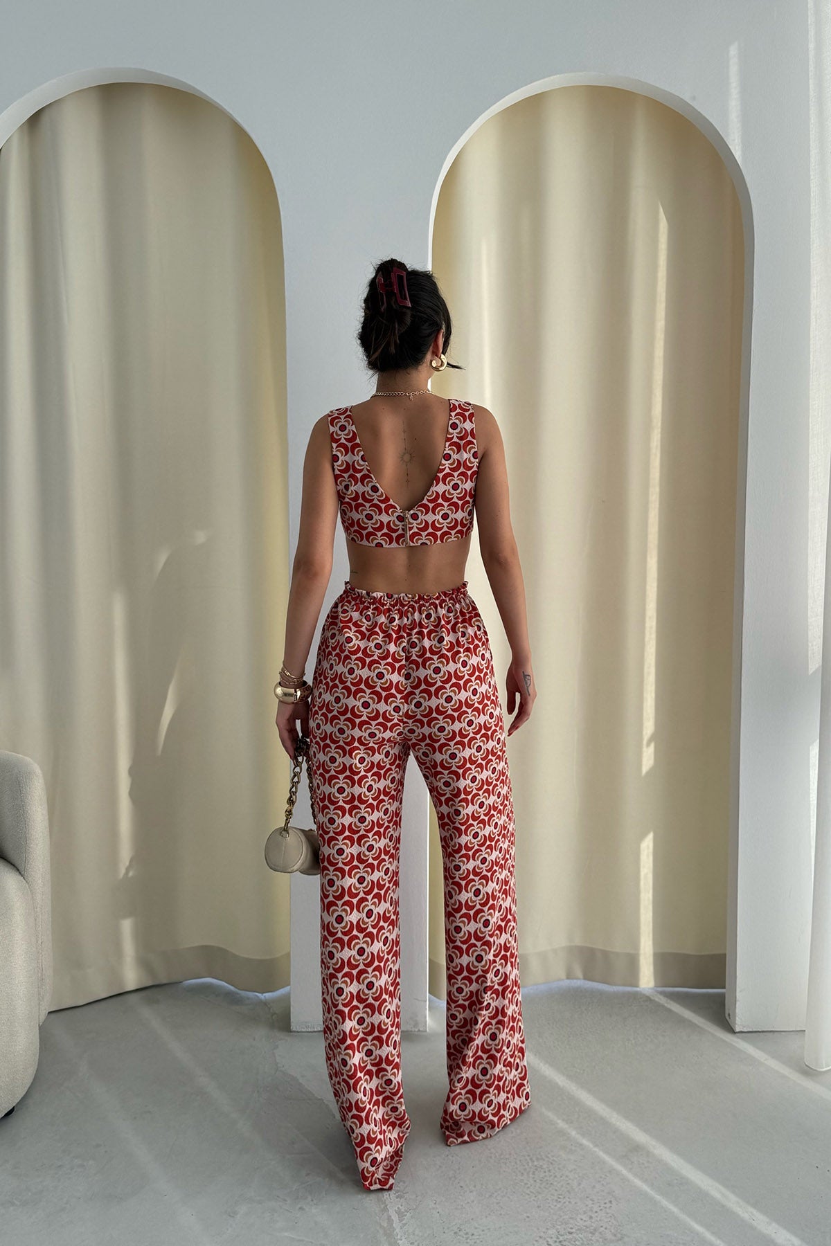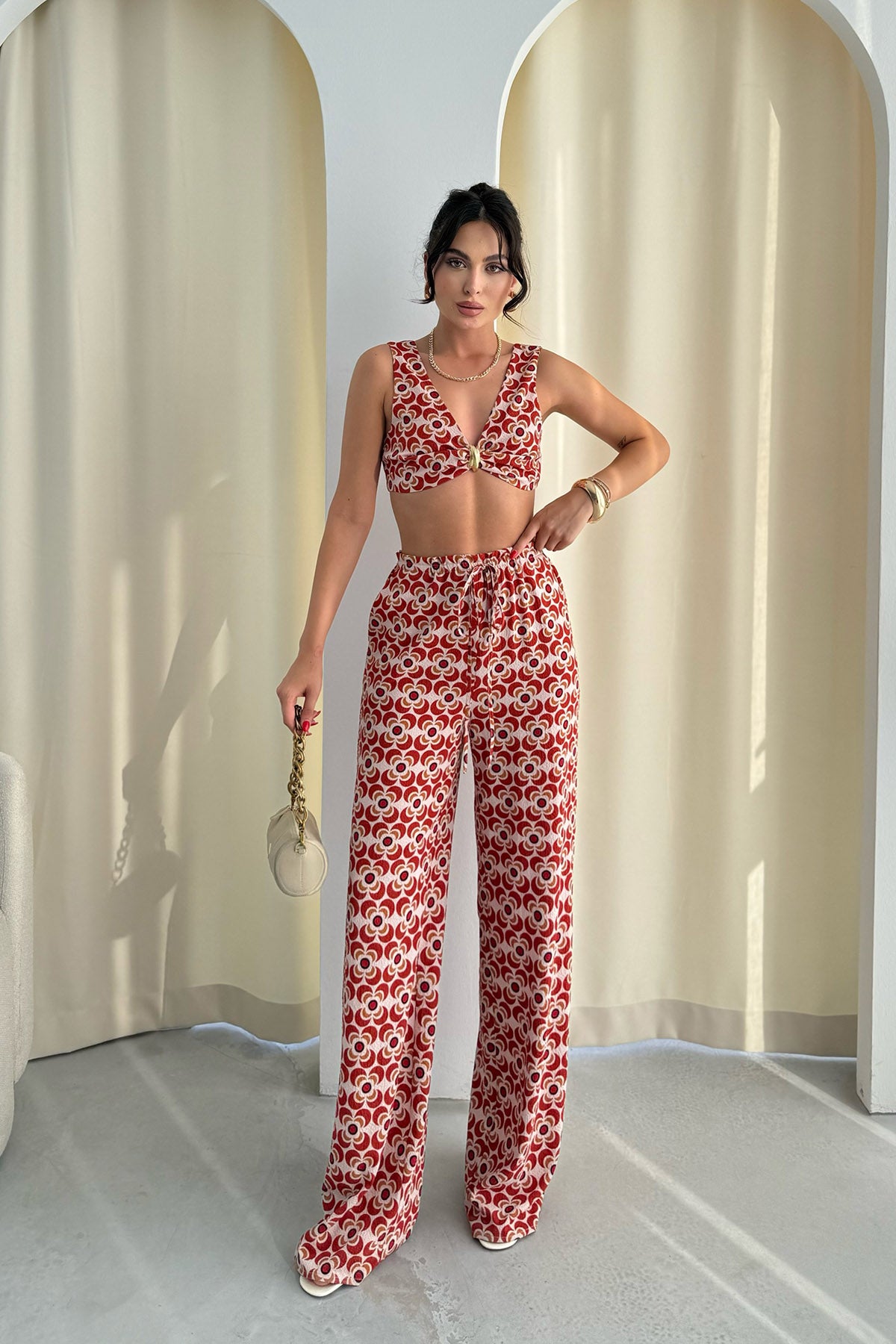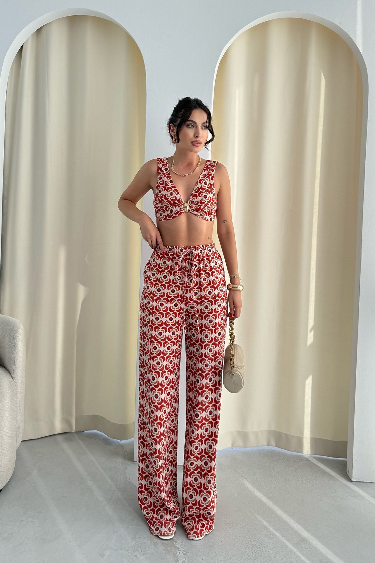 Renkli Geniş Paça Pantolon ve Gold Aksesuarlı Bustiyer Takım SY-3251-Renkli