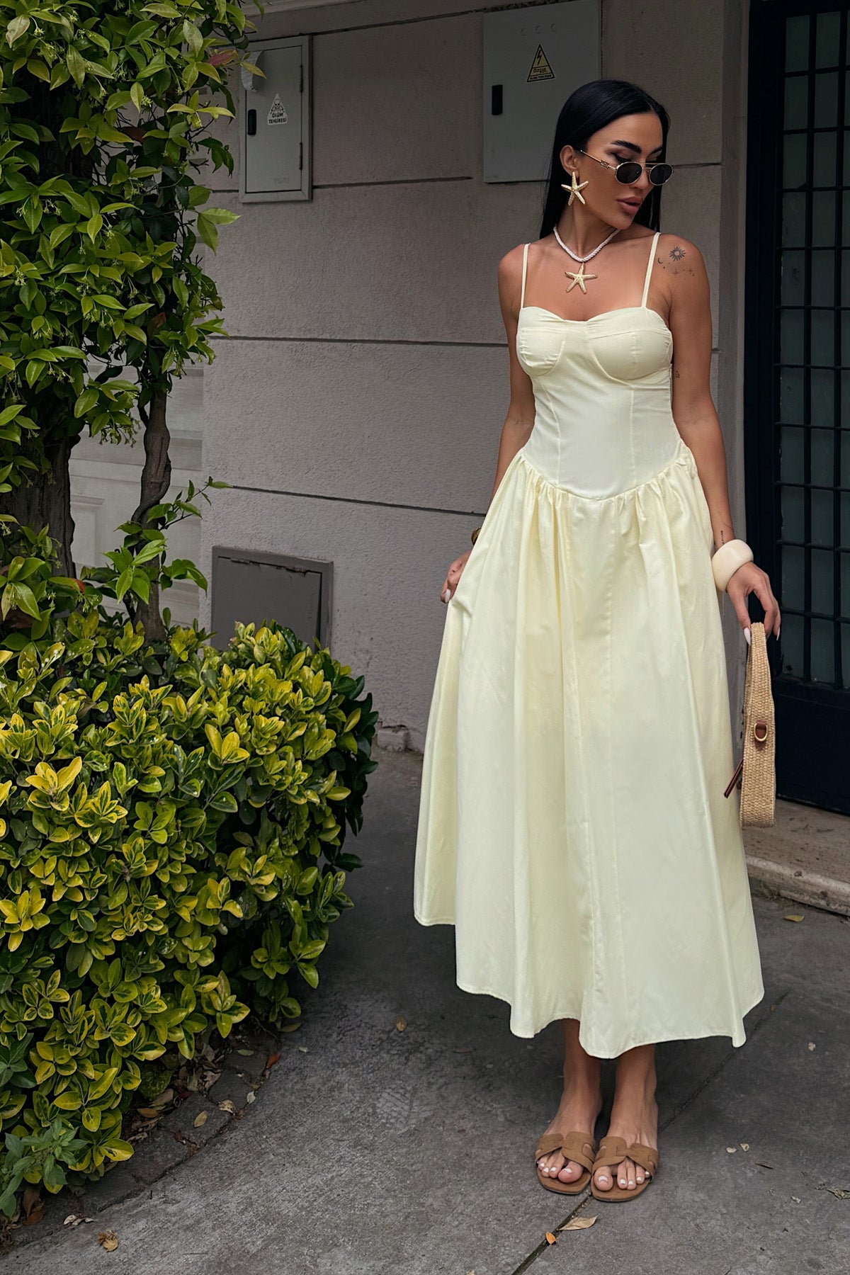Sarı Marino Göğüs Kulplu Elbise SY-3173-Sarı