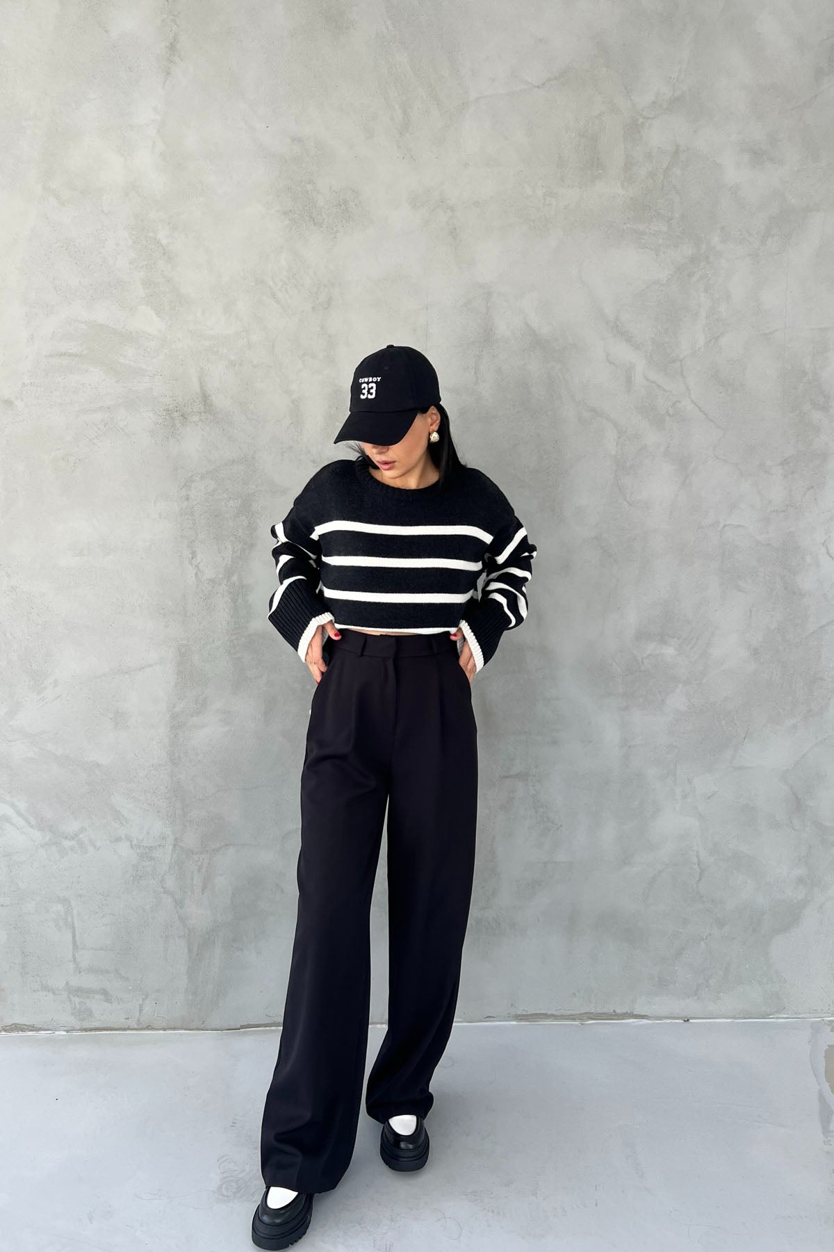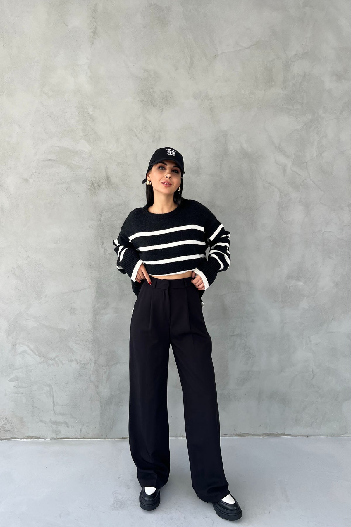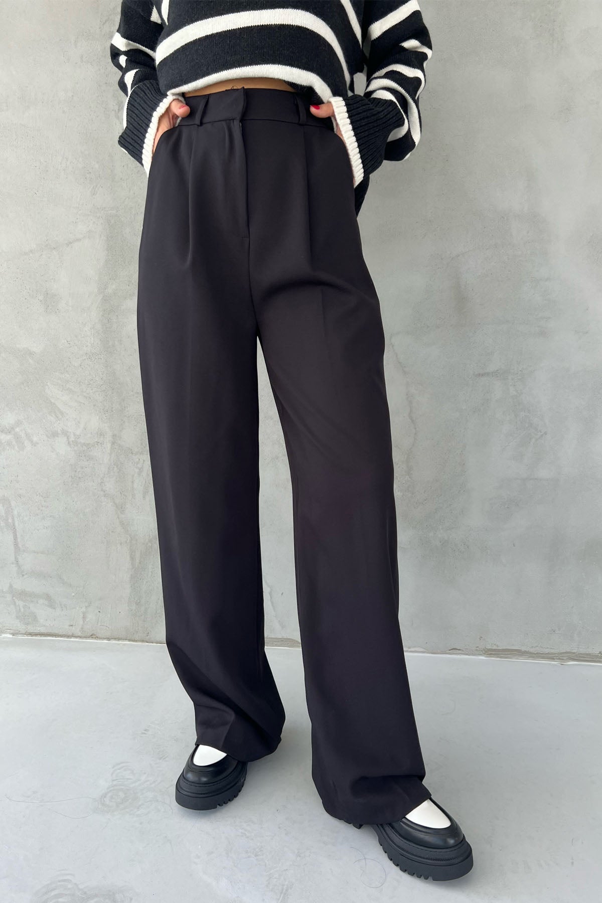 Ürün Özellikleri:Siyah Arka Cep Detaylı Palazzo Pantolon