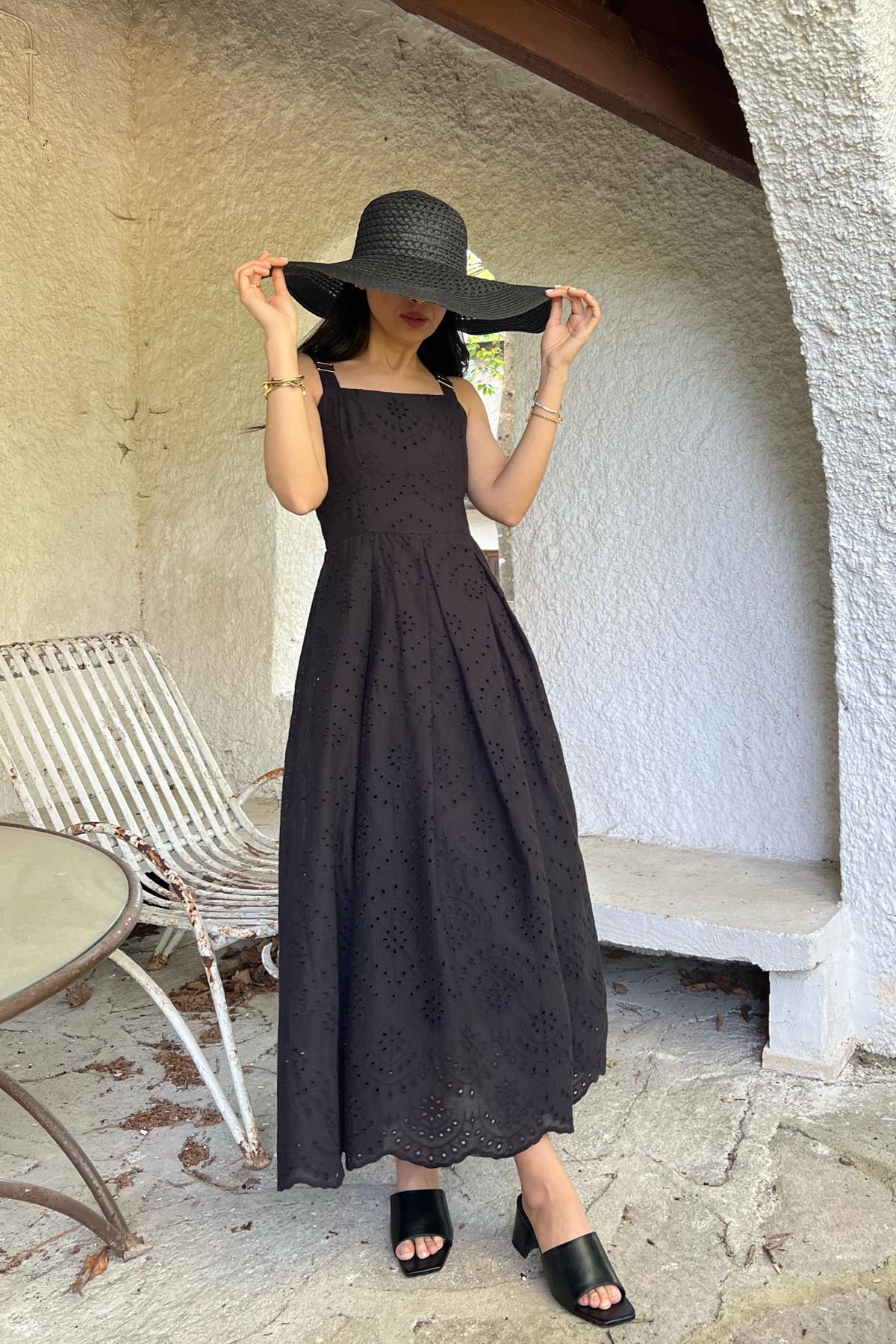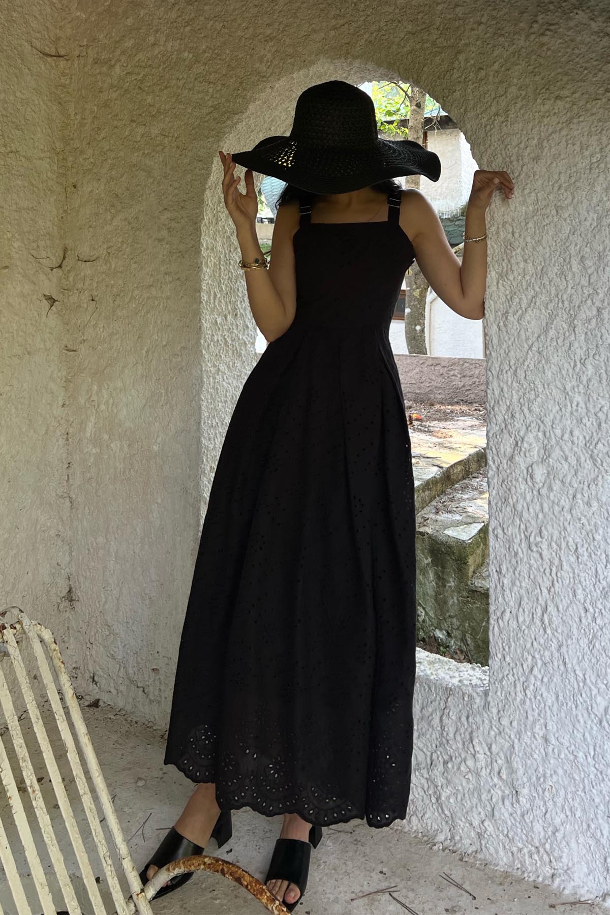 Siyah Askı Aparat Detaylı Brode Elbise SY-2036-Siyah
