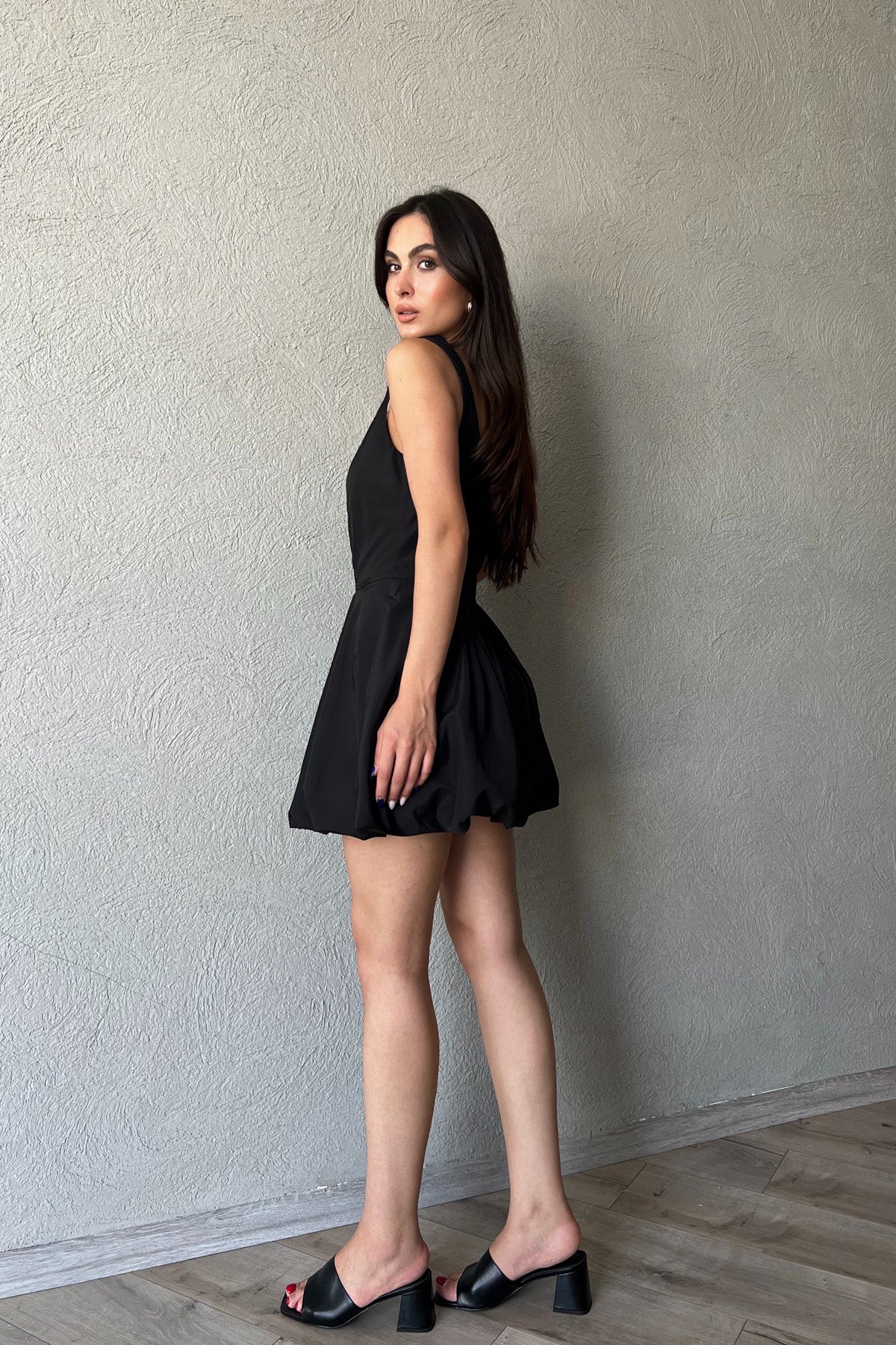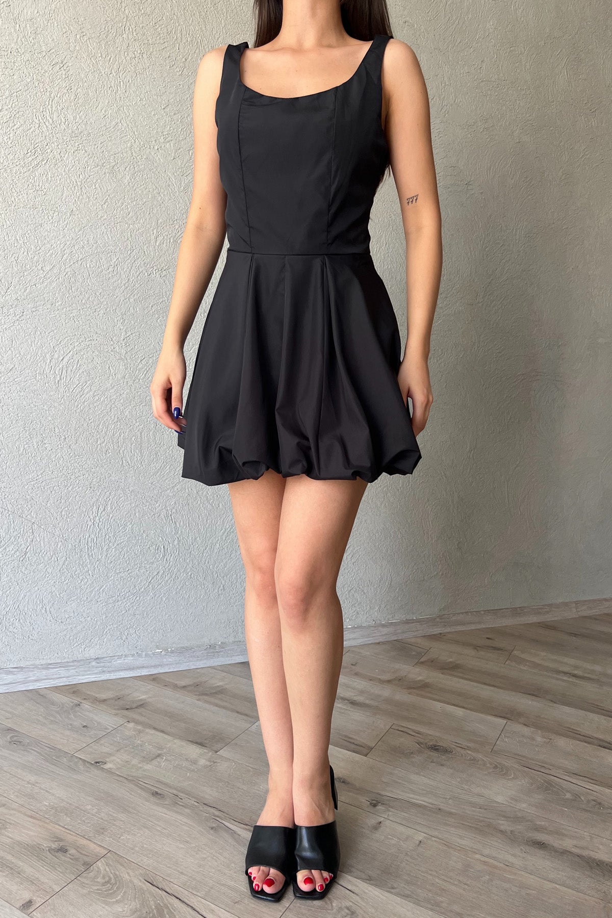 Siyah Balon Etek Mini Elbise SY-2214-Siyah