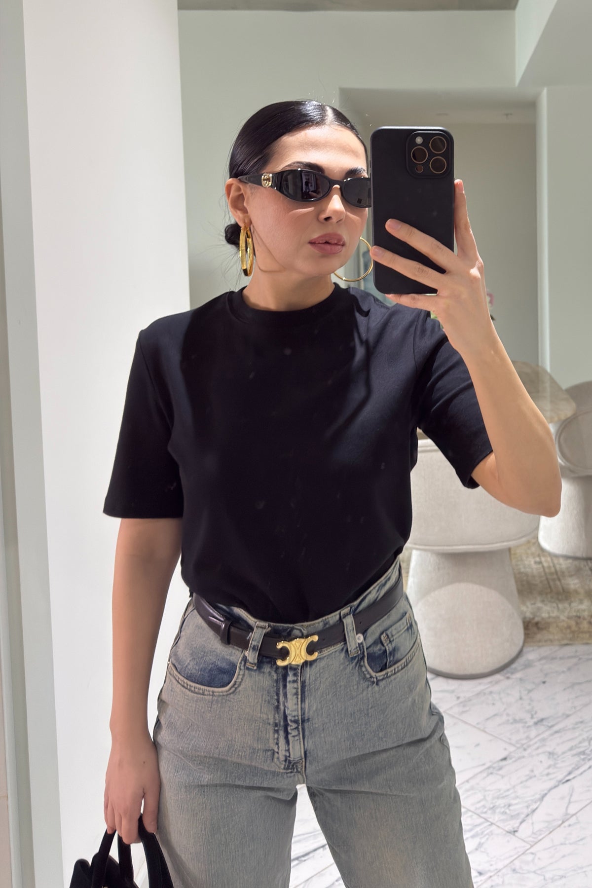 Ürün Detayları:Siyah Bisiklet Yaka Basic T-shirt