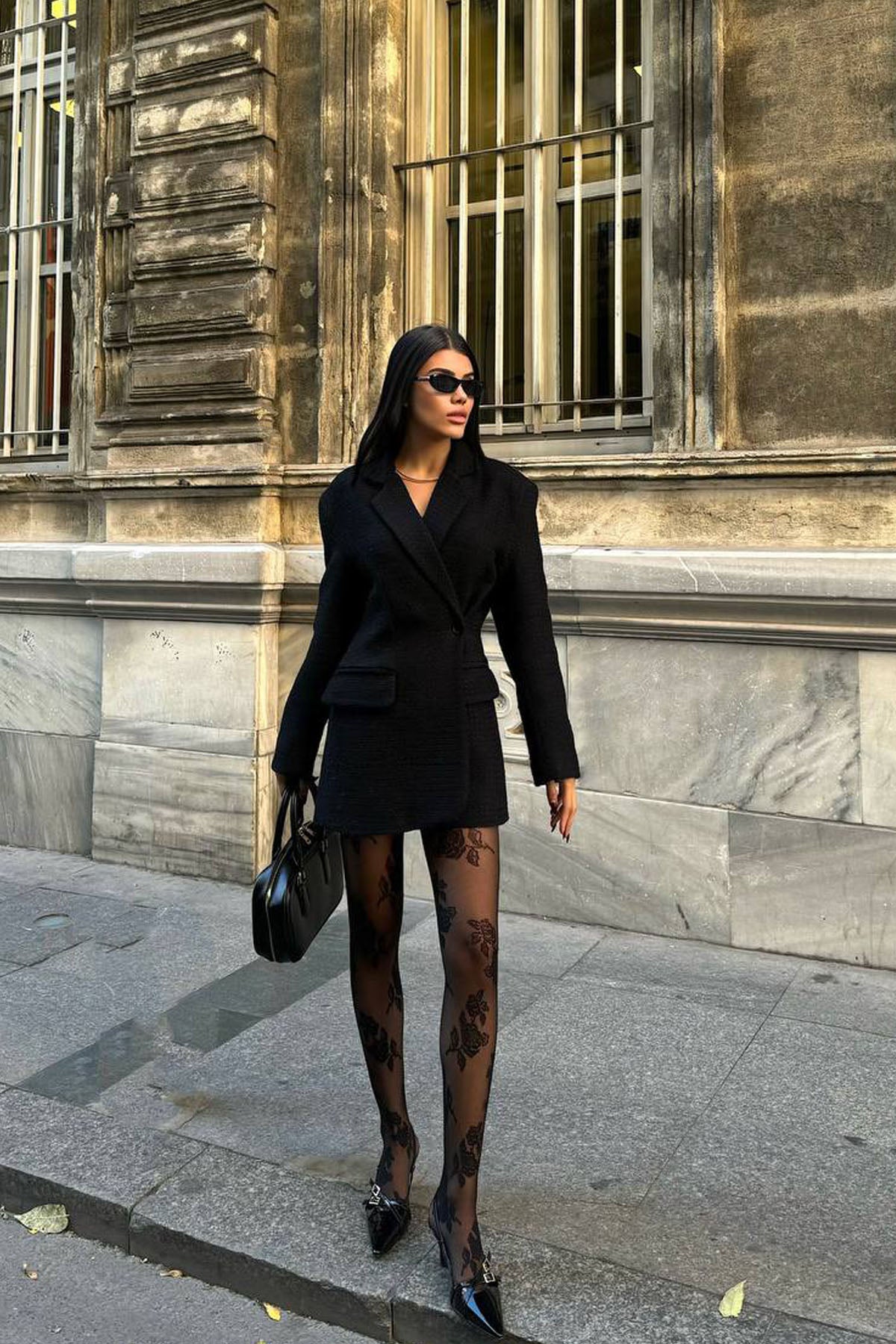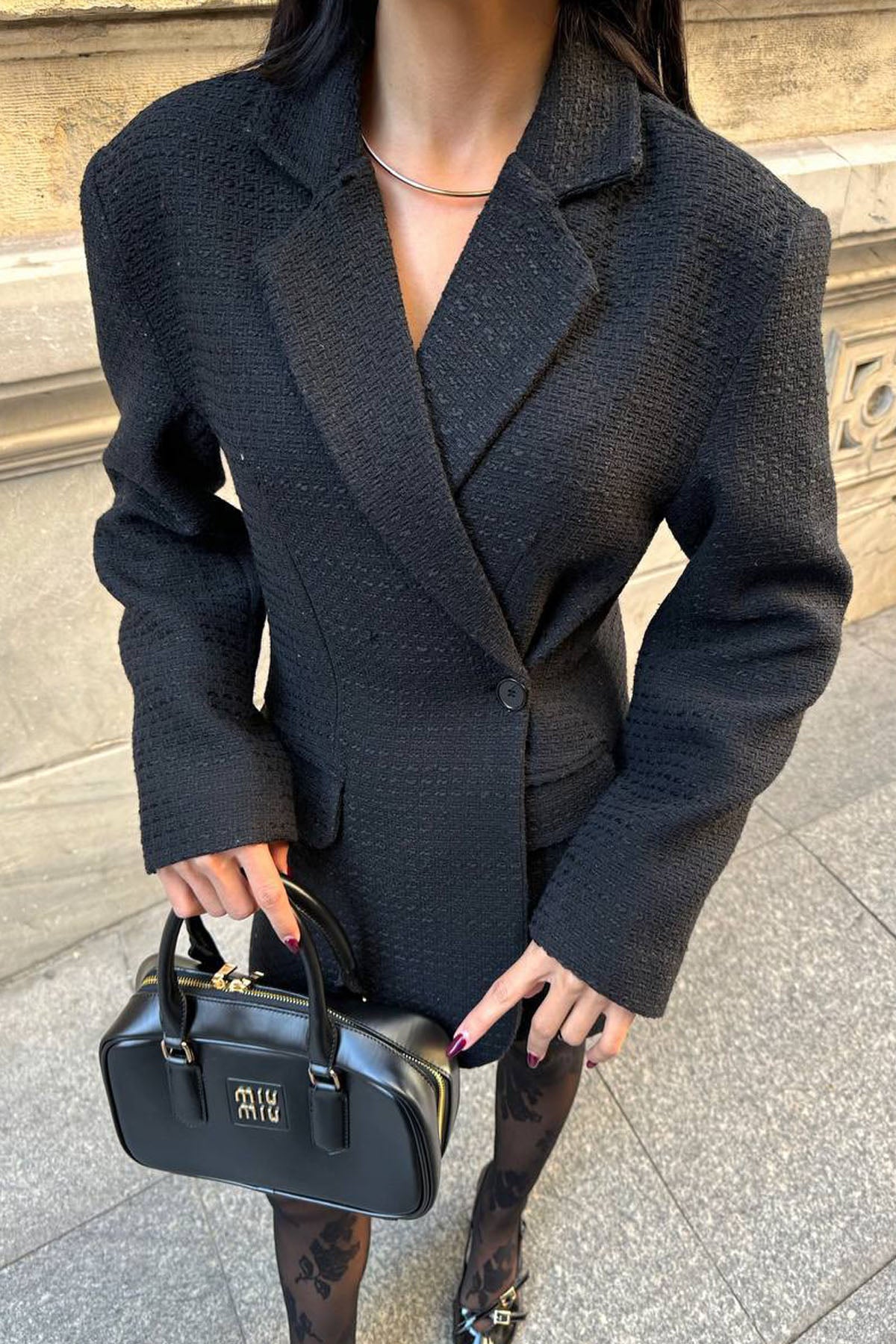 Siyah Durham Tasarım Tek Düğmeli Tüvit Ceket SY-2746-Siyah