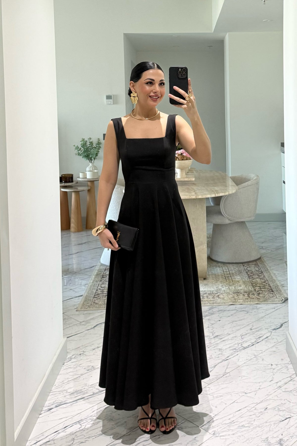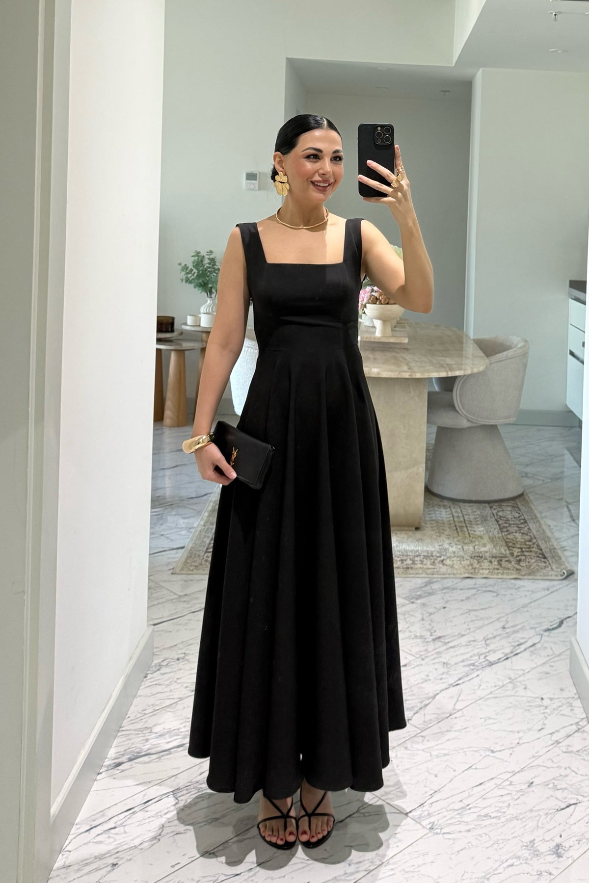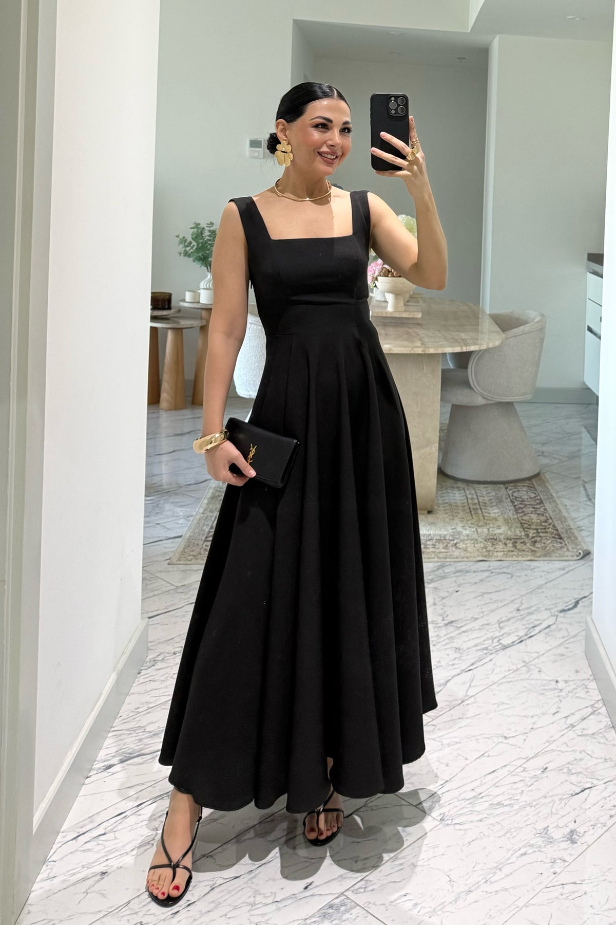Ürün Detayları:Siyah Kare Yaka Füsun Prenses Elbise