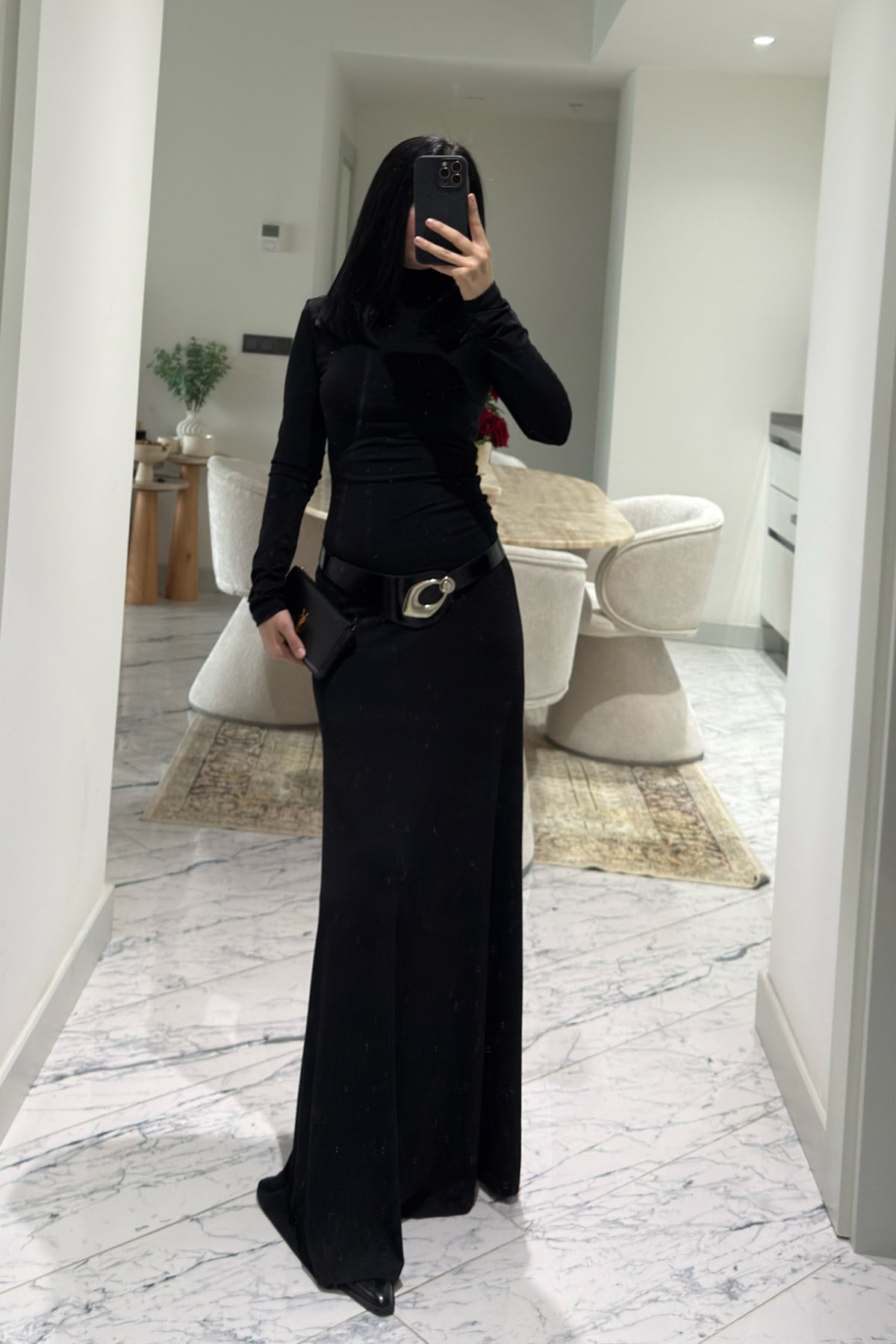 Siyah Kemer Detaylı Maxi Basic Elbise SY-3618-Siyah