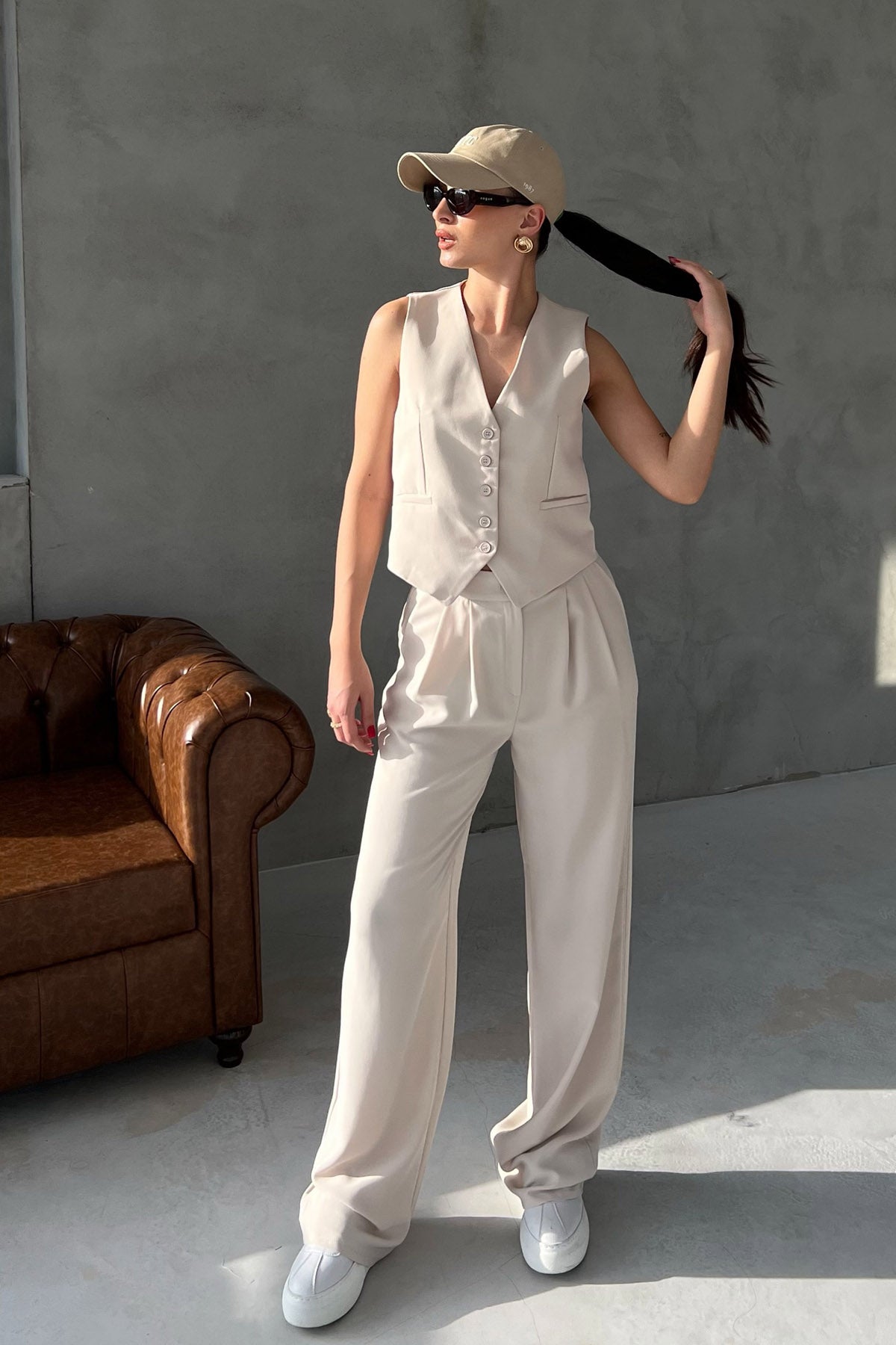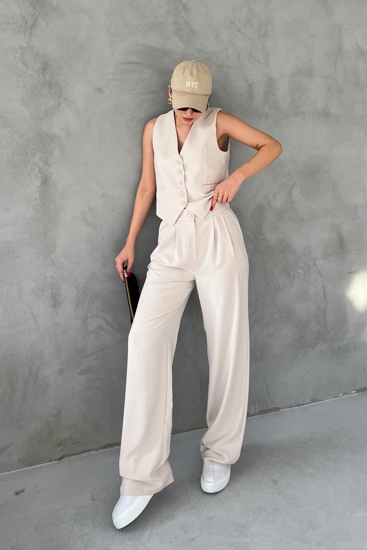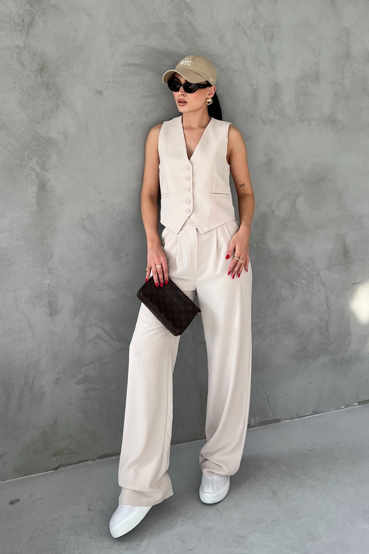 Ürün Özellikleri:Taş Cep Detaylı Yelek Palazzo Pantolon
