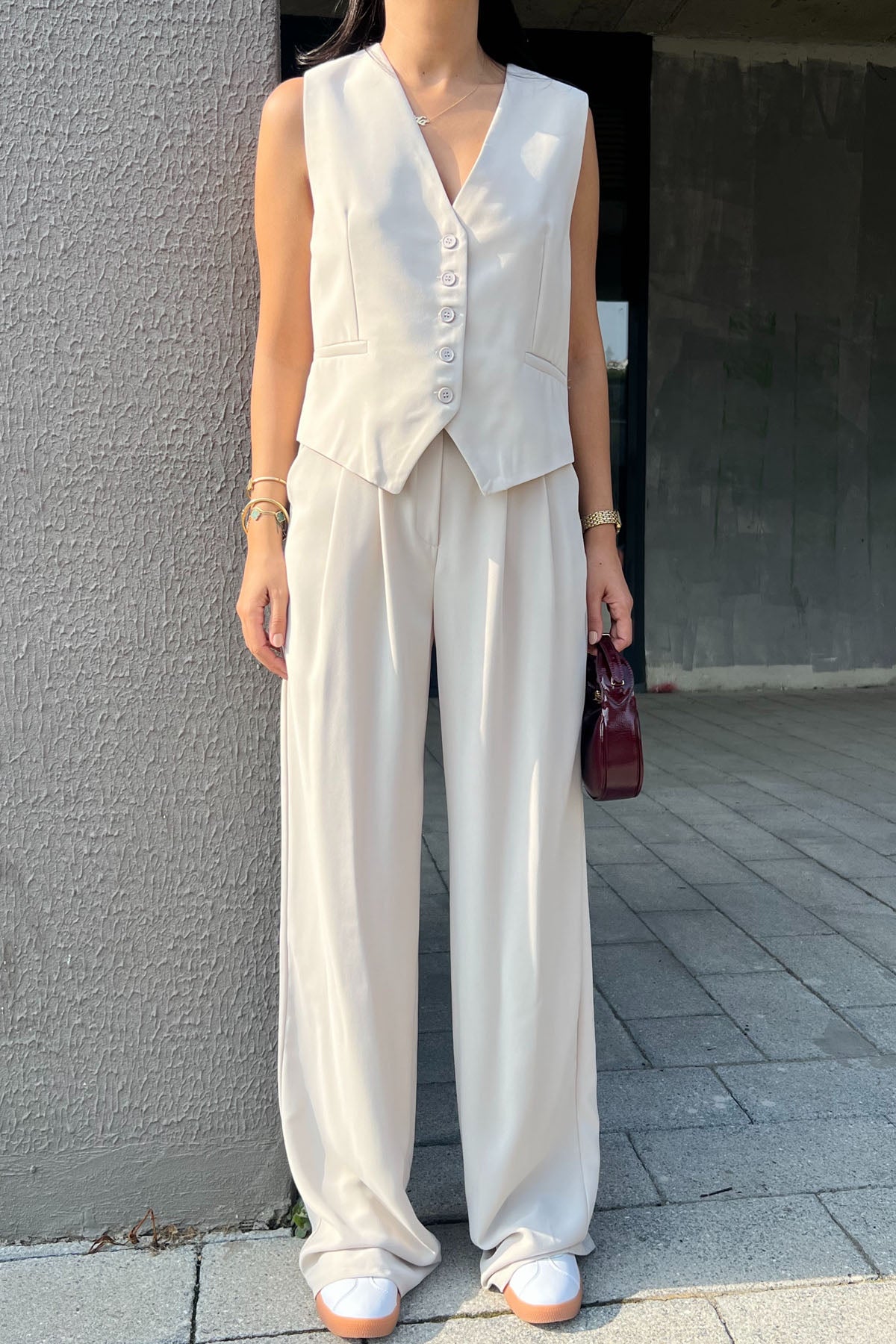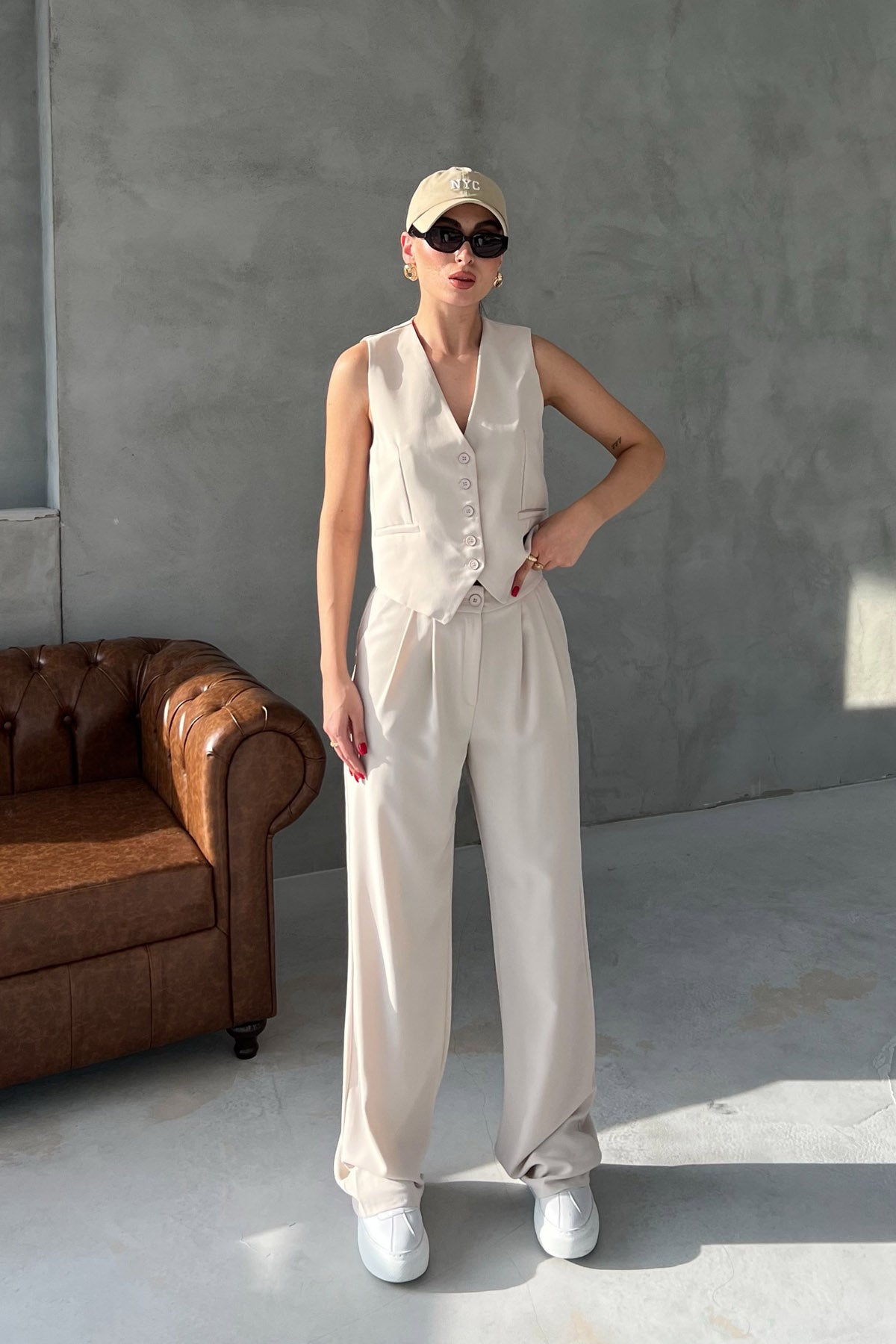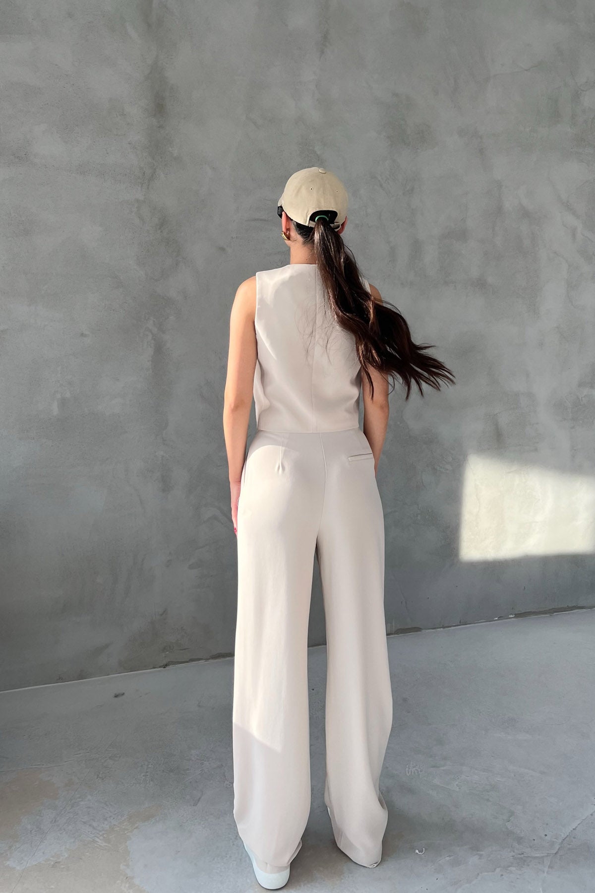 Ürün Özellikleri:Taş Cep Detaylı Yelek Palazzo Pantolon