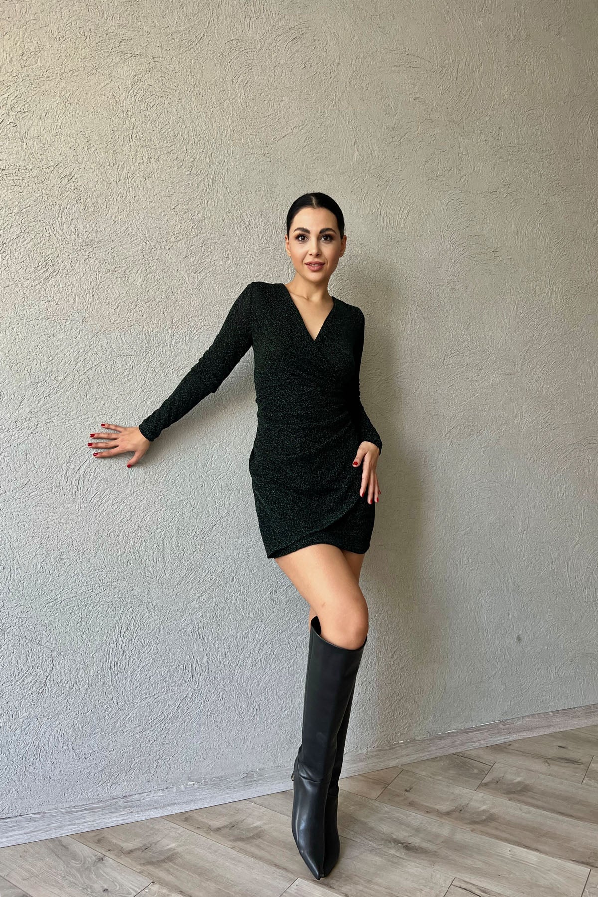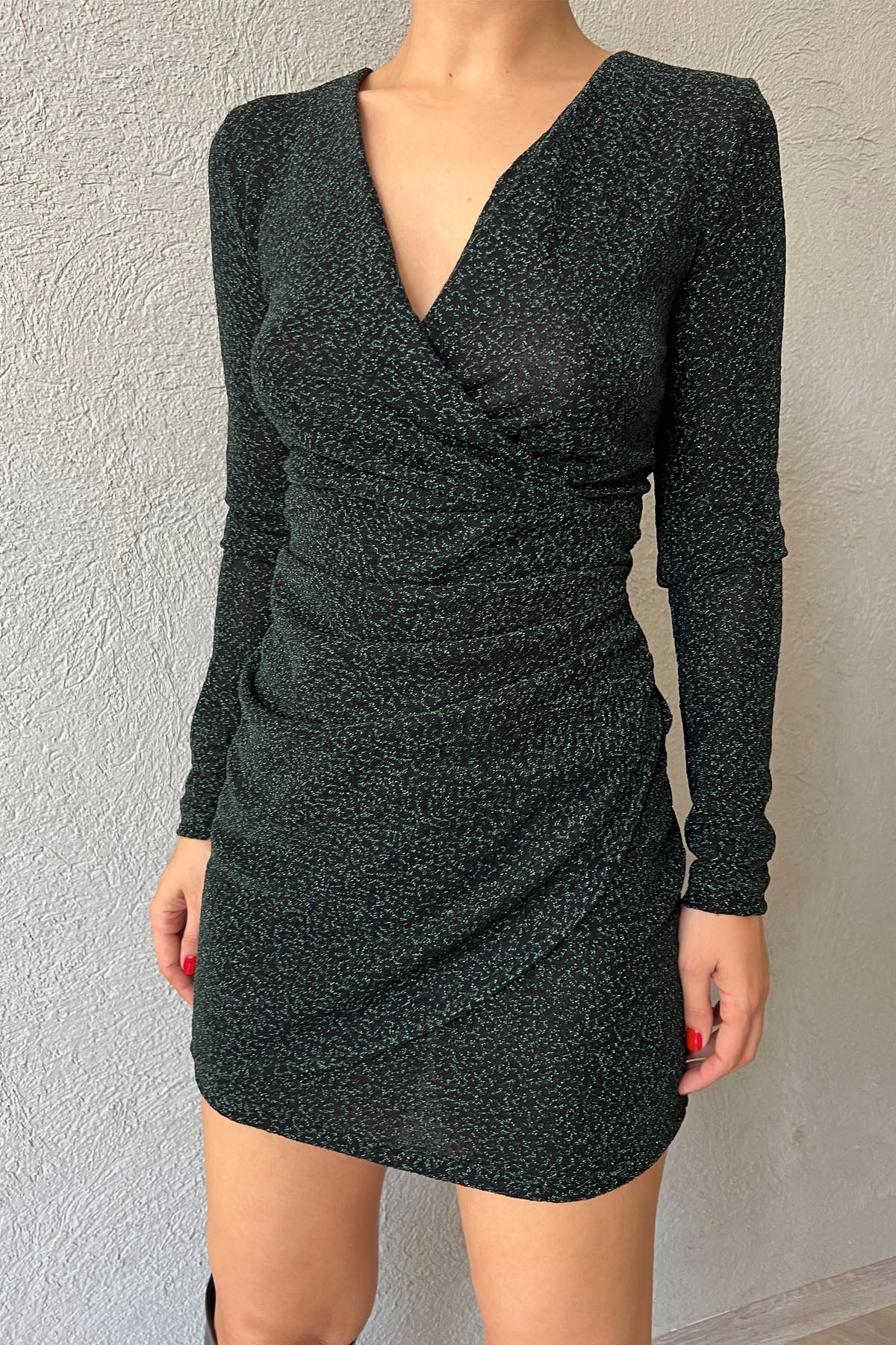 Yeşil Simli Kruvaze Elbise SY-1200-Yeşil