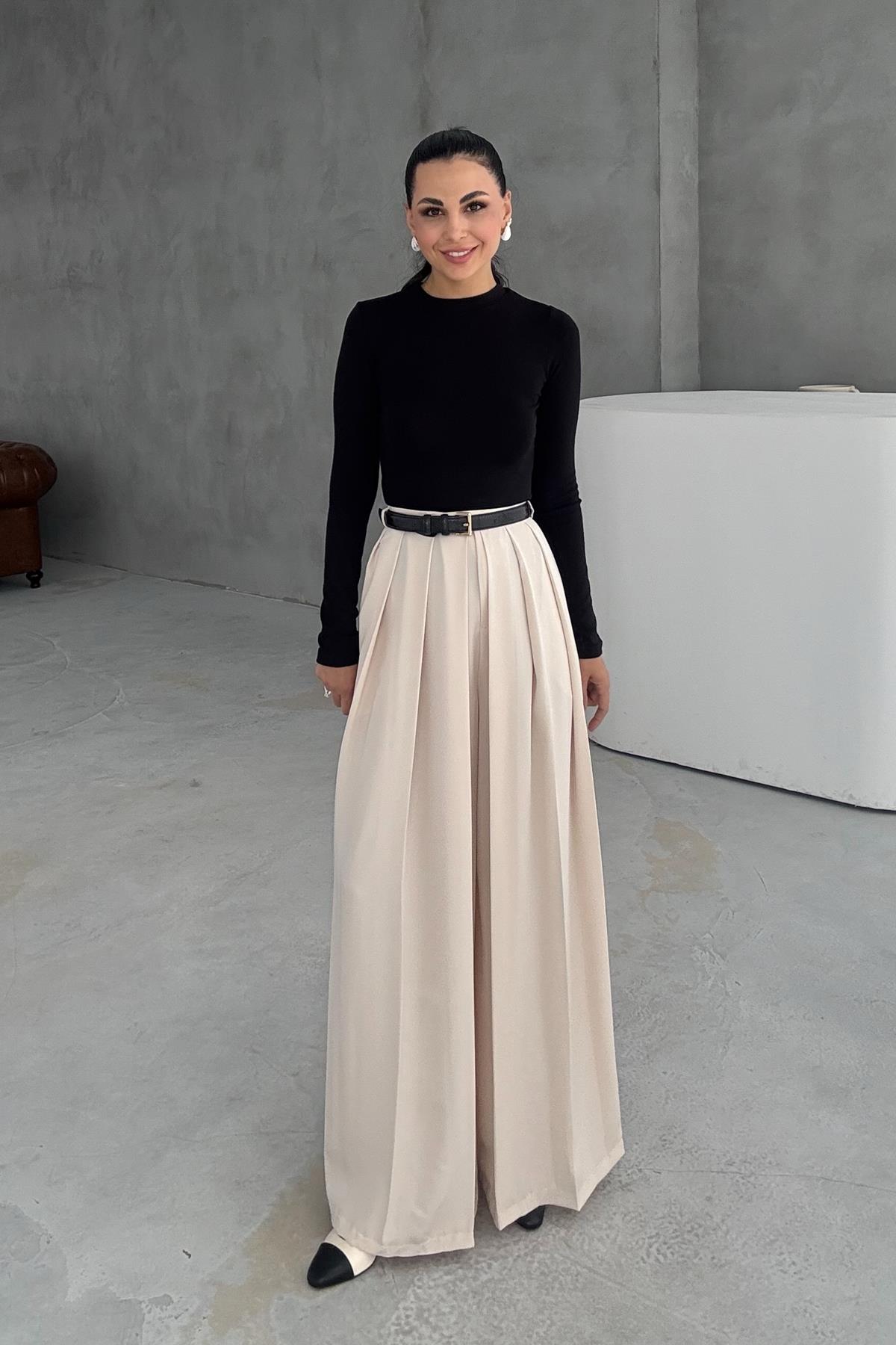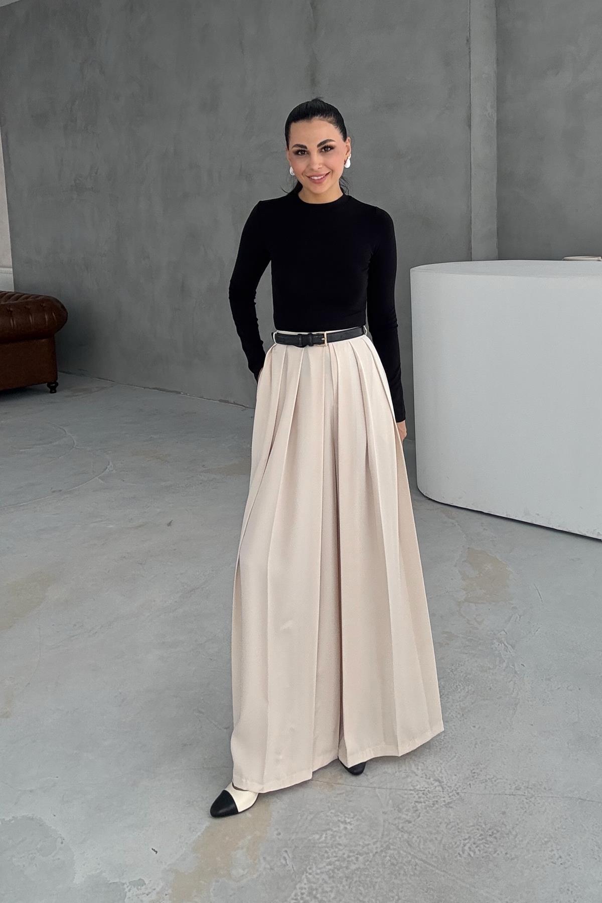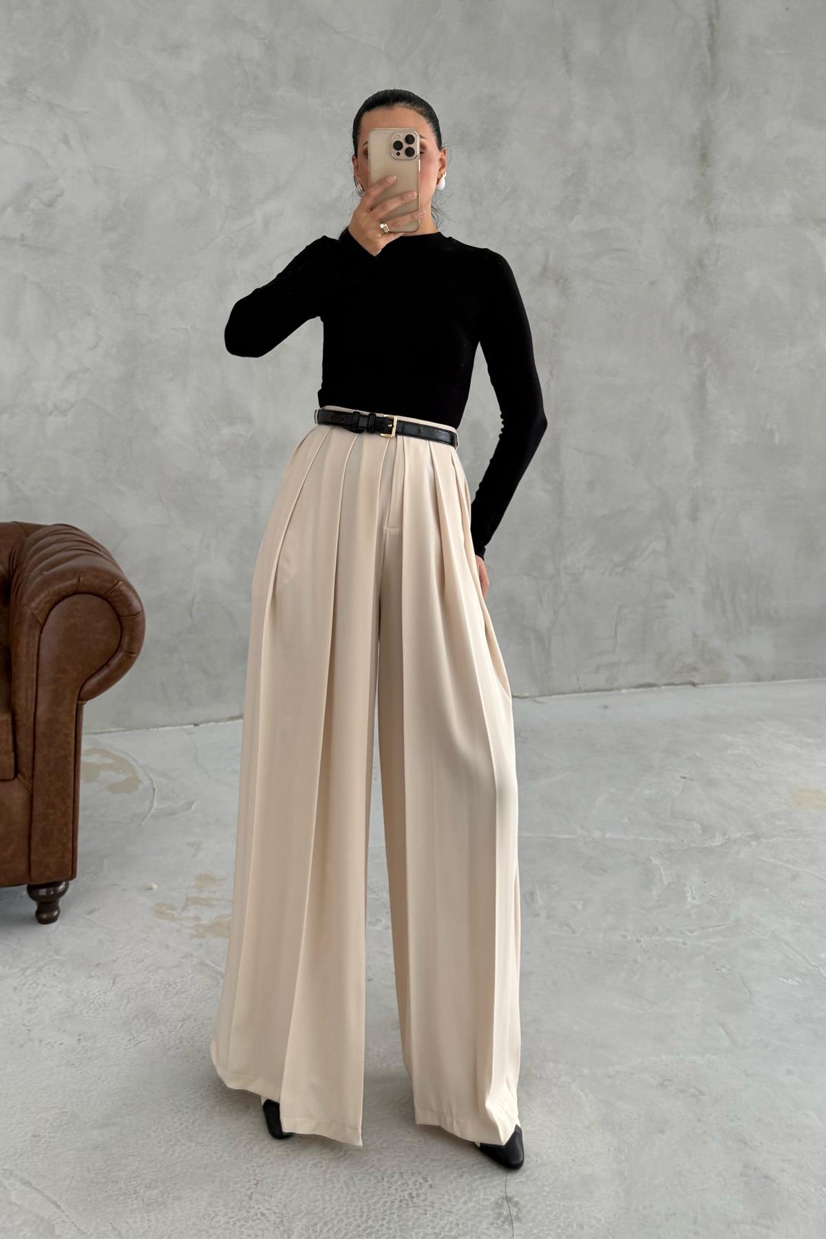 Ürün Detayları ;Bej Geniş Pileli Palazzo Pantolon