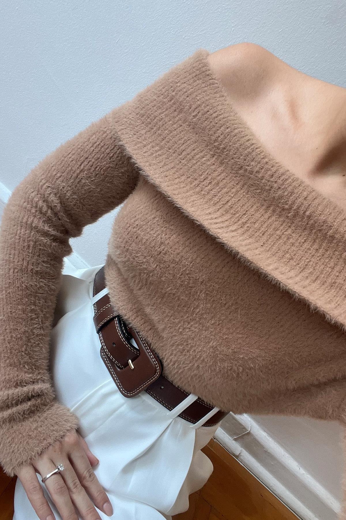 Ürün Detayları ; Sezonun en sevilen Kazakları Seda Yalçın Atelier'de sizleri bekliyor. Camel Madonna Yaka Yumoş Triko Kazak Kombinlerinizin vazgeçilmezi olacak !