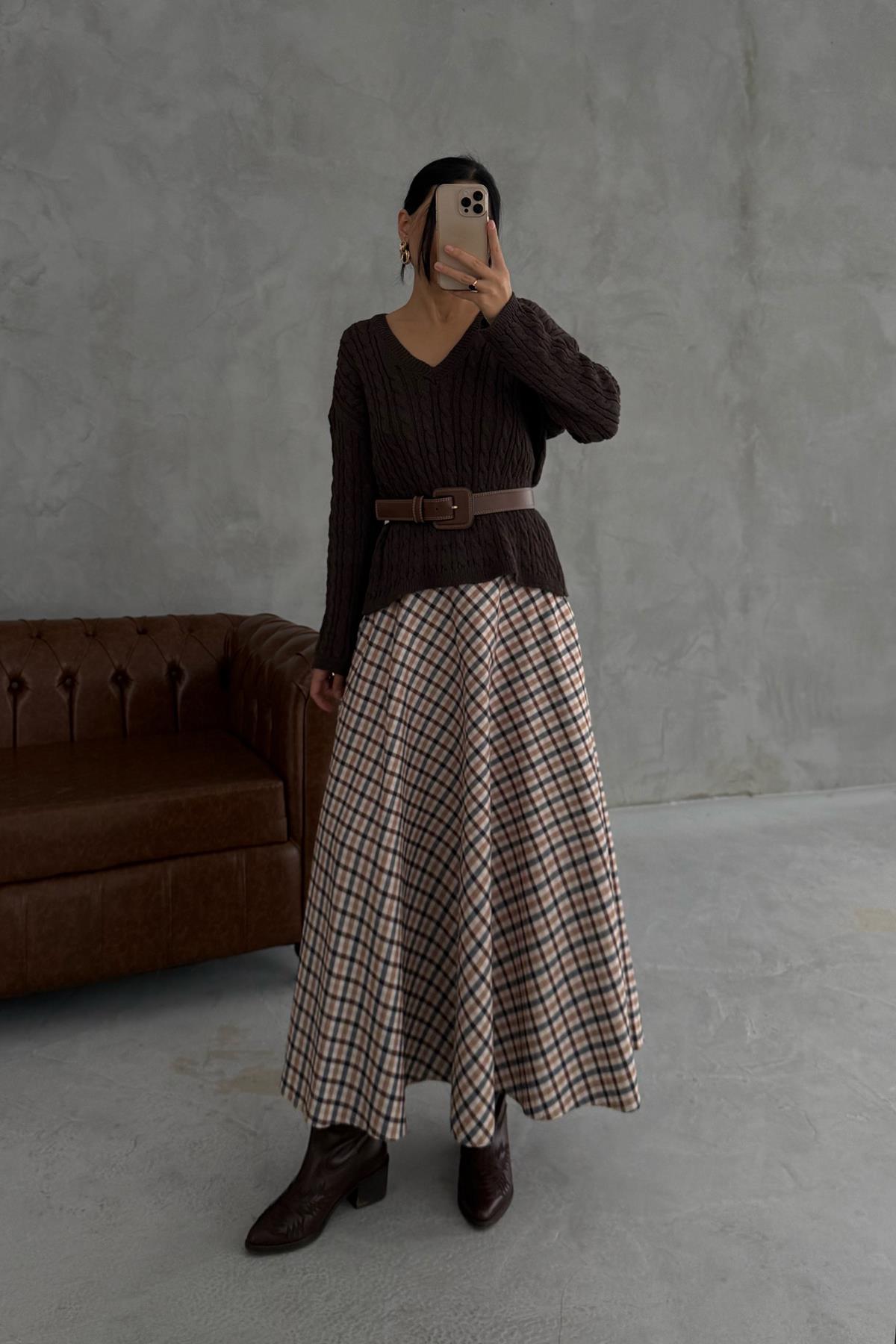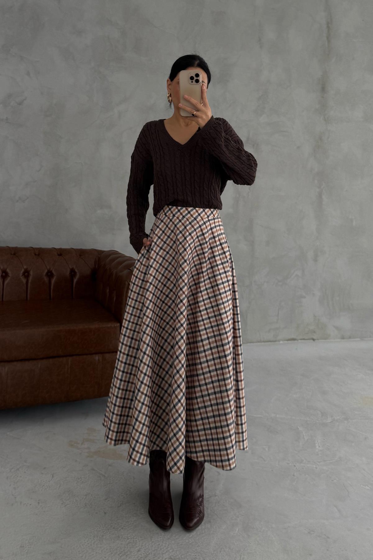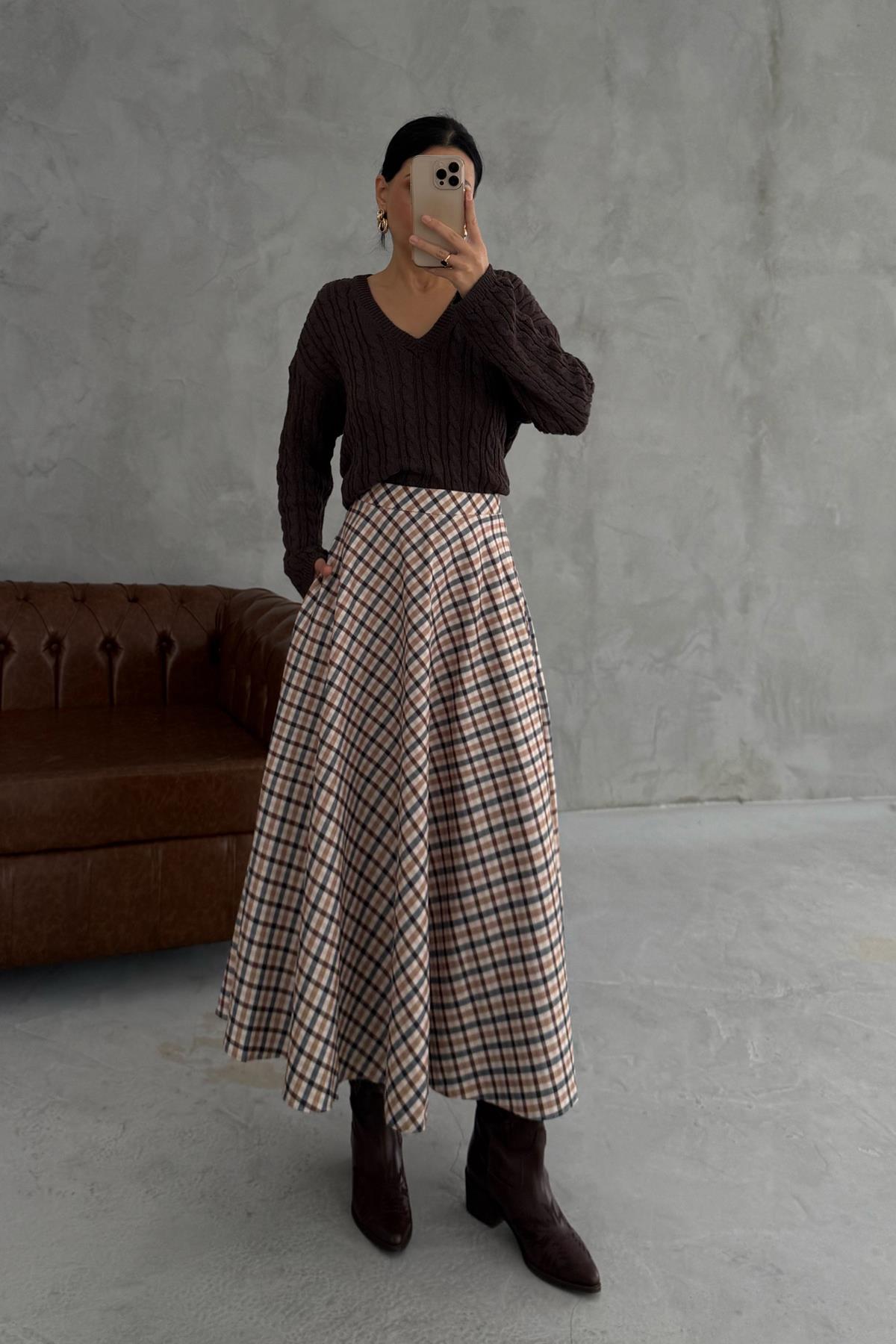 Ürün Detayları ; Collectıon Kareli Süet Katlı Etek