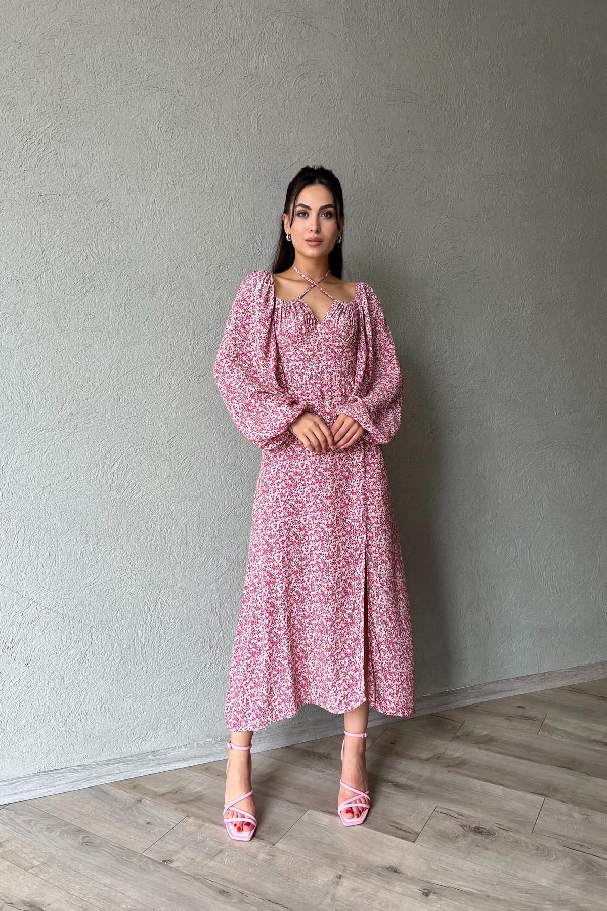 Fuşya Boyundan Bağlamalı Çiçekli Elbise (SY-1920-Fuşya)
