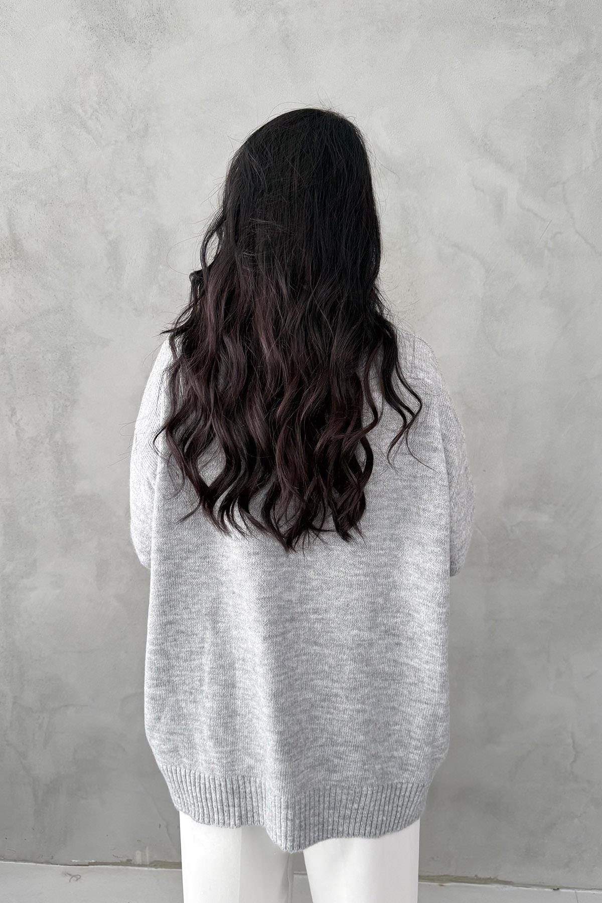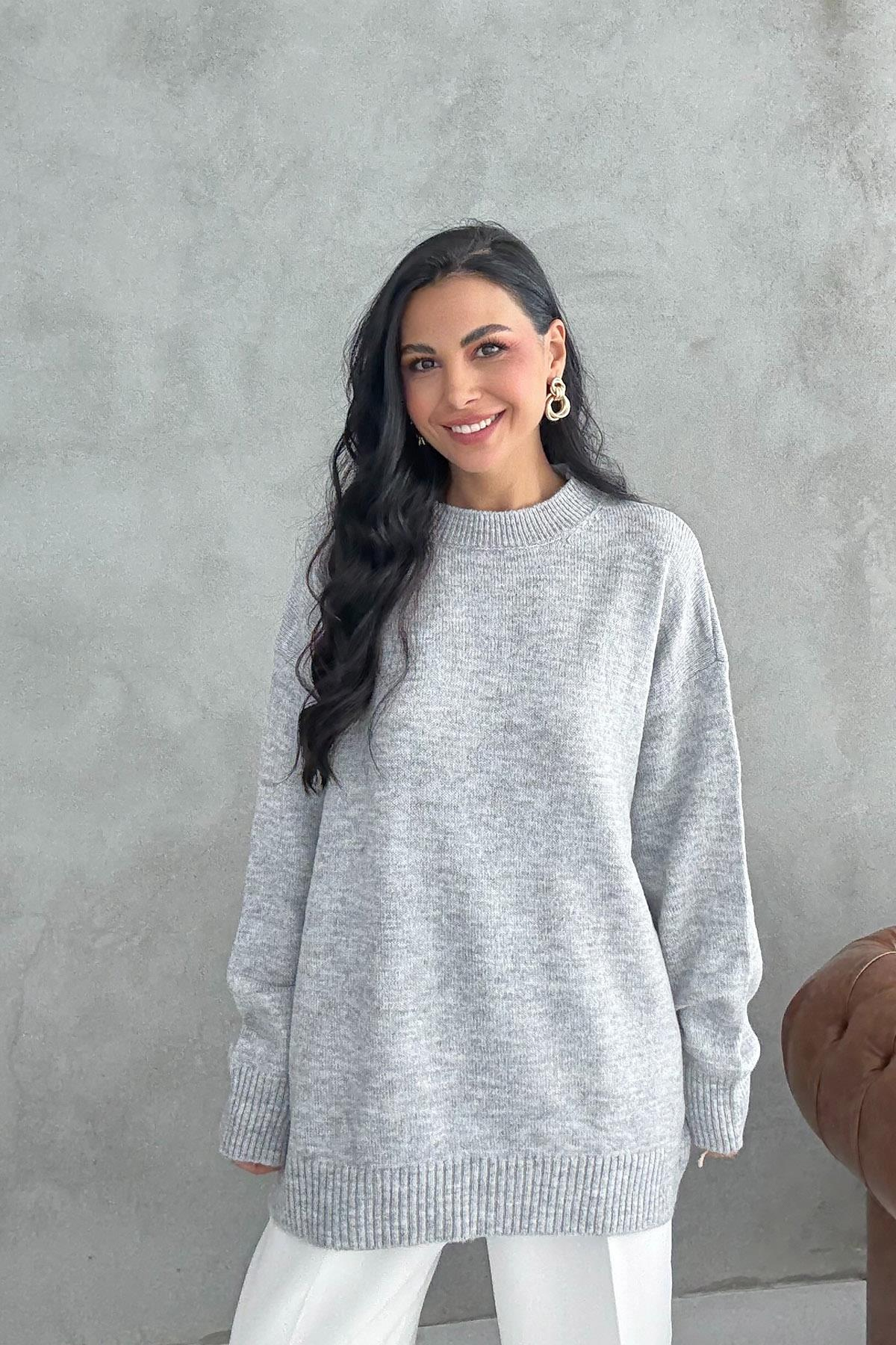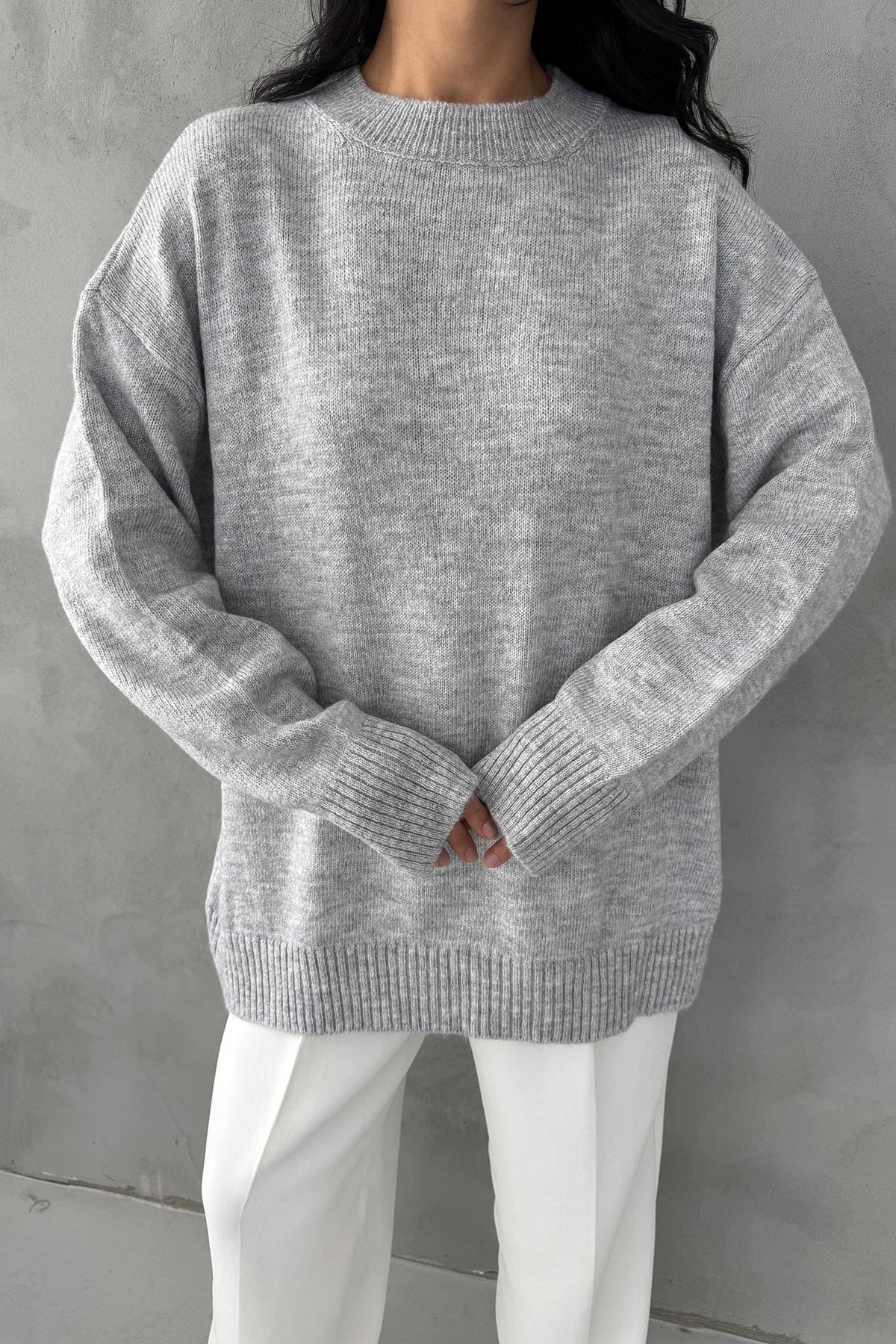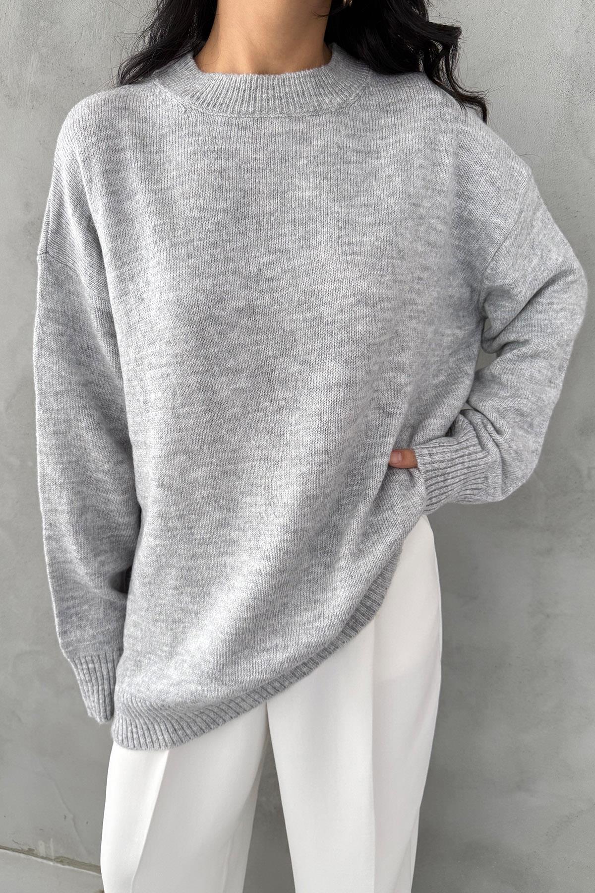 Gri Bisiklet Yaka Lastikli Pinterest Triko Kazak (SY-3368-Gri)