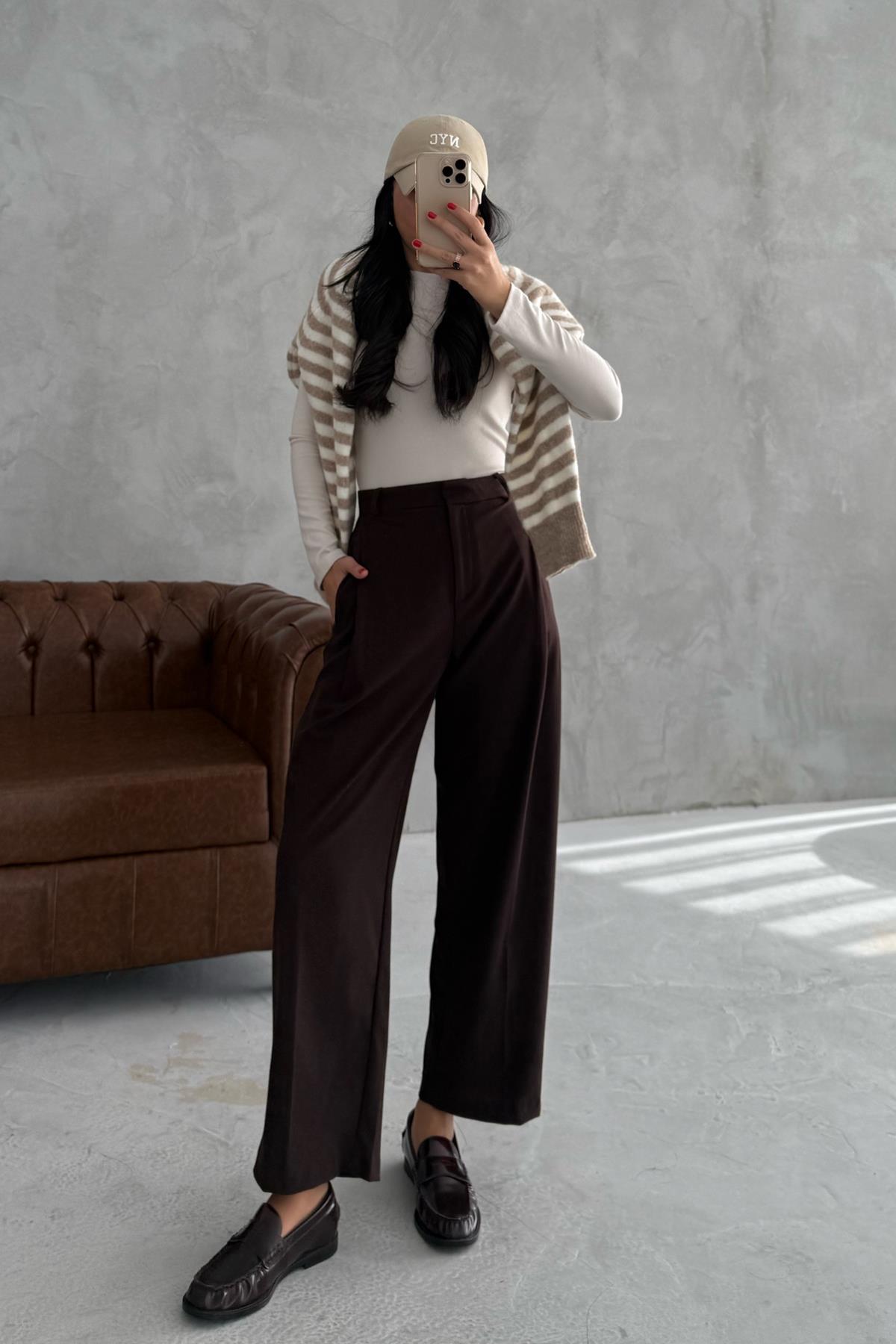 Ürün Detayları;Kahve Pile Detaylı Bol Paça Pantolon Tam kalıptır ,yandan cepli