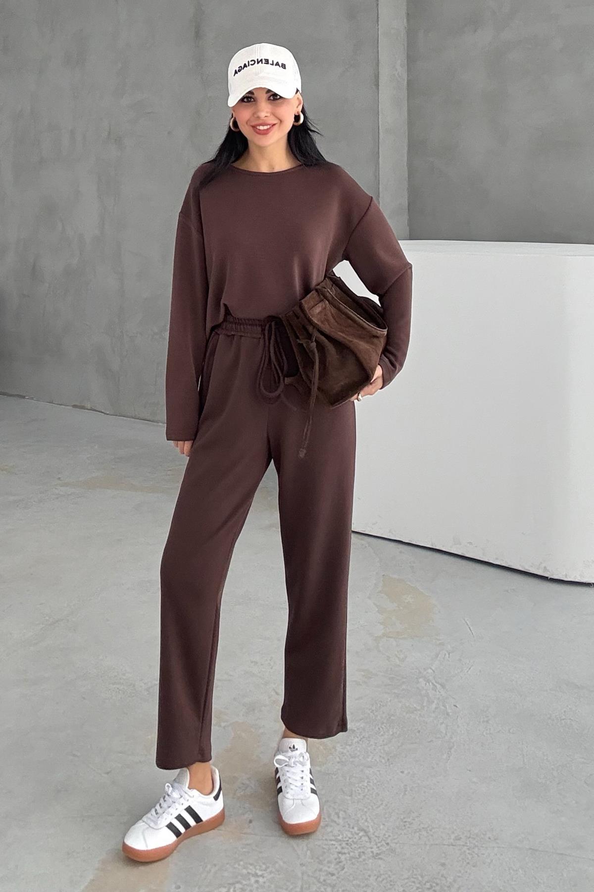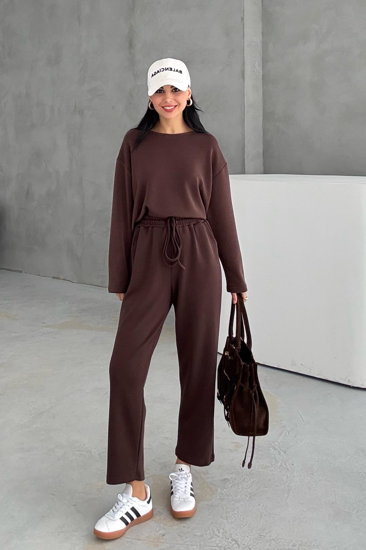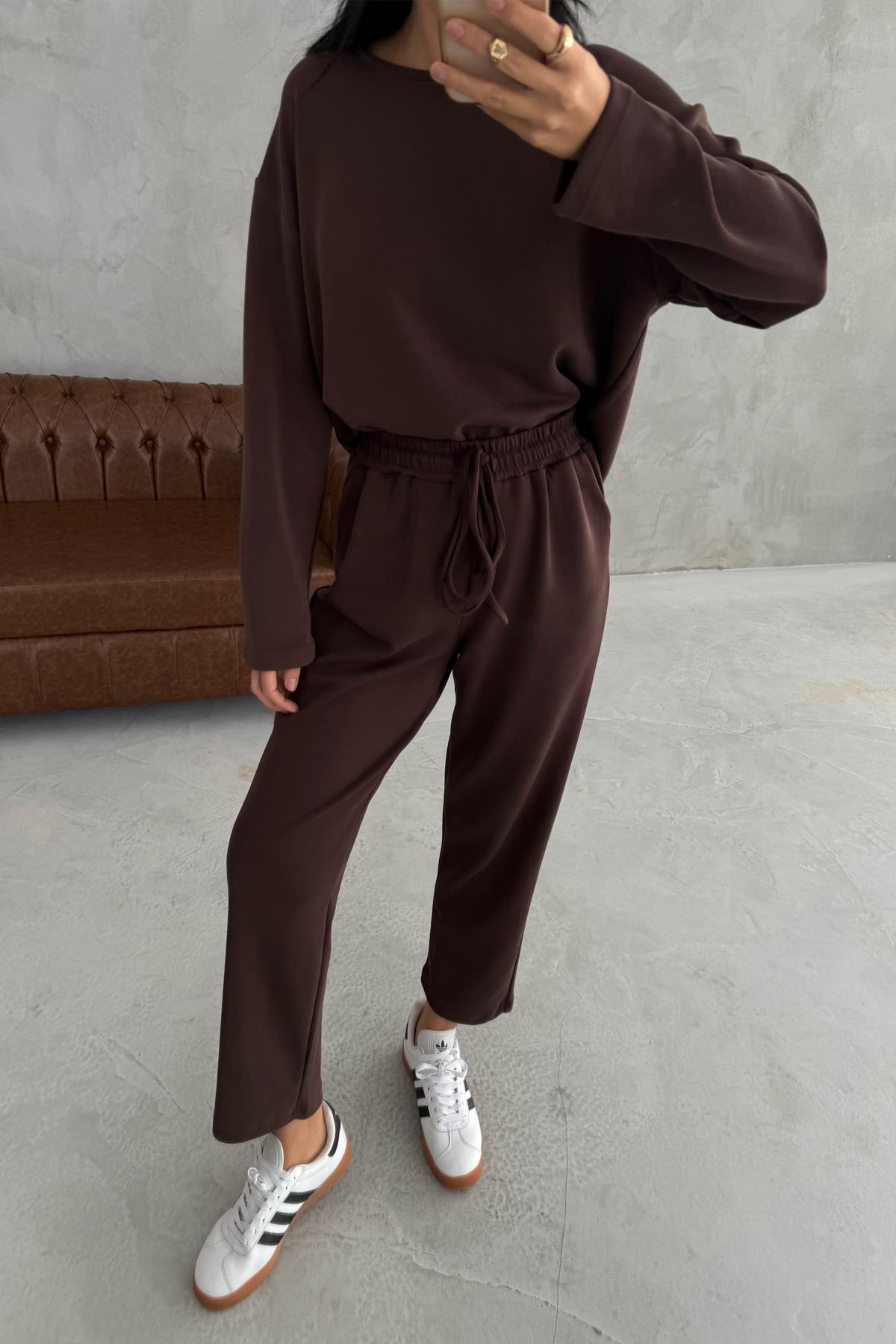 Ürün Detayları ; Kahve Uzun Kollu Beli Lastikli Modal Takım