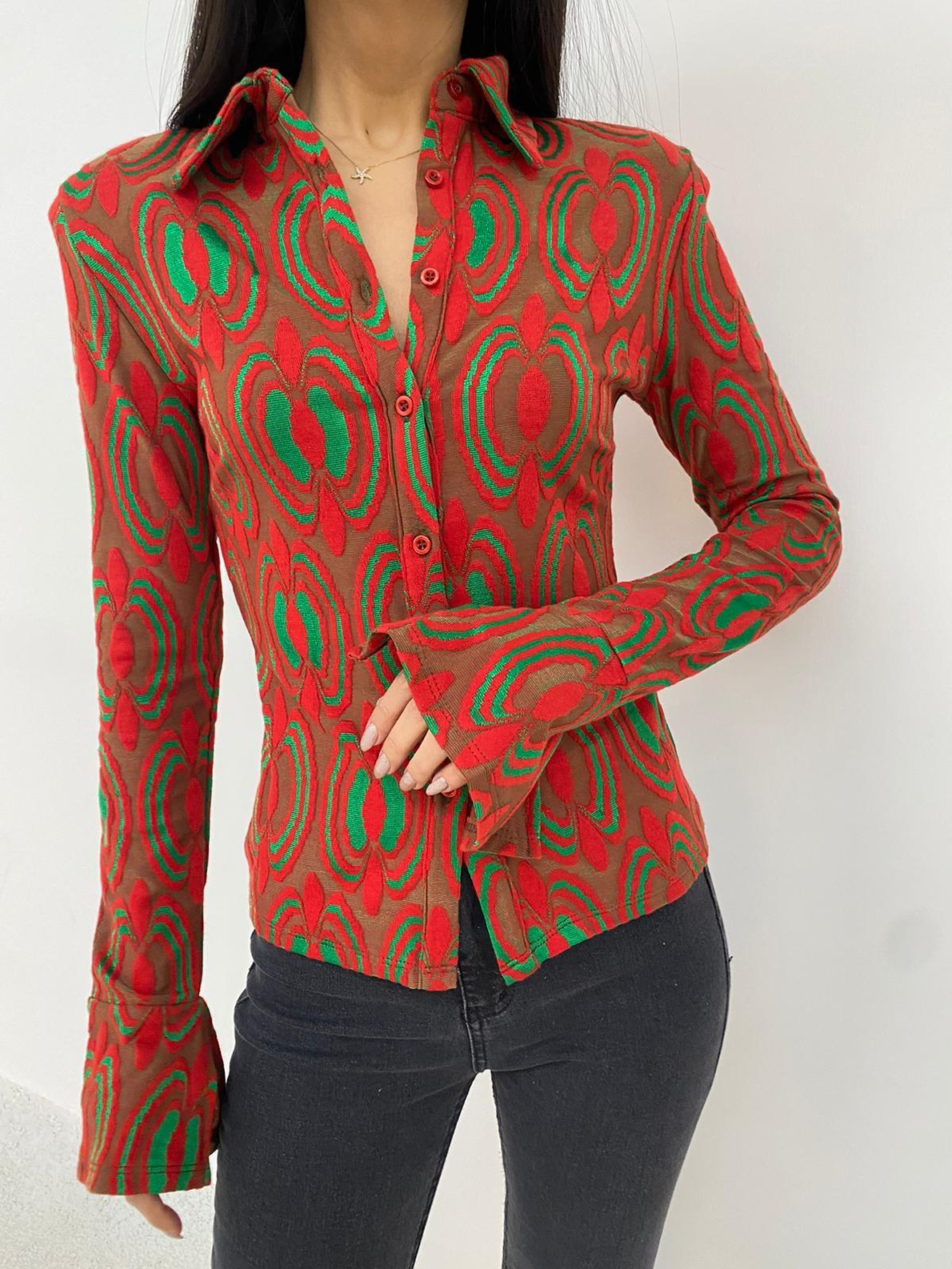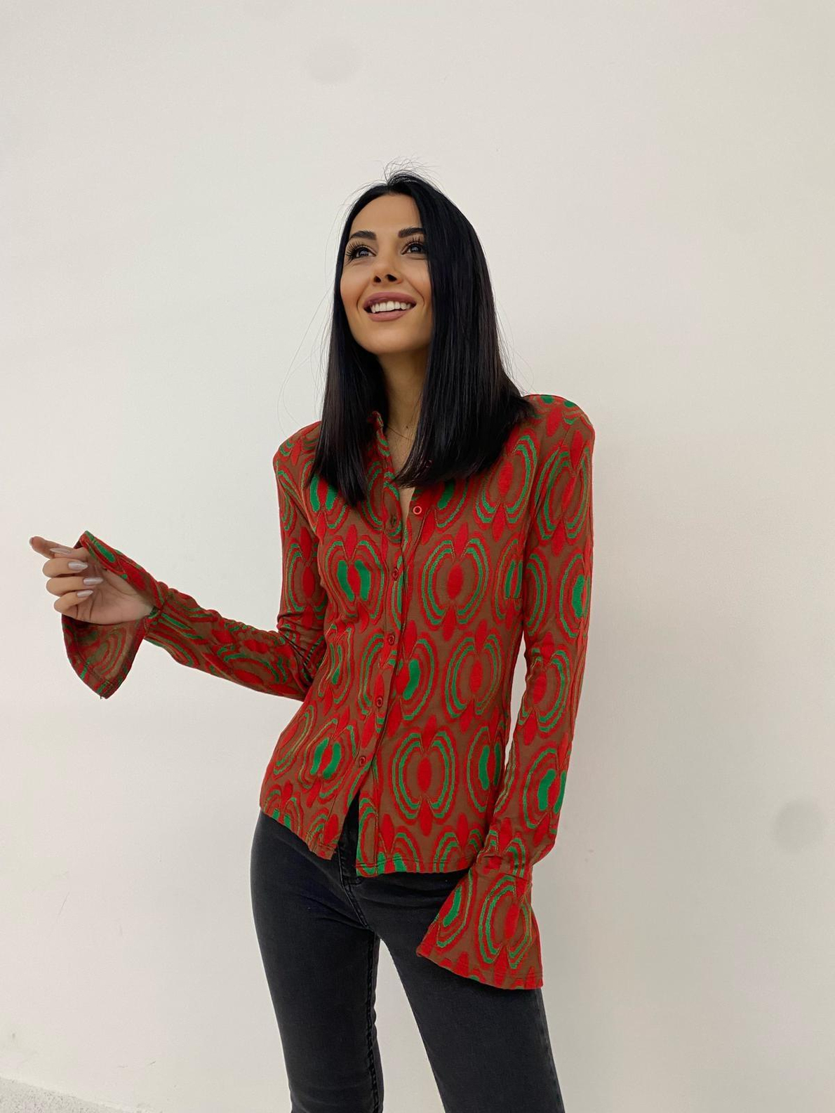 Manken Beden :S BedenGömlek Boyu : 56 cm Kumaş Türü : % 95 Polyester % 5 ElastanÜrün Özellikleri : Esnek , Düğmeli , Uzun Kollu, Kolları Yırtmaç Detaylı