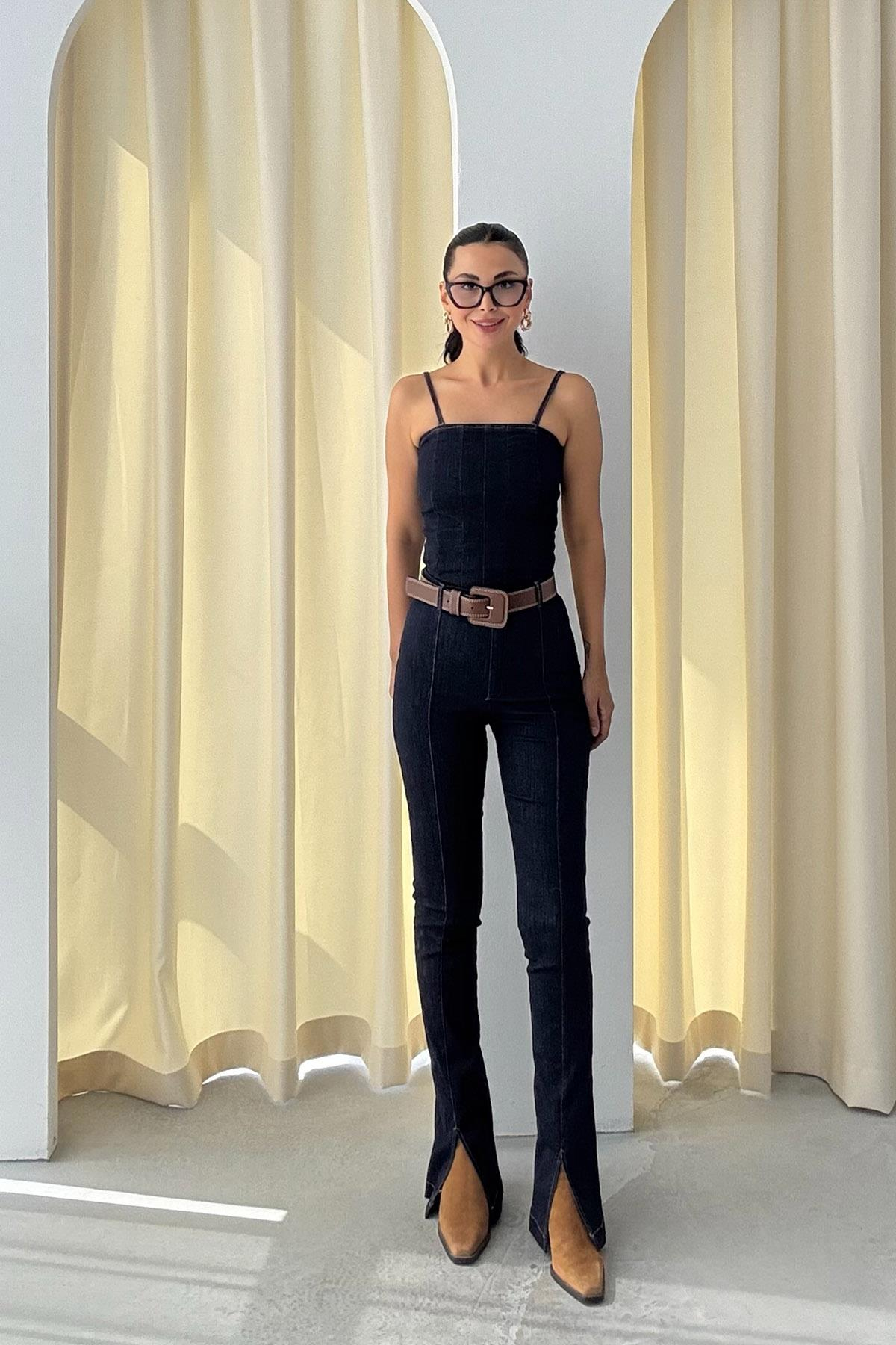 Ürün Detayları ;Lacivert Kot Bustiyer Pantolon Takım