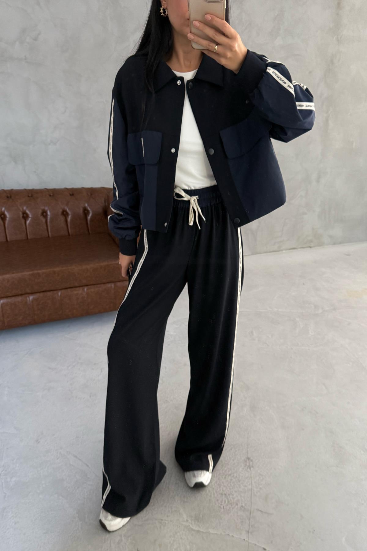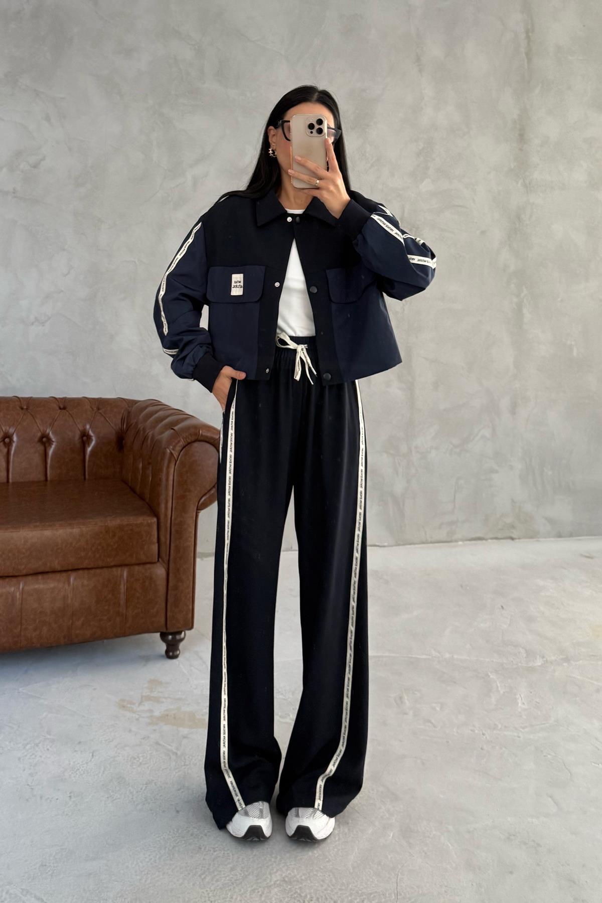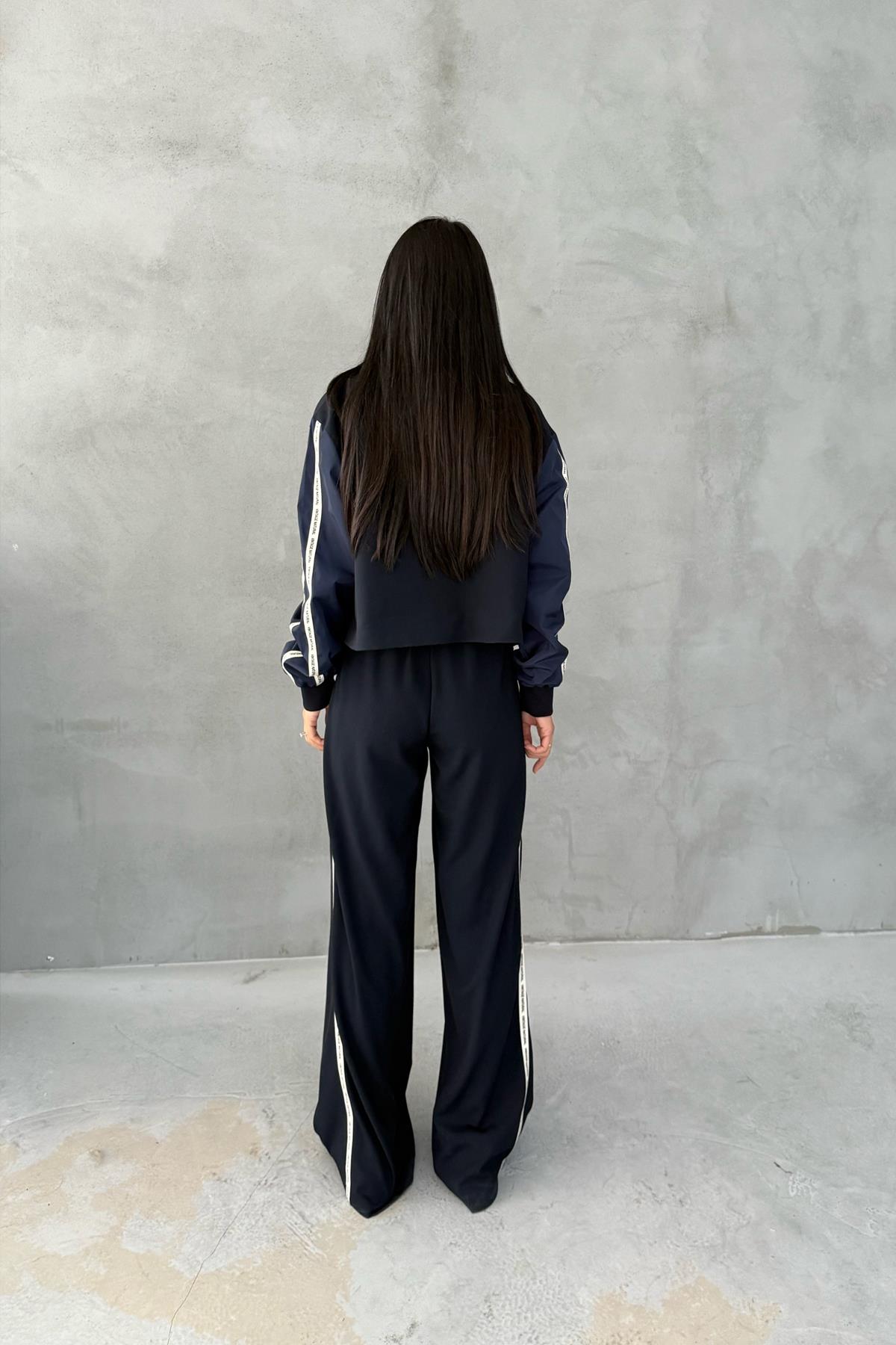 Ürün Detayları ; Lacivert Şerit Yazı Detaylı Yüksek Bel Pantolon
