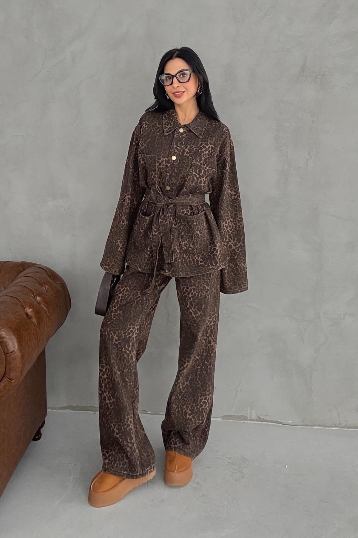 Ürün Detayları ; Leopar Desenli Kuşaklu Ceket