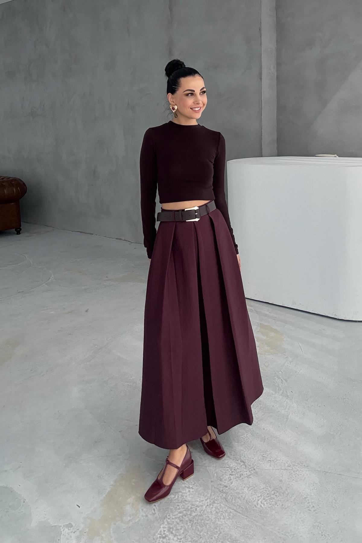 Ürün Detayları ; Mürdüm Kemer Detaylı Etek