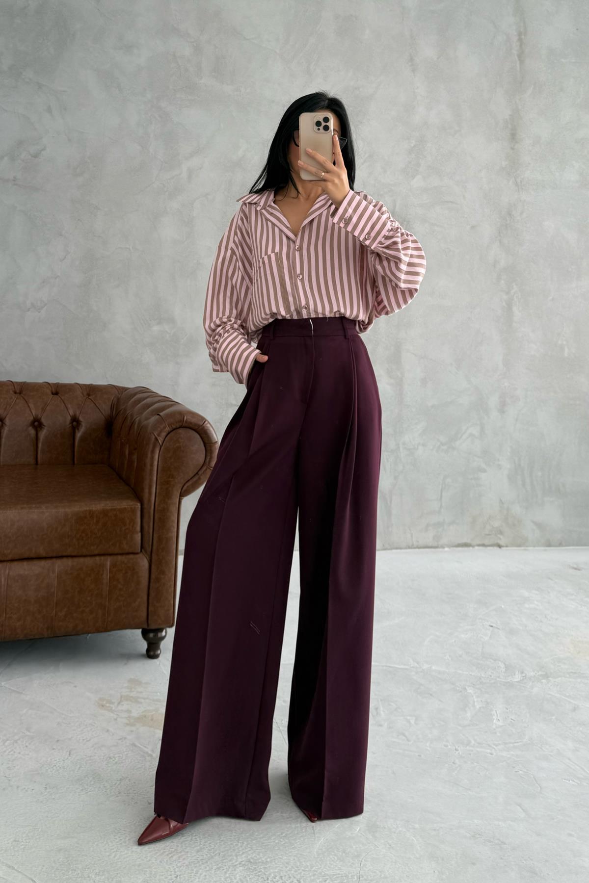 Ürün Detayları ; Mürdüm Premium Poliviskon Pantolon