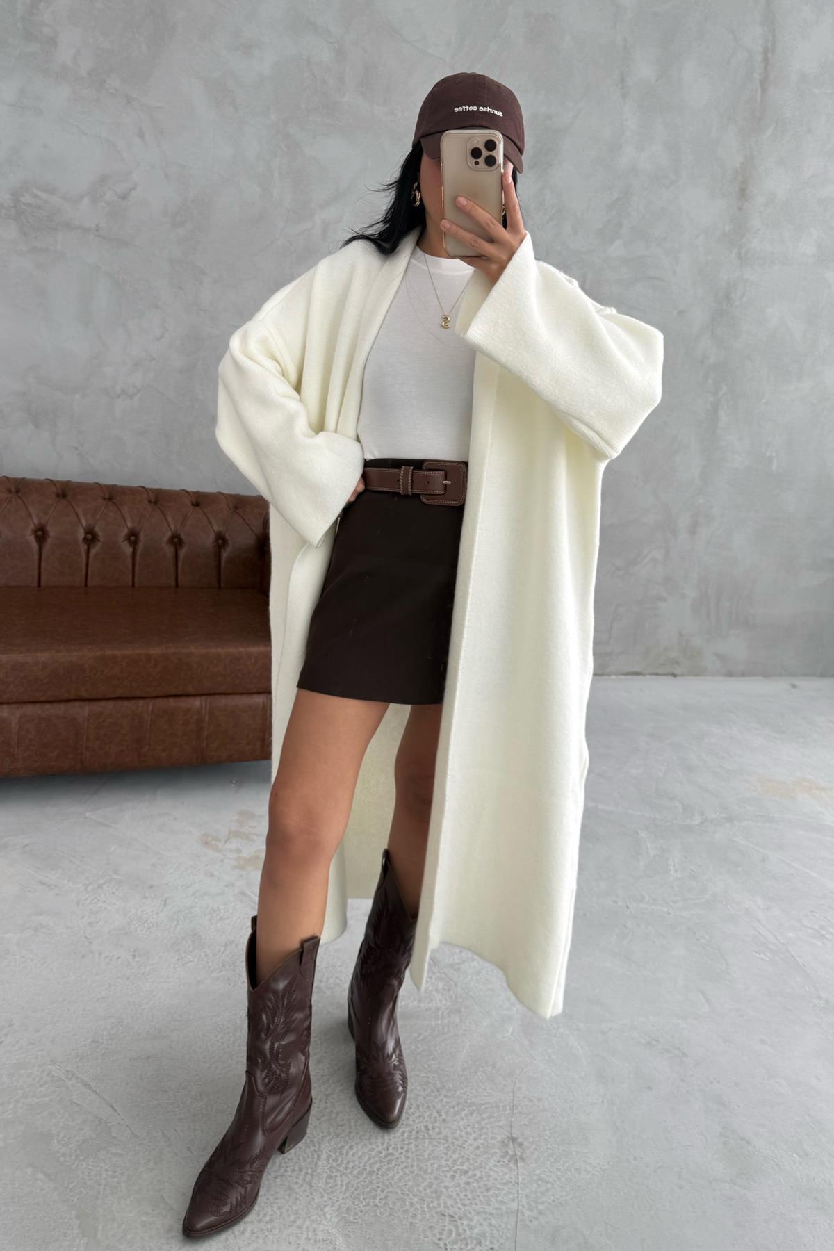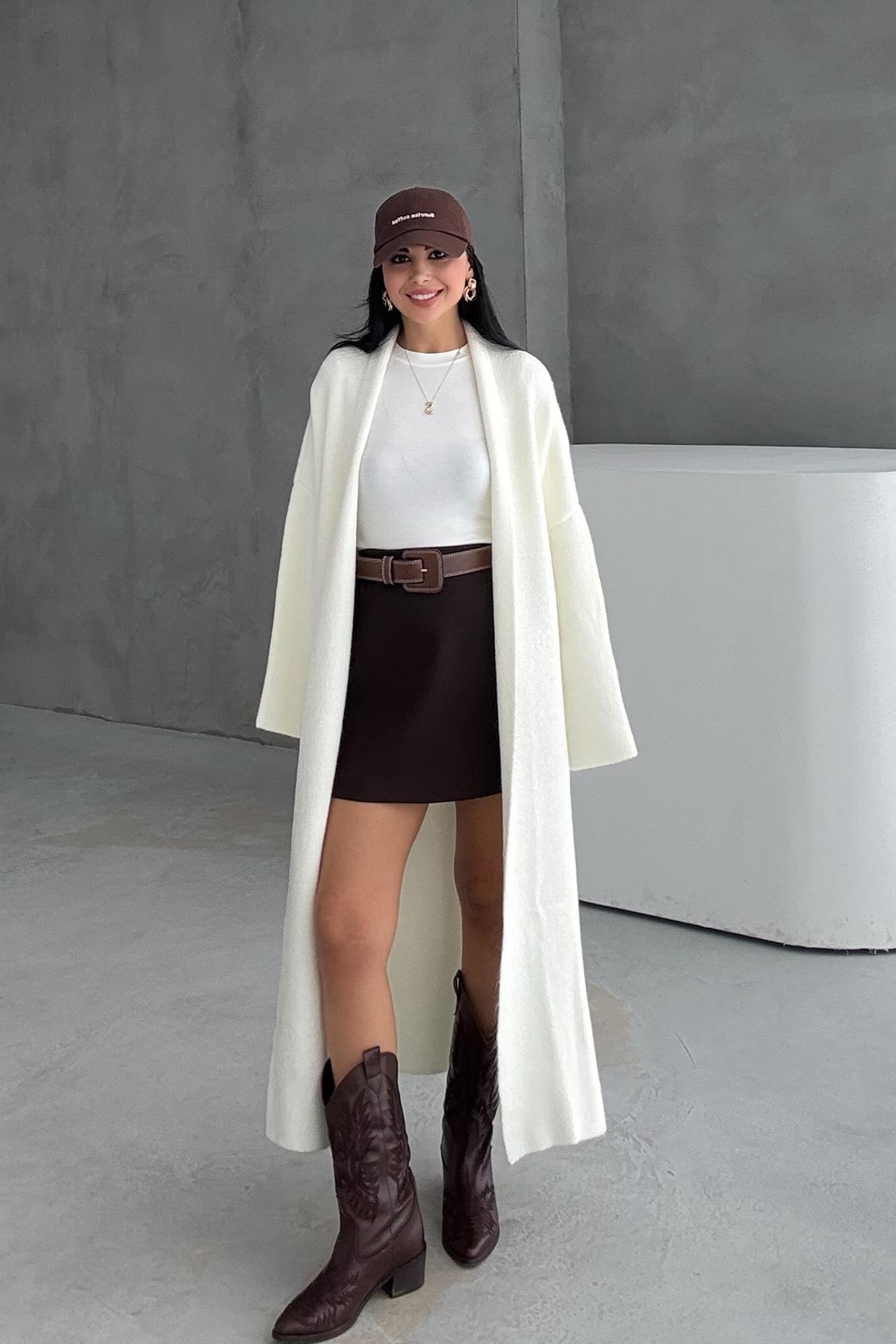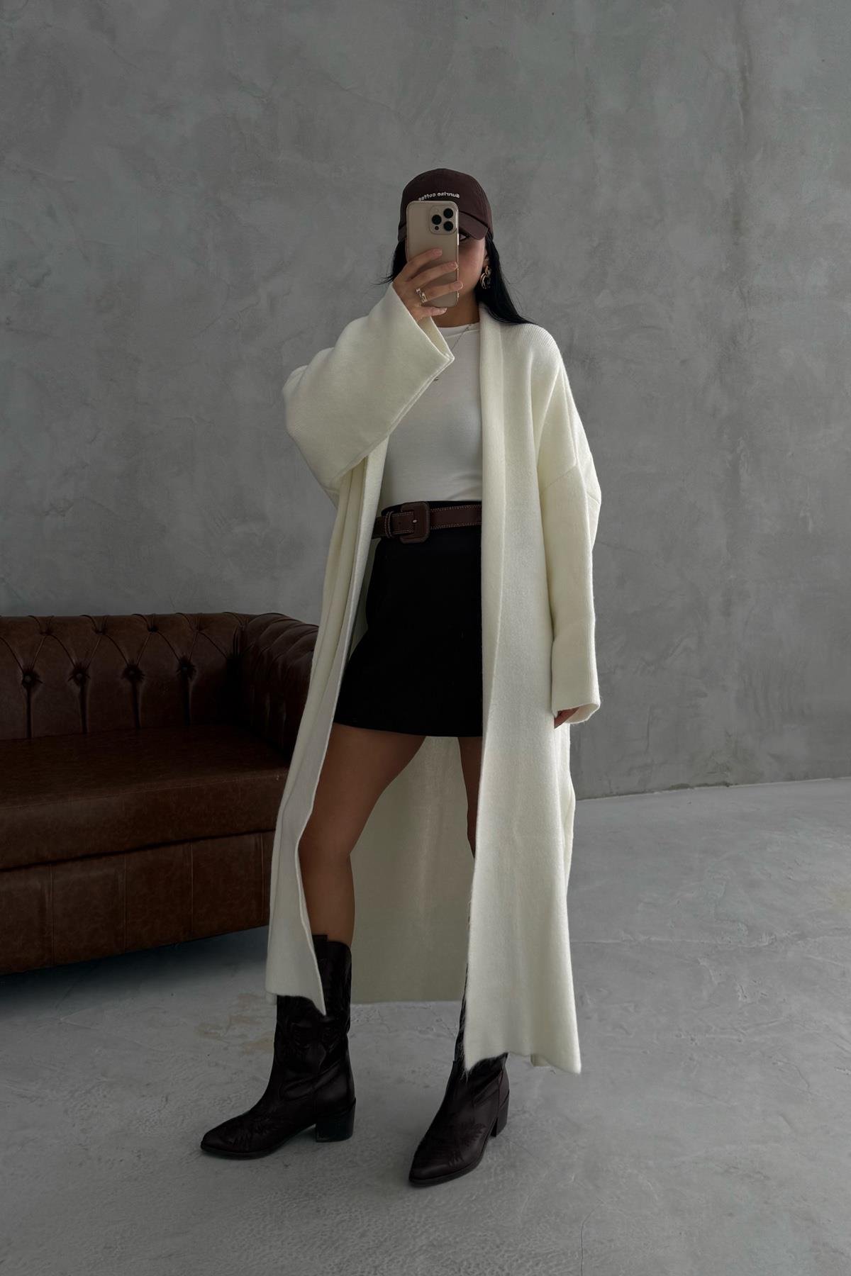 Ürün Detayları ;Salaş Uzun Ekru Triko Hırka