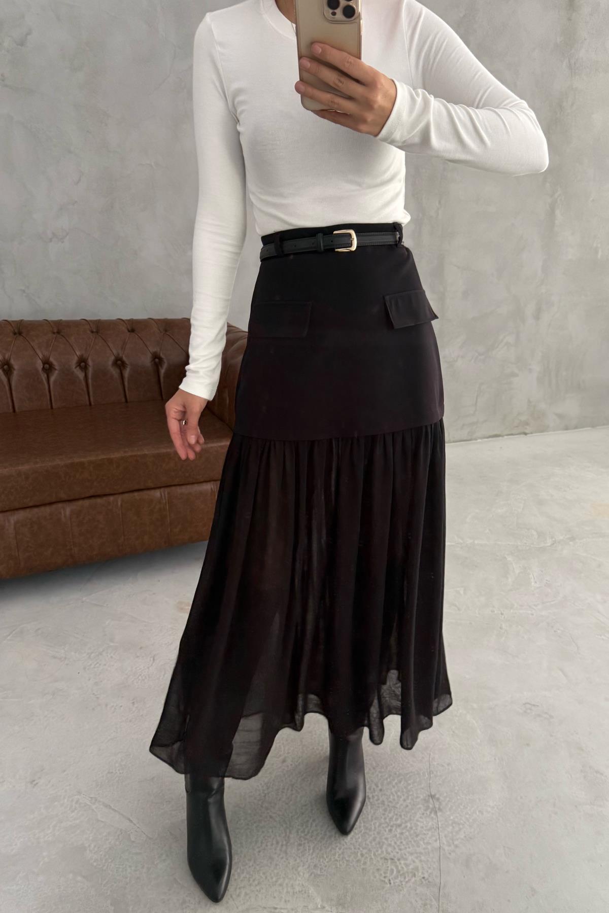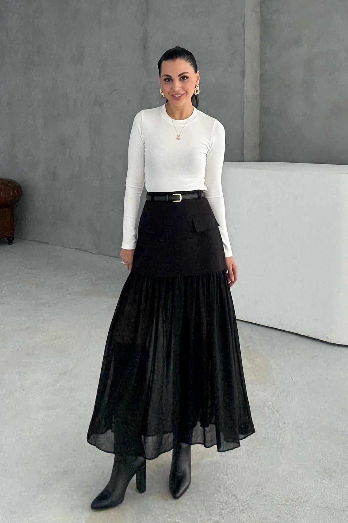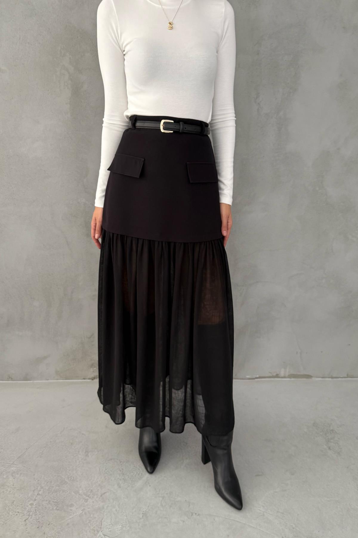 Ürün Detayları ; Tül Garnili Kemerli Midi Etek