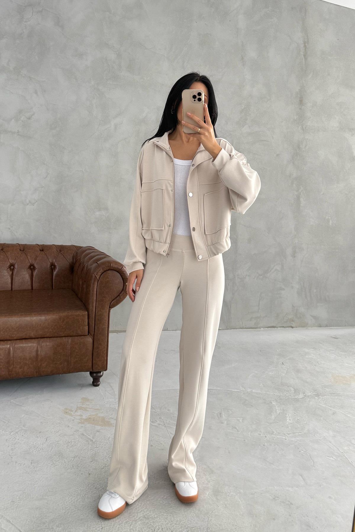 Ürün Detayları ; Ekru Uzun Kollu Beli Lastikli Modal Takım