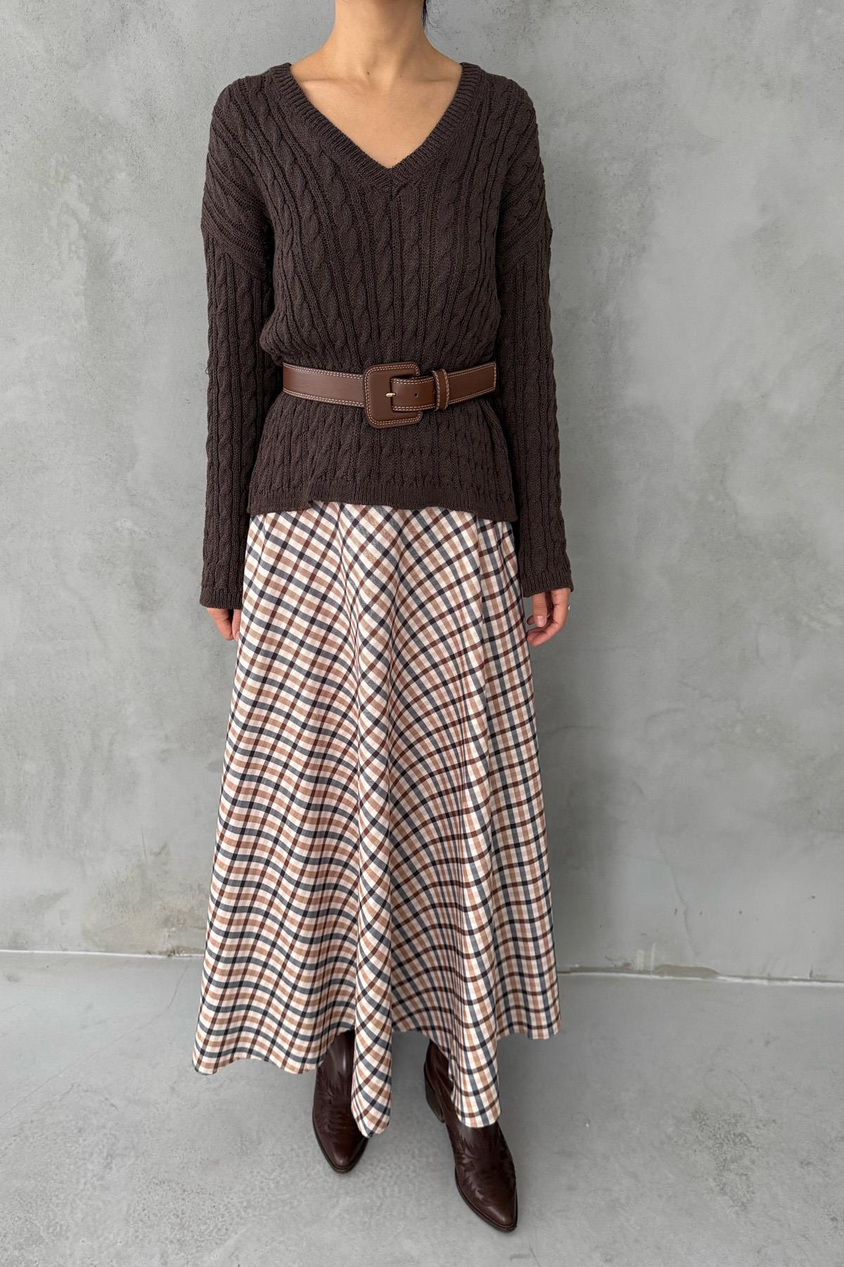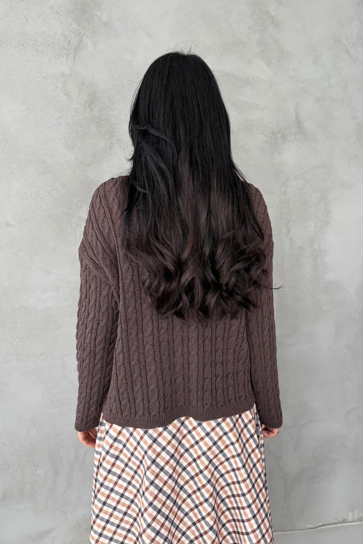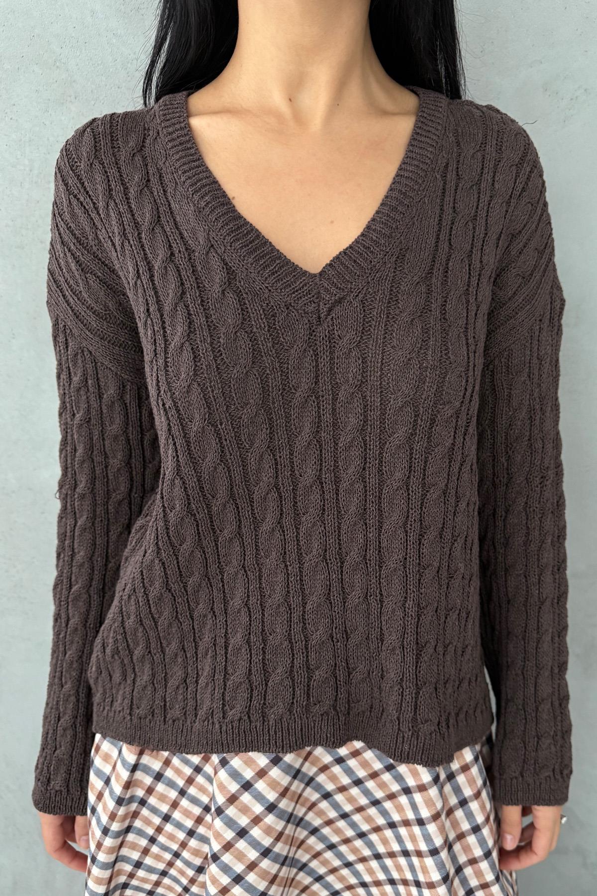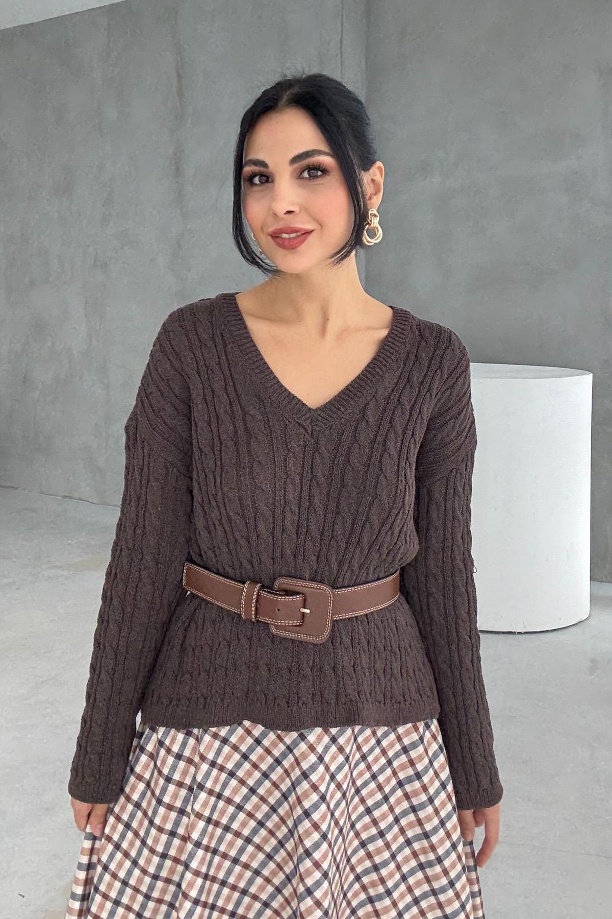 Ürün Detayları ;V Yaka Saç Örgü Kahve Triko Kazak